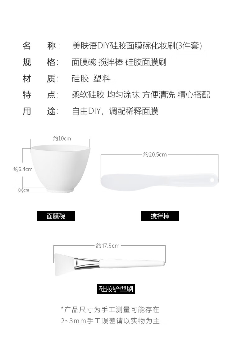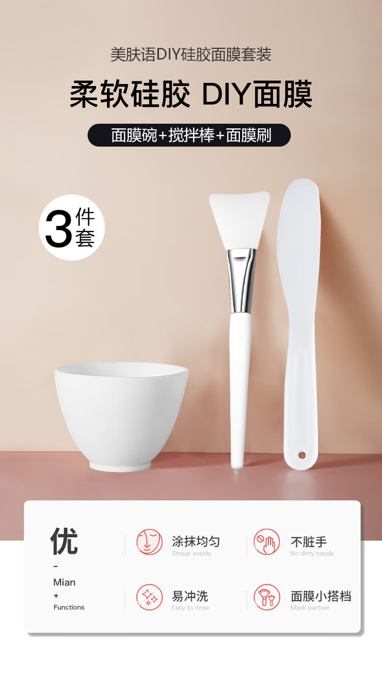 美肤语DIY硅胶面膜碗面膜刷化妆刷(3件套)涂泥膜软膜面膜工具MF8621