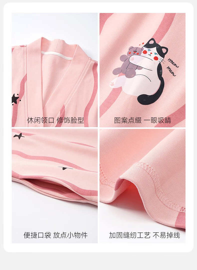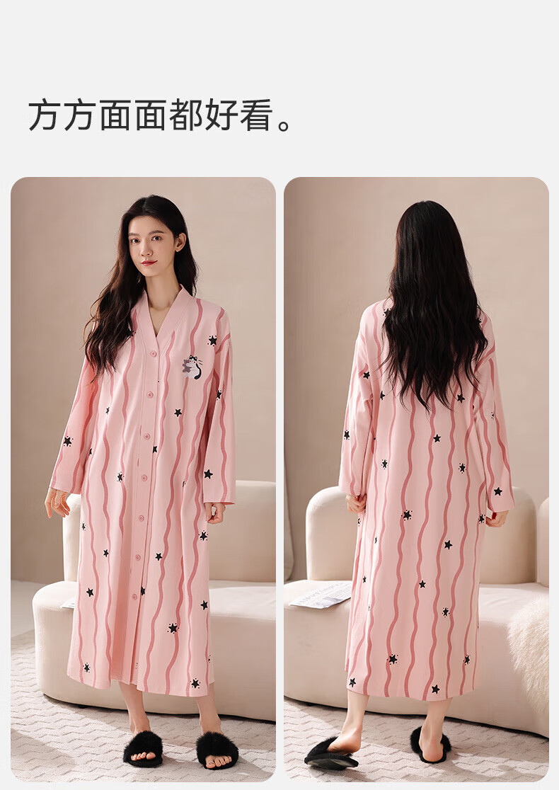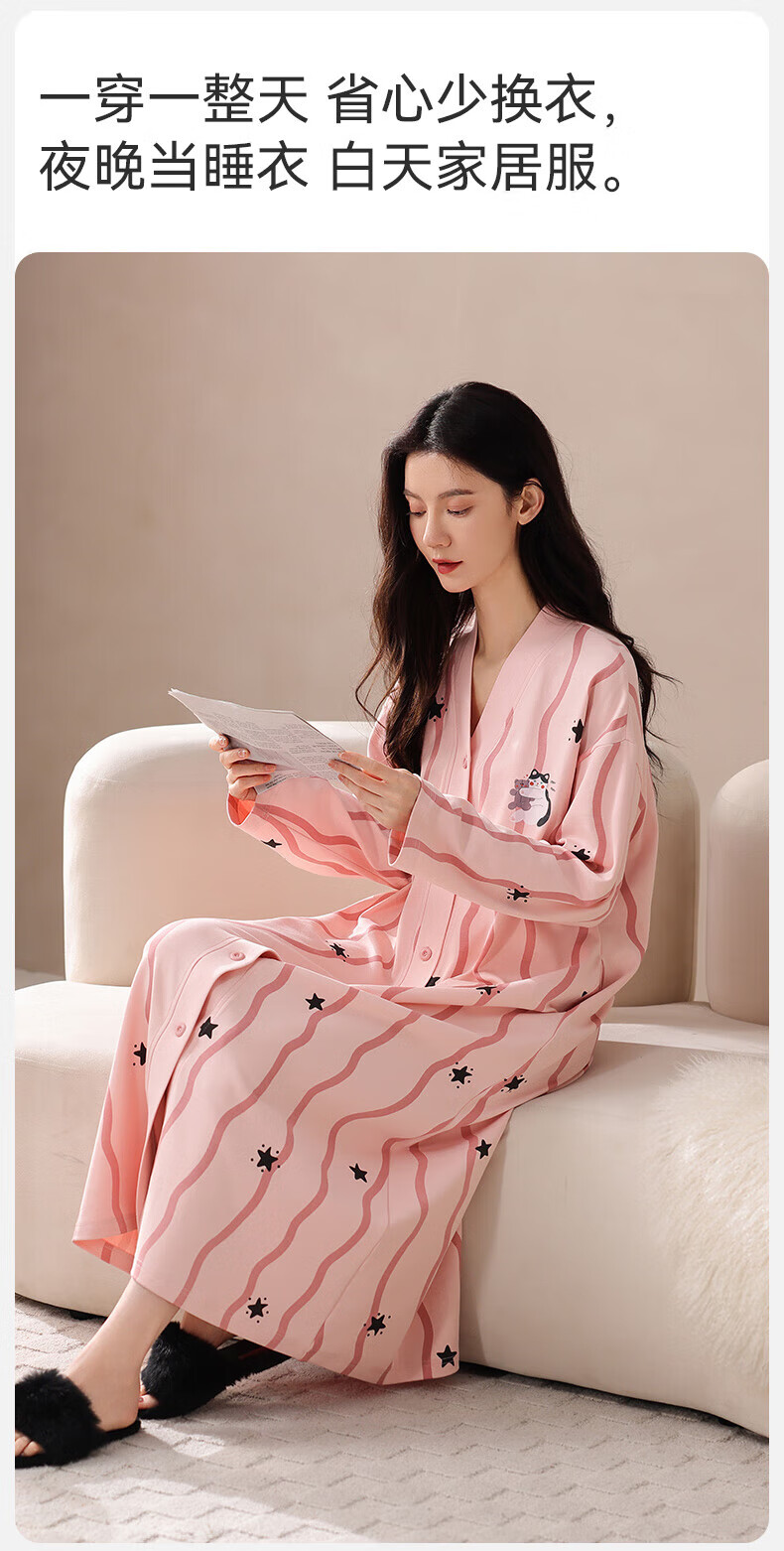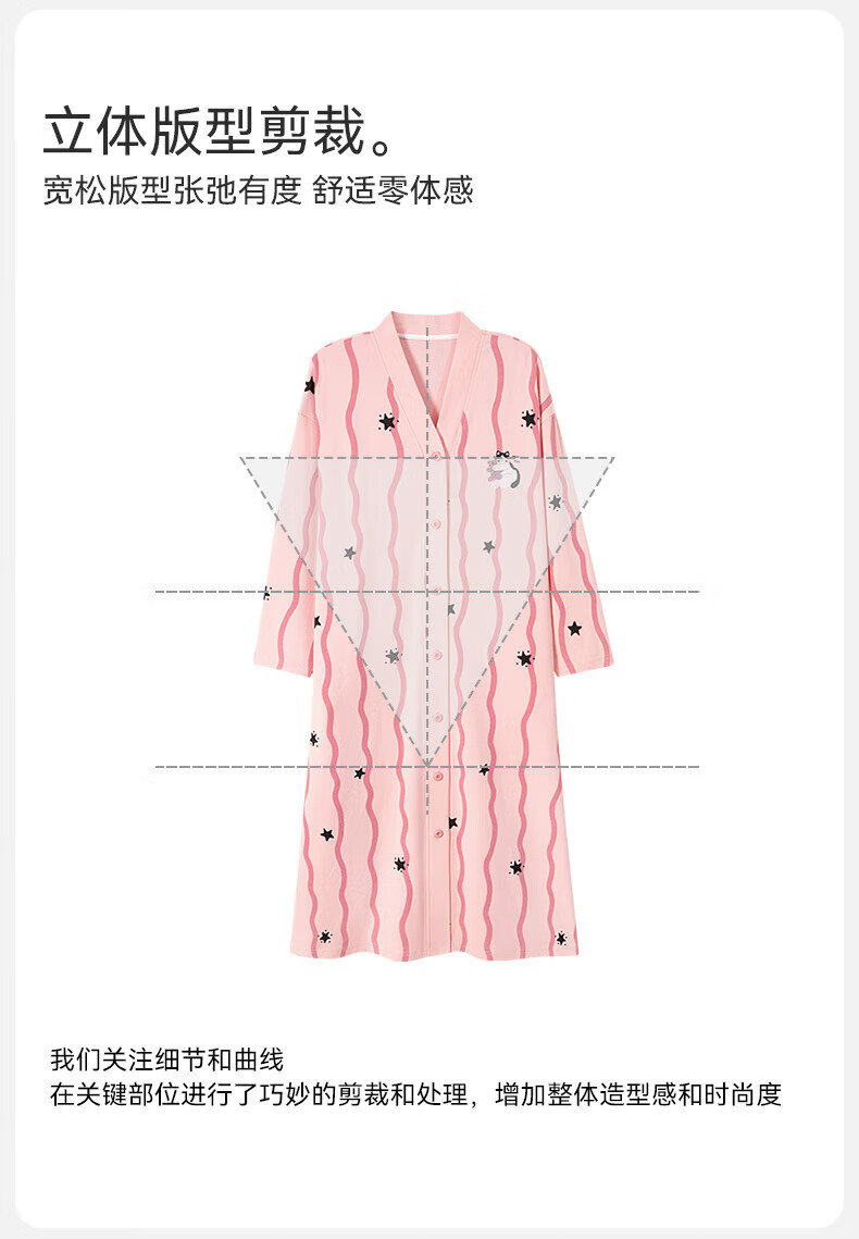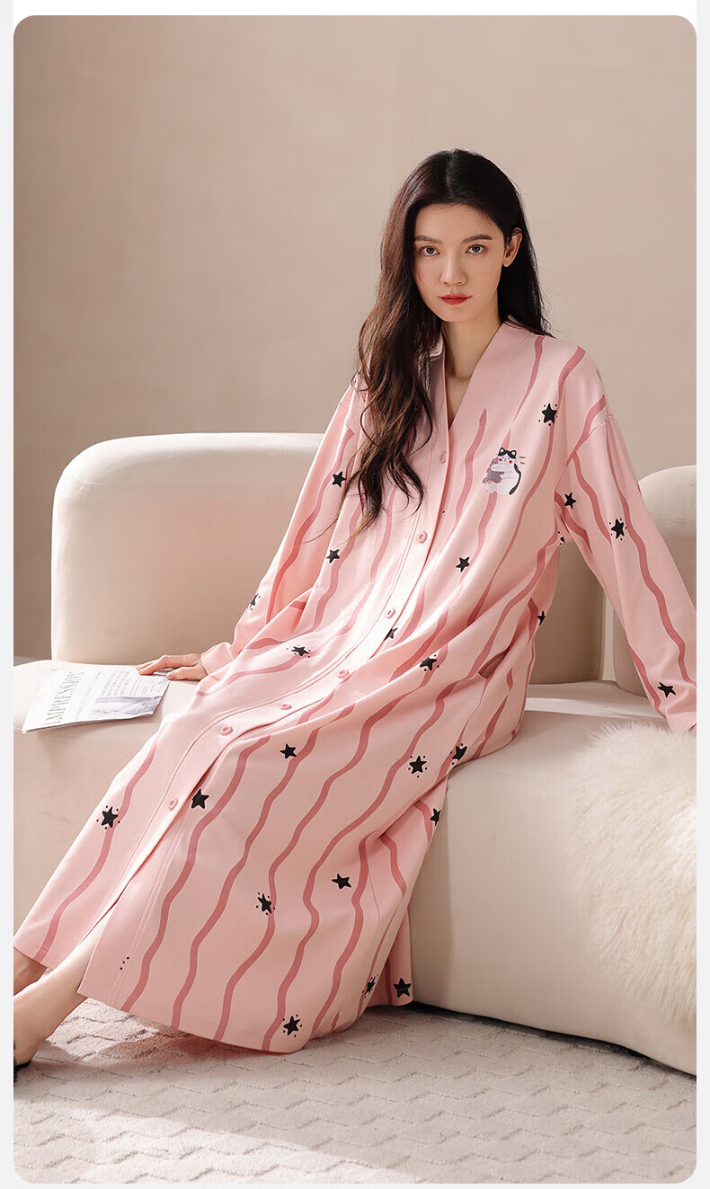 猫人(MiiOW)纯棉睡裙女秋冬季长袖睡衣女大码待产裙连衣裙开衫家居服可外穿 桃粉小猫 【舒适纯棉 柔软亲肤】 L 【建议100-120斤】