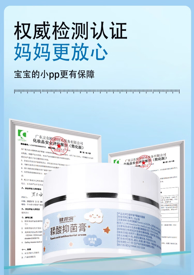 健邦客鞣酸抑菌软膏婴幼新生儿护臀膏红屁屁股专用润肤保湿霜官方旗舰店