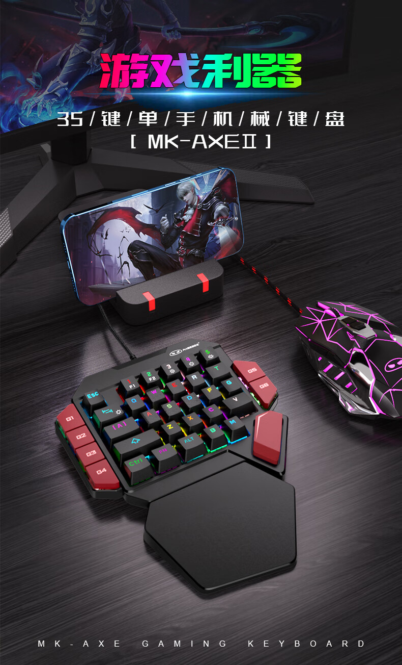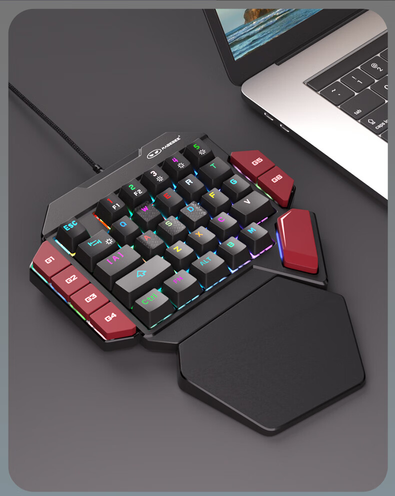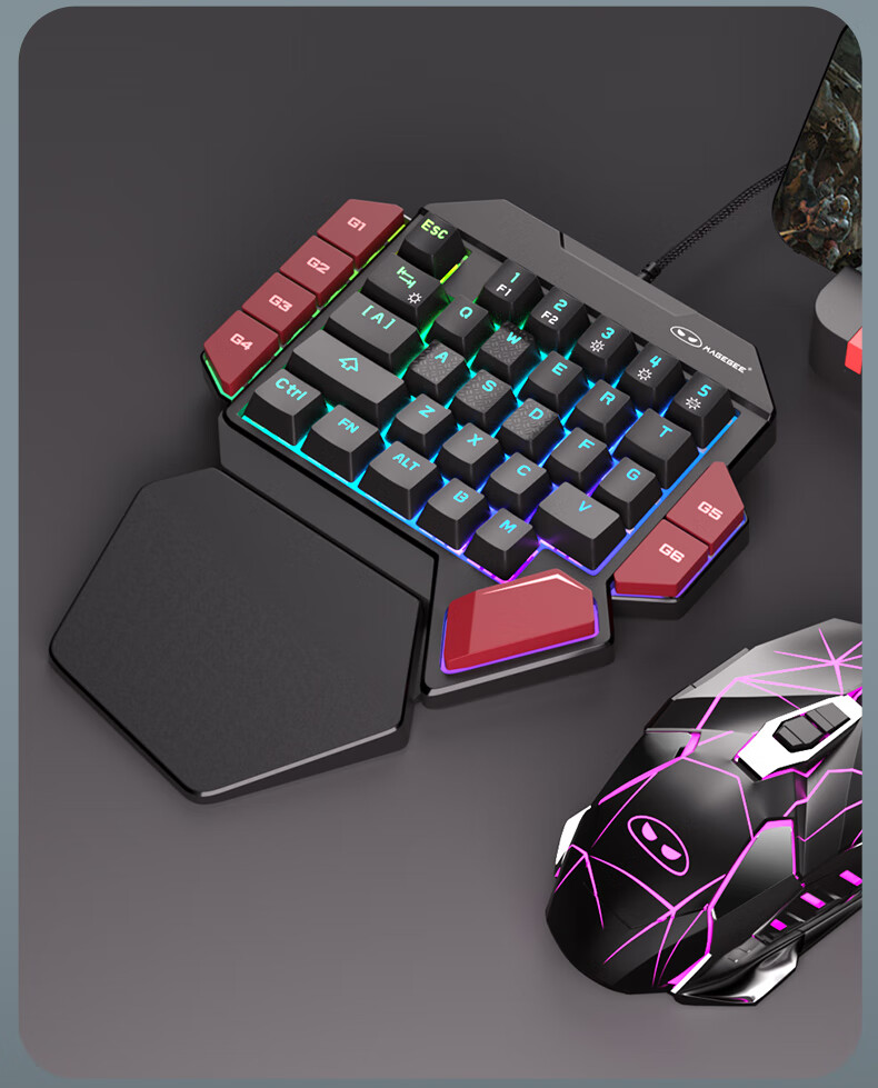 MageGee 战斧2 左手机械键盘 电竞游戏专用台式笔记本电脑键盘 RGB背光宏按键机械键盘 黑红混搭 青轴