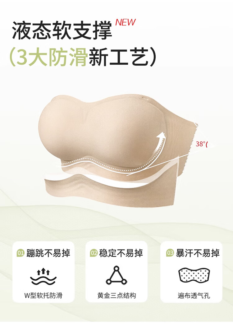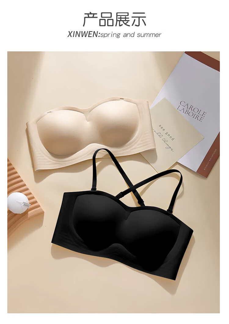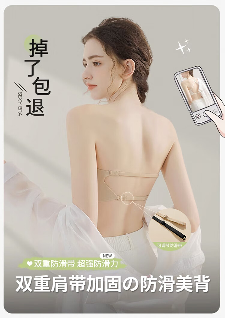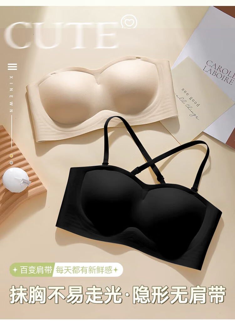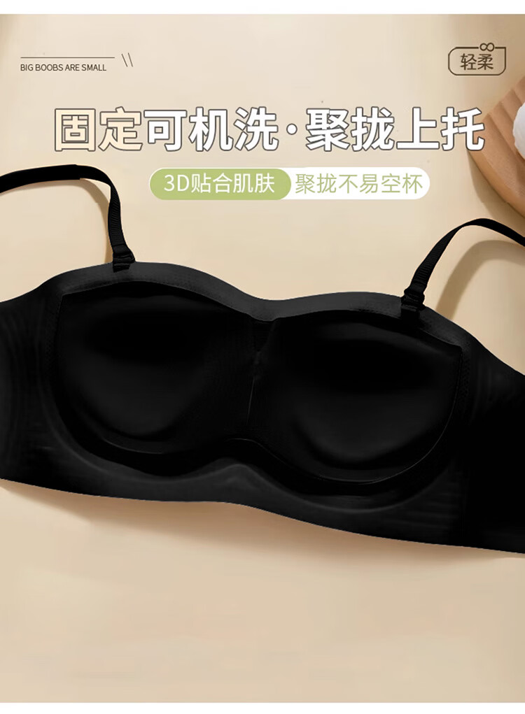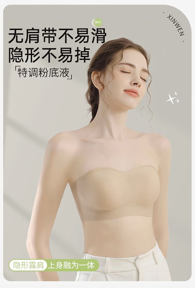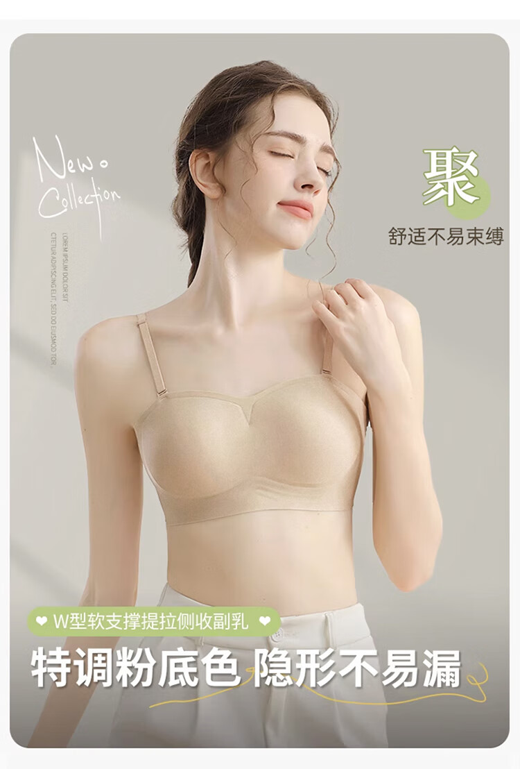 浪莎无肩带内衣女小胸防滑聚拢无痕粉底液隐形不透抹胸裹胸美背文胸罩