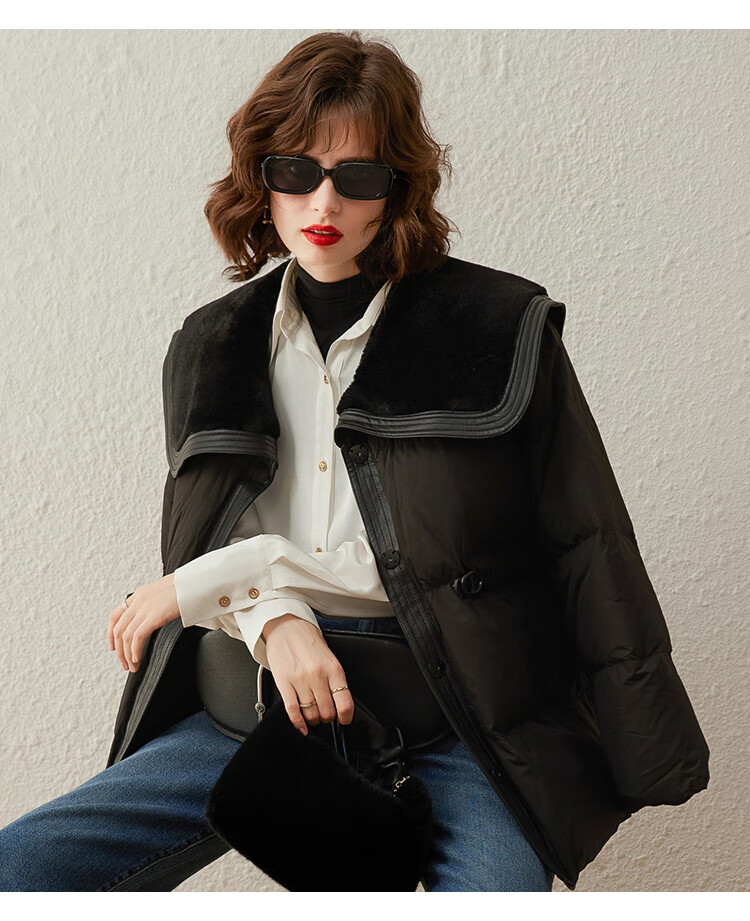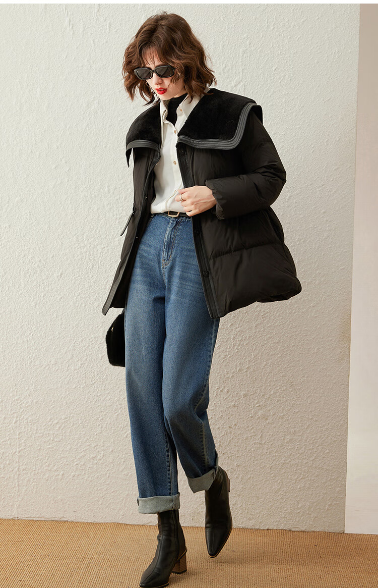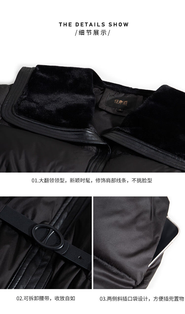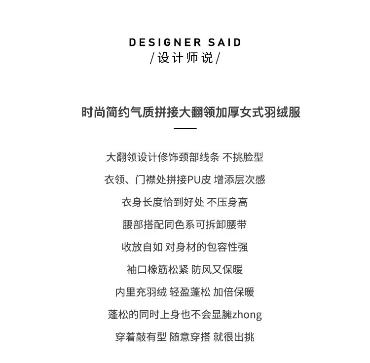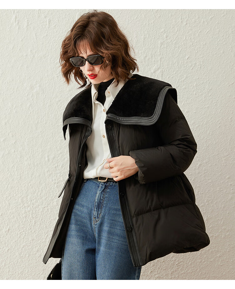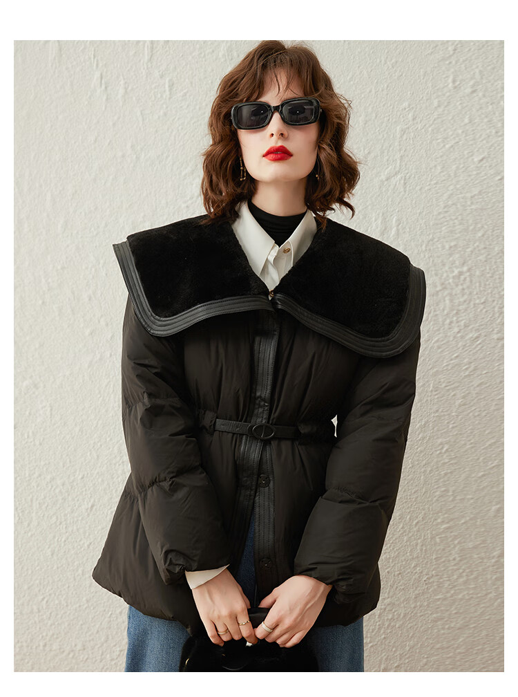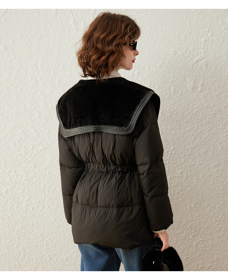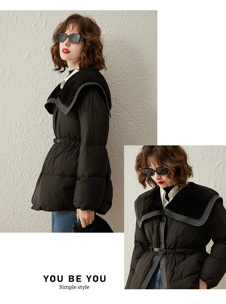 白鹿语冬季翻领简约鸭绒加厚羽绒服拼接收腰面包服外套女 卡其1 S