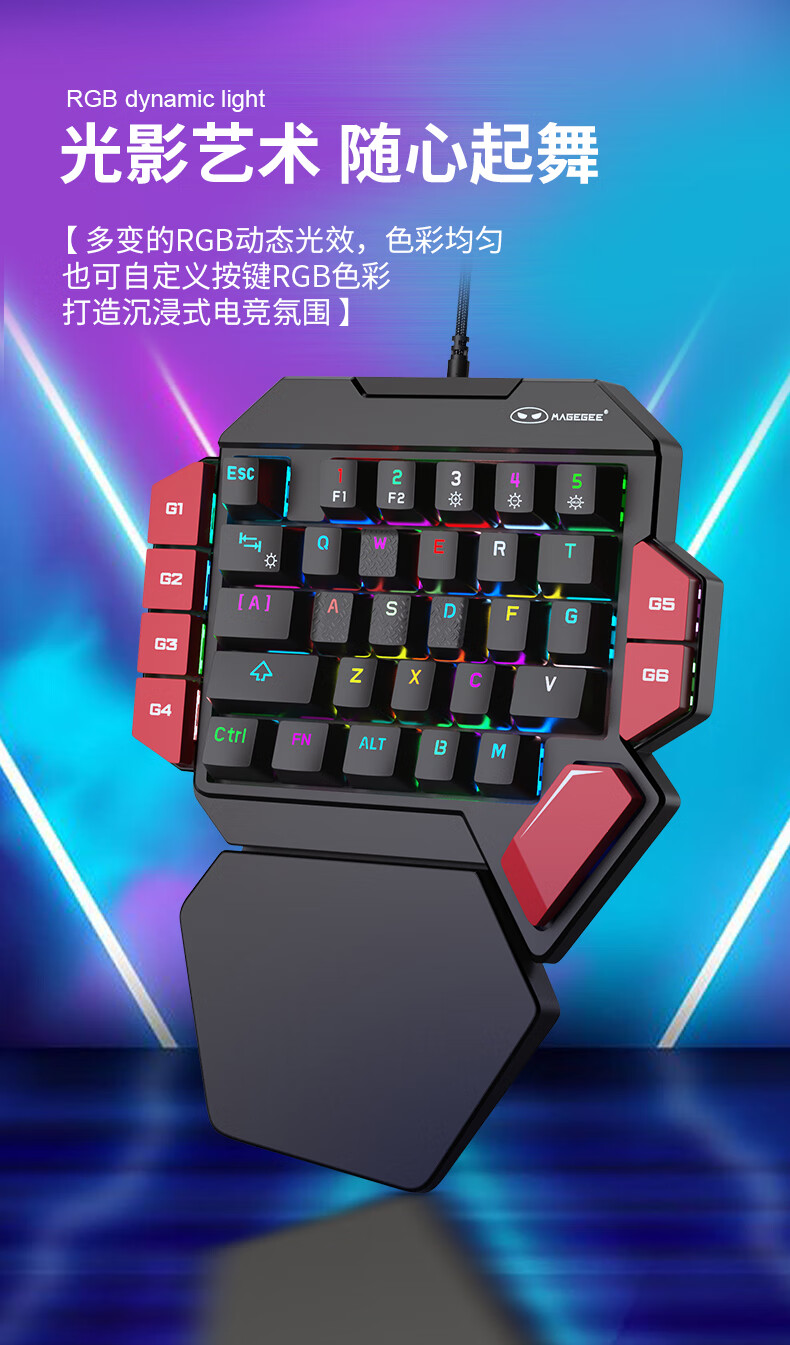 MageGee 战斧 左手游戏键盘 电竞吃鸡专用键盘 台式笔记本电脑键盘 背光宏按键cf机械键盘 黑色混光 红轴