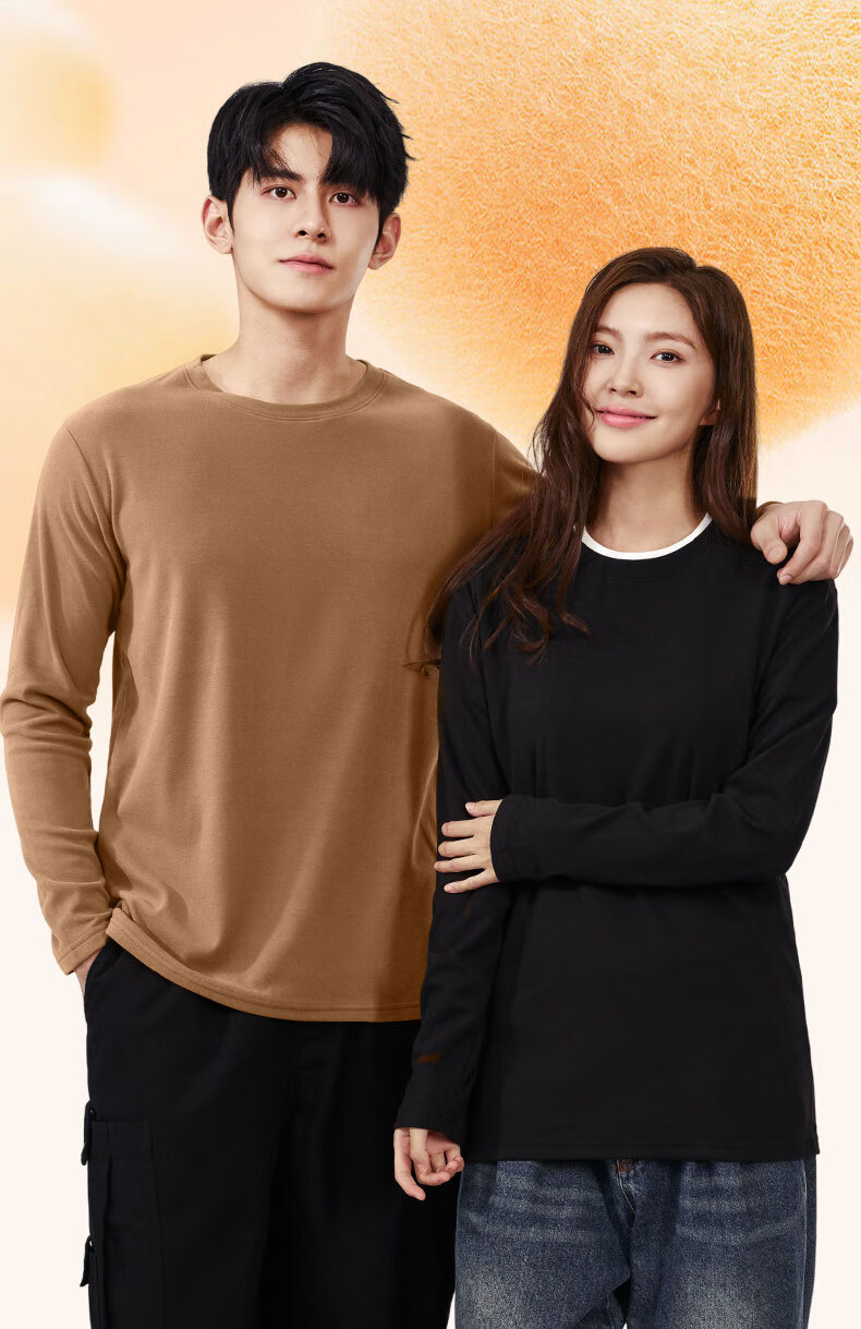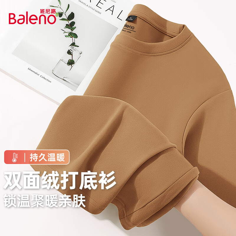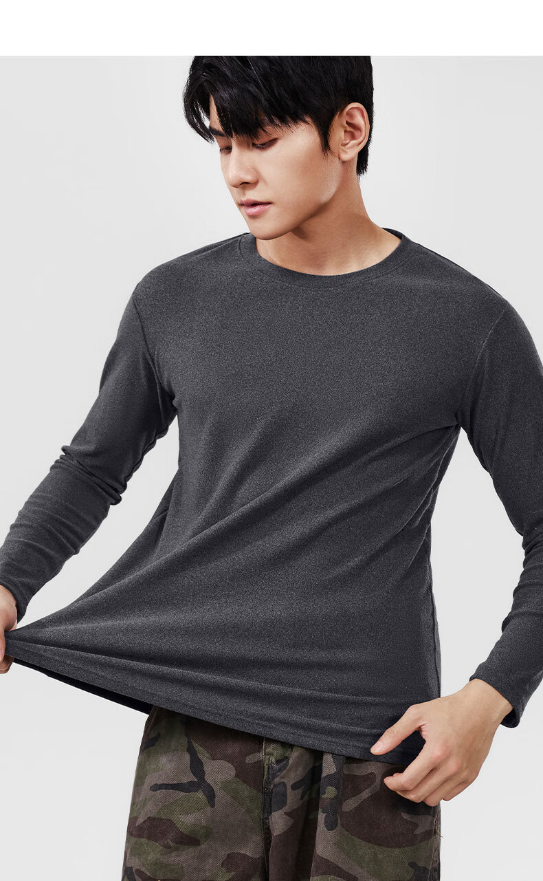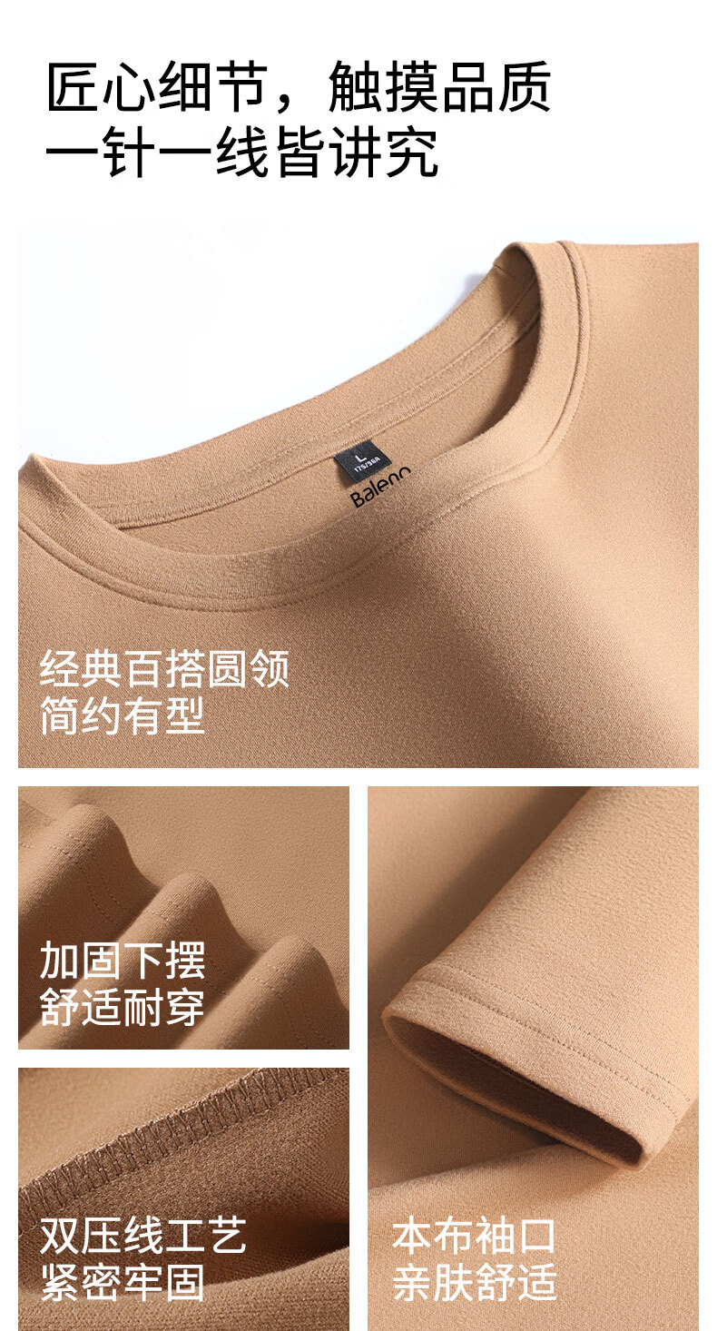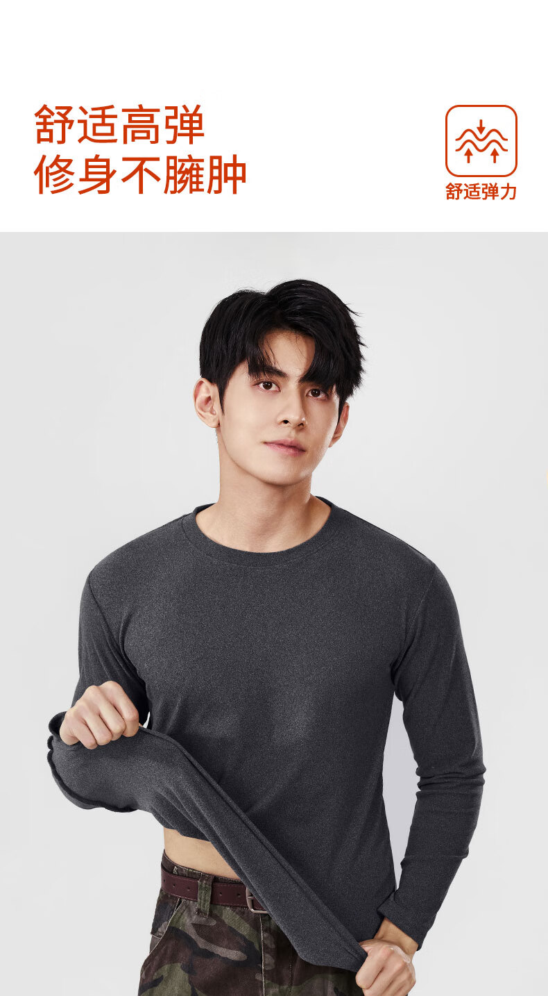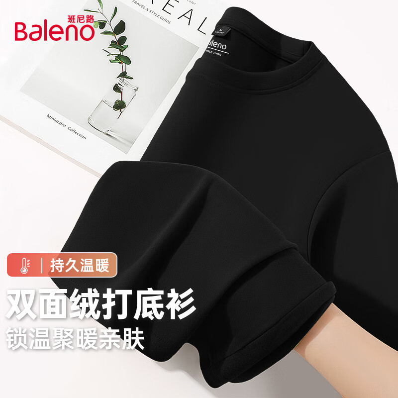 班尼路秋冬季新款加绒抗菌防螨低领圆领打底衫男装柔软舒适潮流百搭长袖 【双面绒】-黑#纯色 2XL