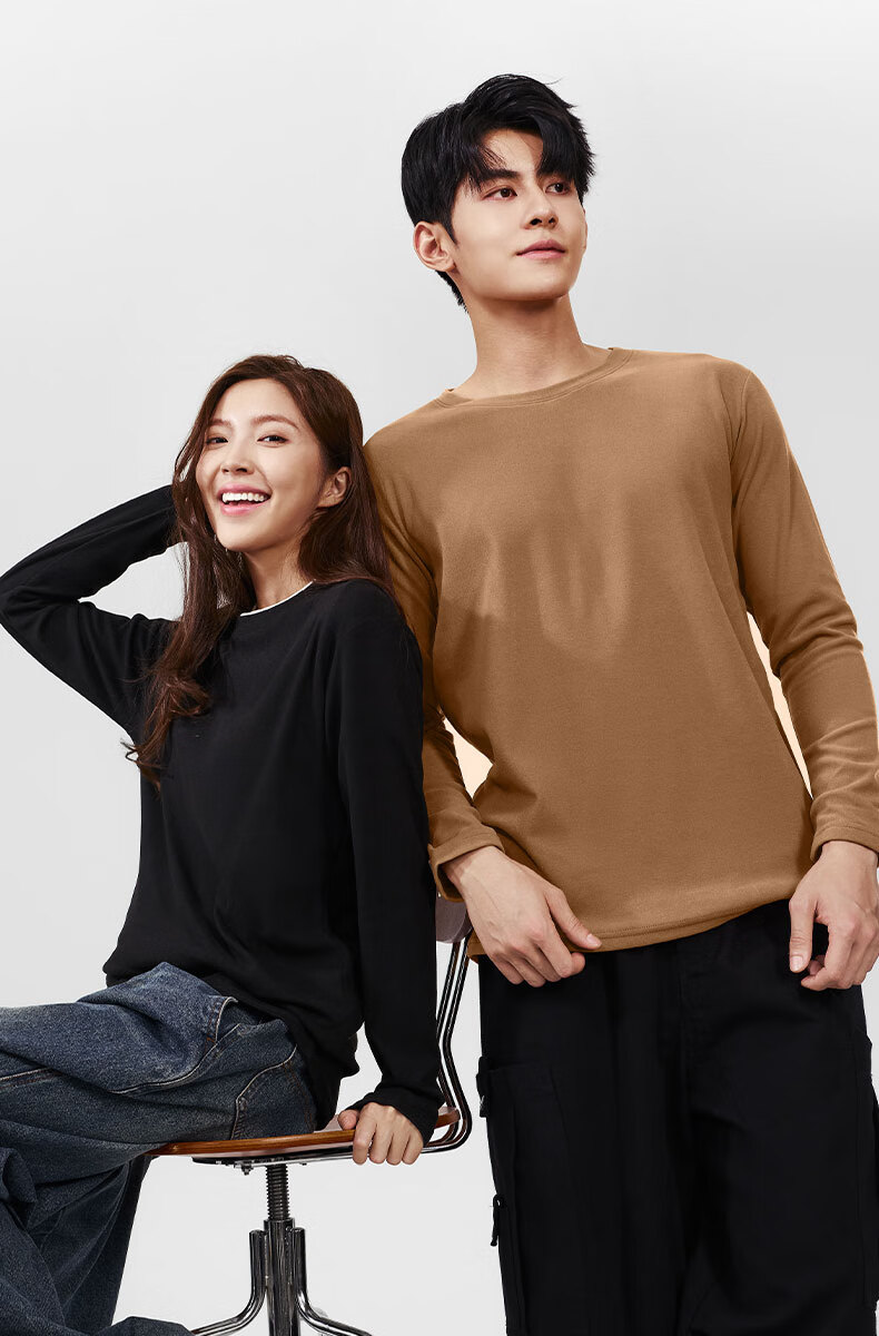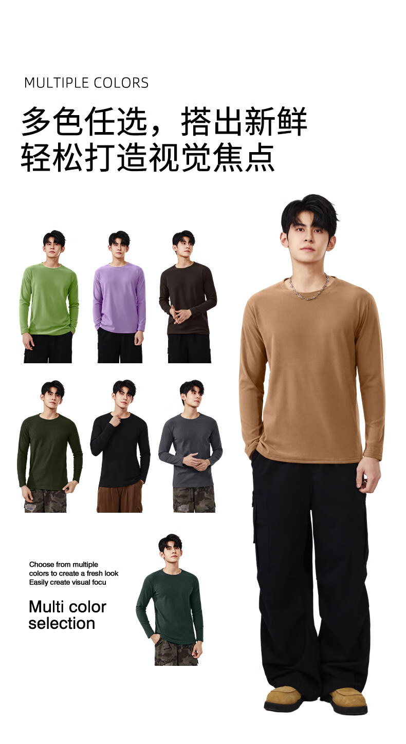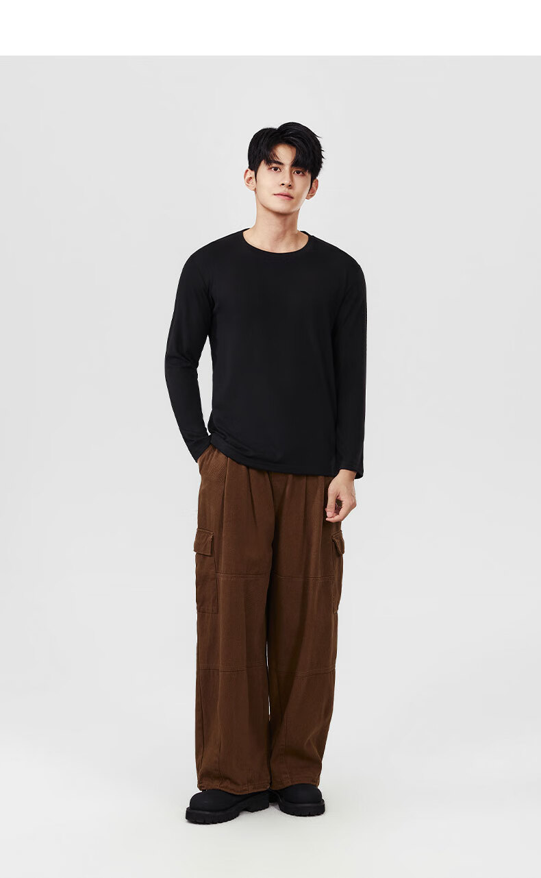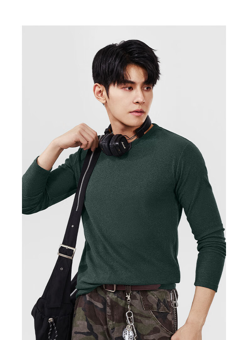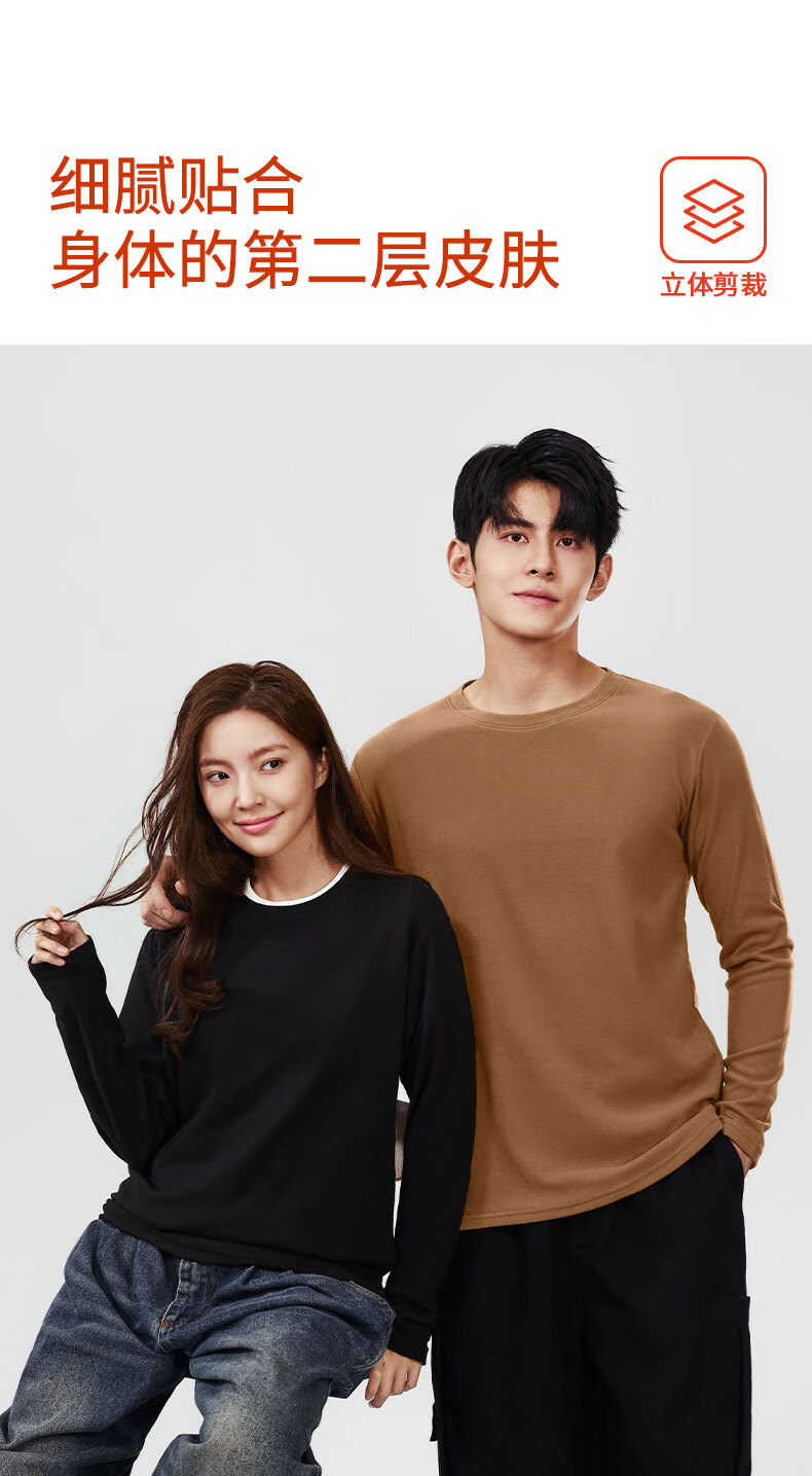 班尼路秋冬季新款加绒抗菌防螨低领圆领打底衫男装柔软舒适潮流百搭长袖 【双面绒】-黑#纯色 2XL