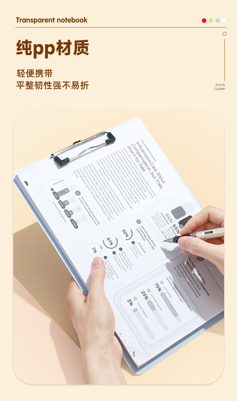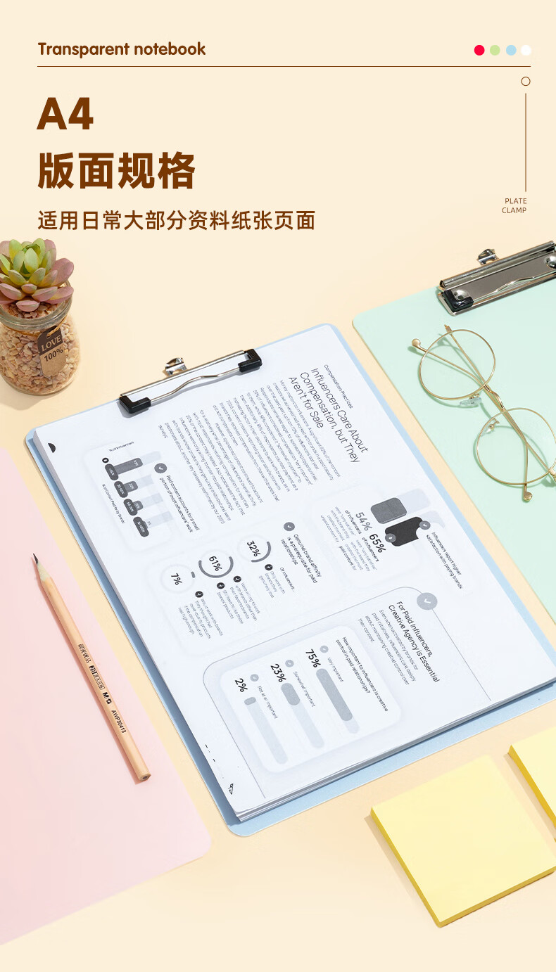 晨光(M&G)文具 A4书写板夹 加厚写字垫板 文件夹马卡龙粉色 试卷收纳夹 办公开学文具ADM945X7C1