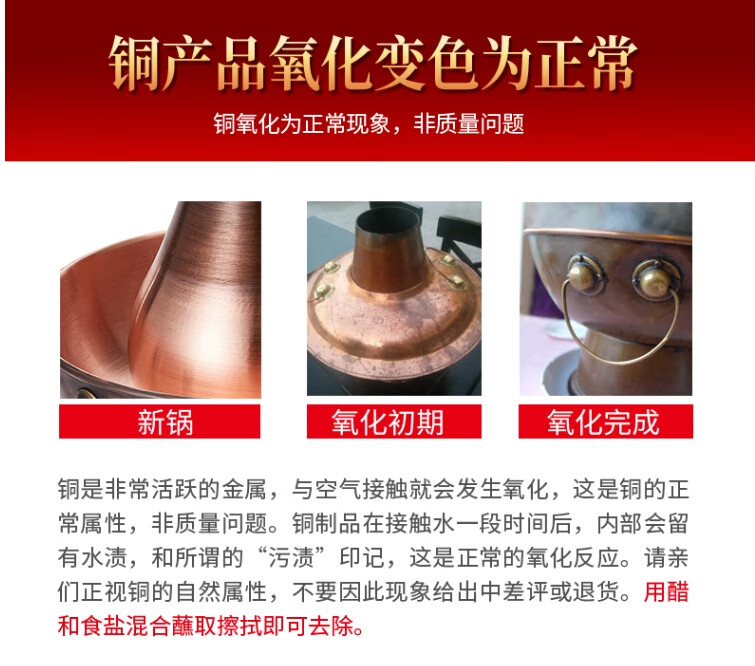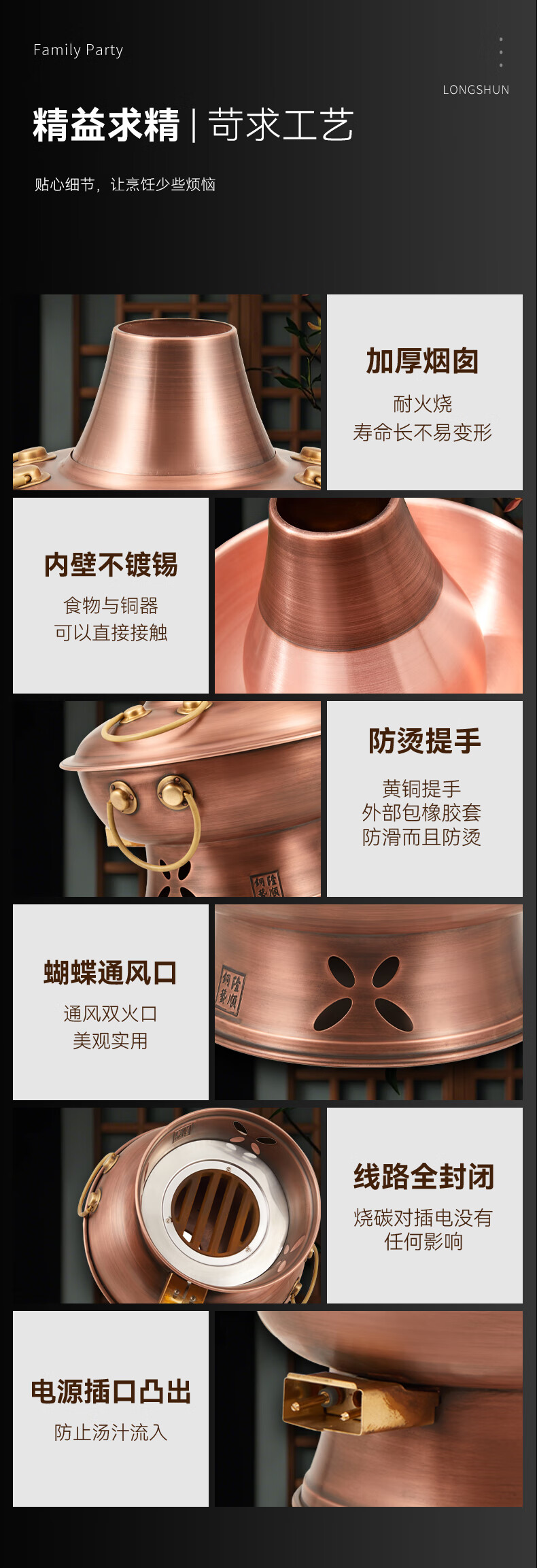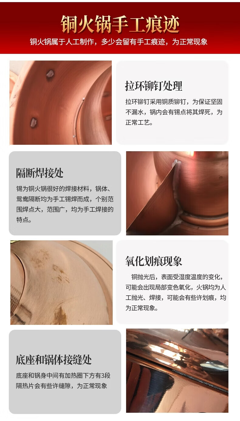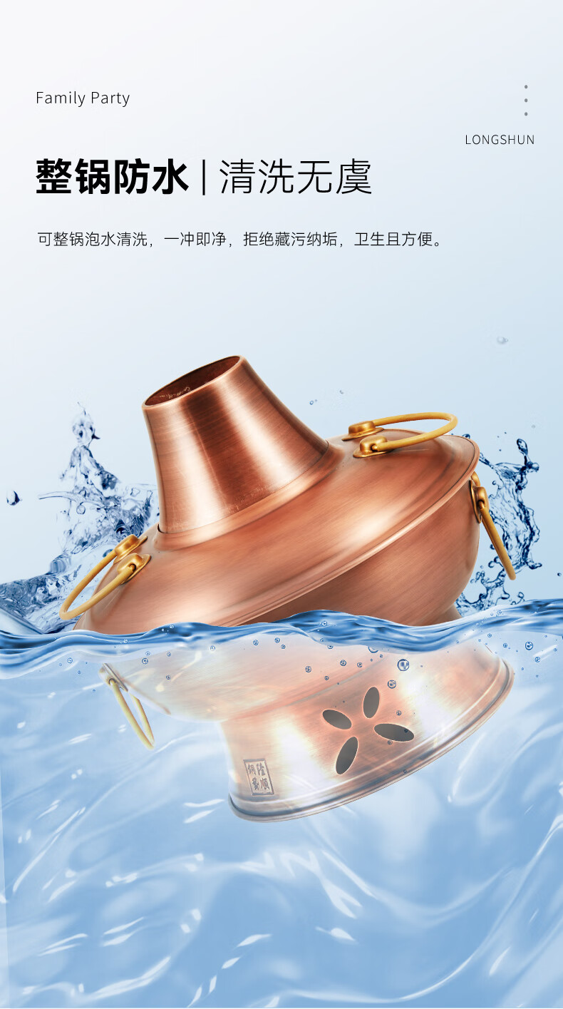 隆顺铜艺 铜火锅紫铜电炭两用插电木碳火锅家用加厚老北京涮肉铜锅火锅 6-8人鸳鸯锅【加厚防水】 34cm
