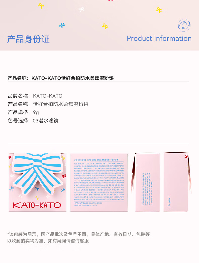 KATO-KATO【张康乐同款】柔焦蜜粉饼03控油持妆定妆细腻遮瑕新年礼物送女友