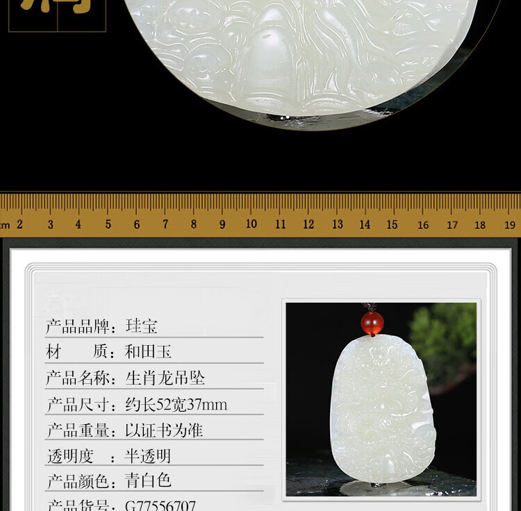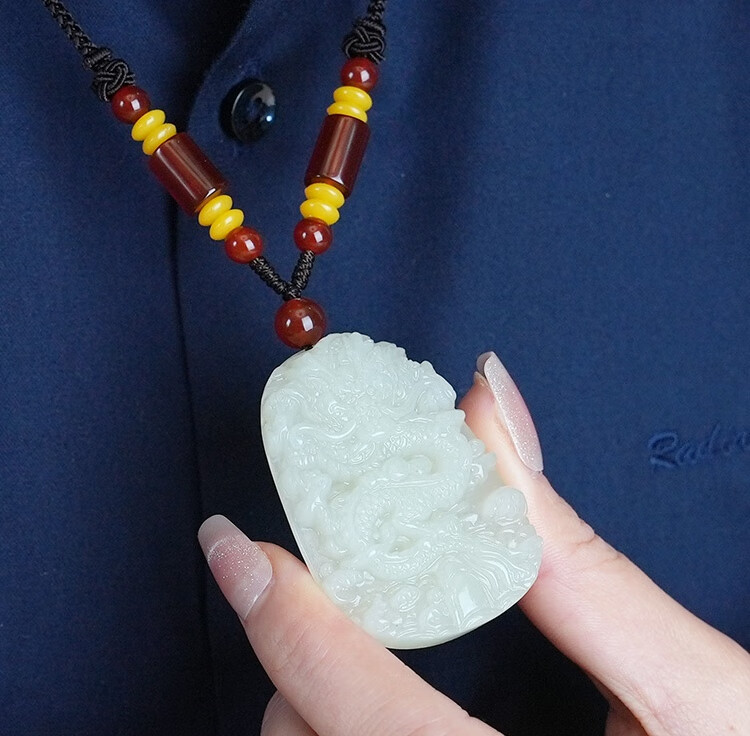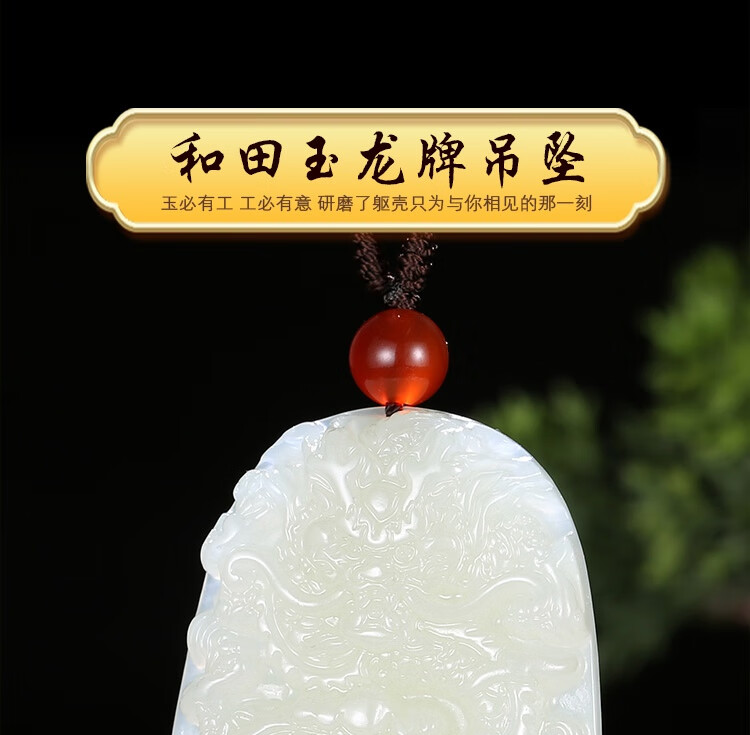 珪宝和田玉龙牌吊坠男女款玉坠玉佩挂件玉石项链玉器挂件礼物有黑点