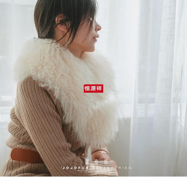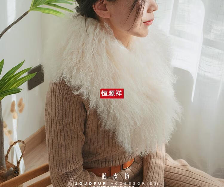 恒源祥[御皮坊]真毛滩羊毛围巾双面整皮皮草毛领子围脖加厚 温馨米
