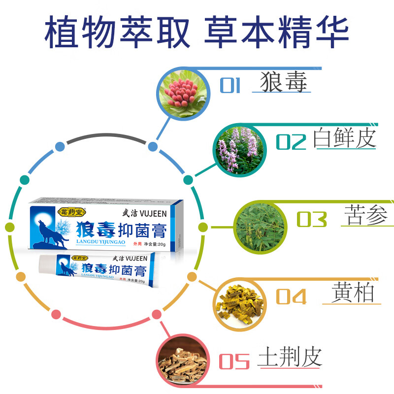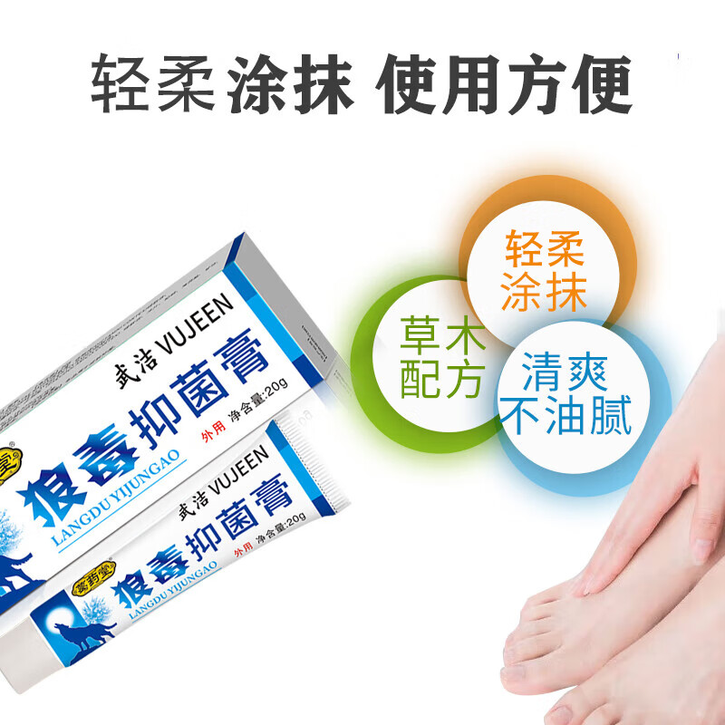 VUJEEN狼毒抑菌乳膏脚气软膏20g草本脚气膏脚气王狼毒软膏真菌脚痒脱皮