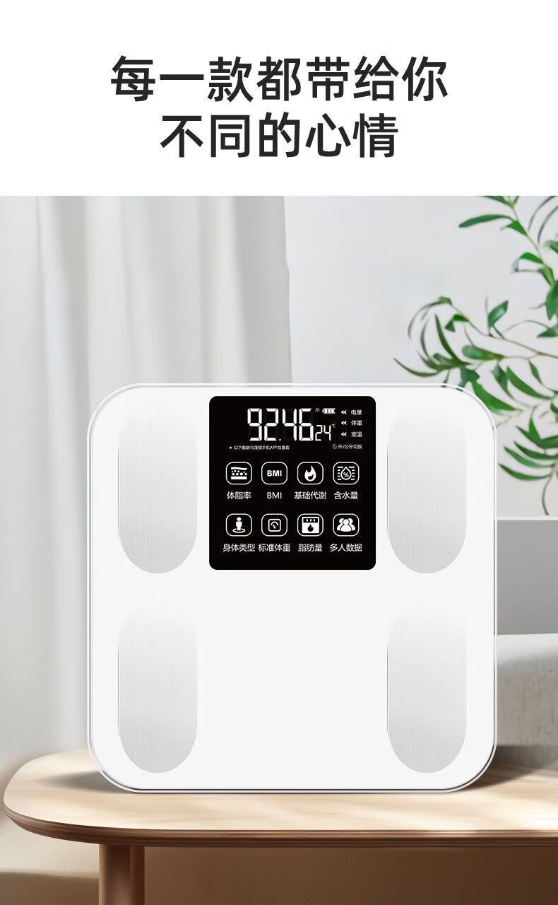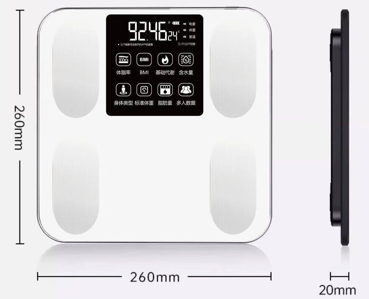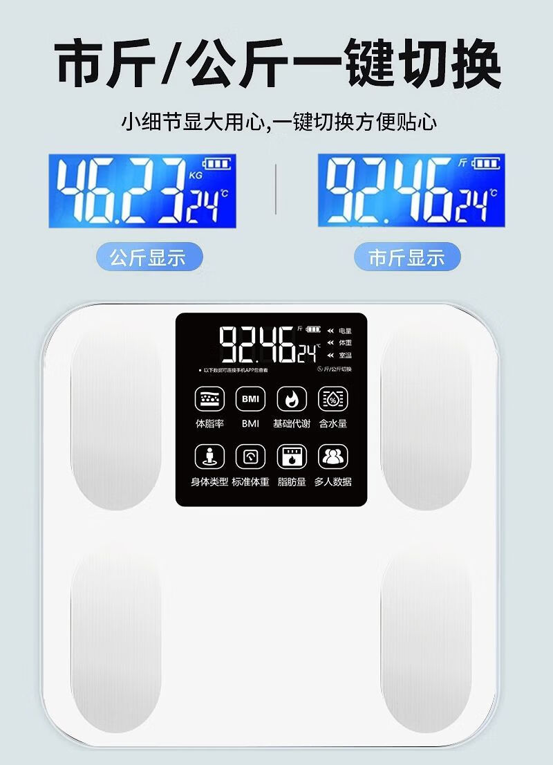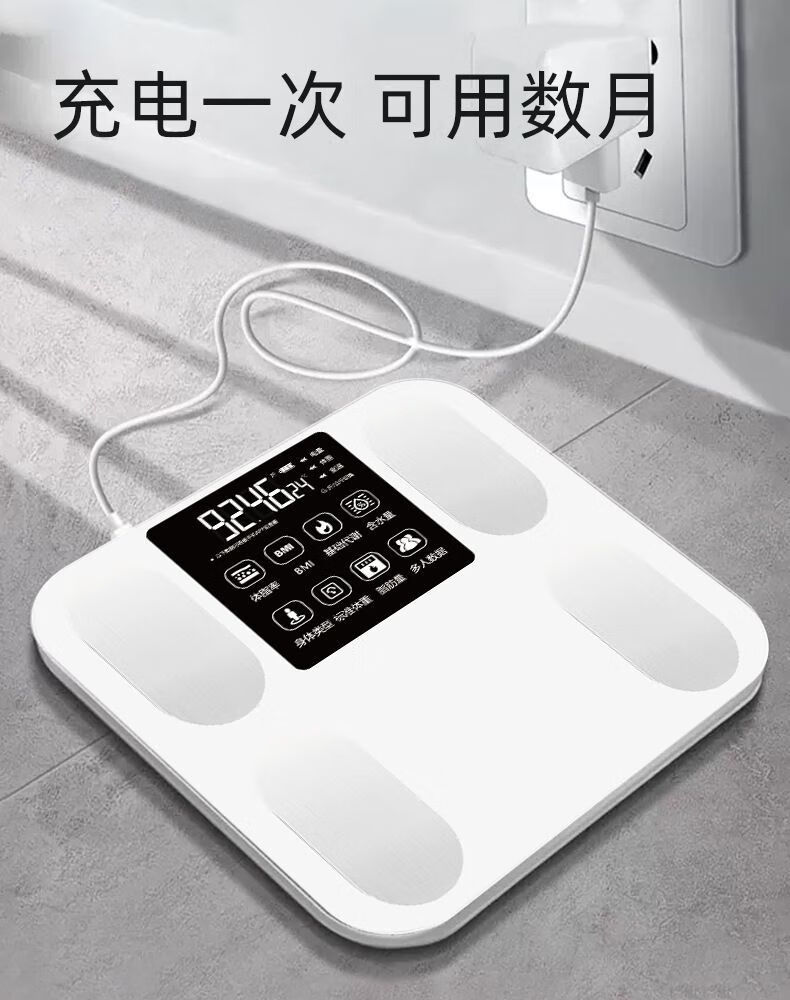 体脂秤智能电子秤体重秤智能称体重秤家用精准充电称体重体脂称减肥专用电子秤人体秤小米同款 白色【电池款】