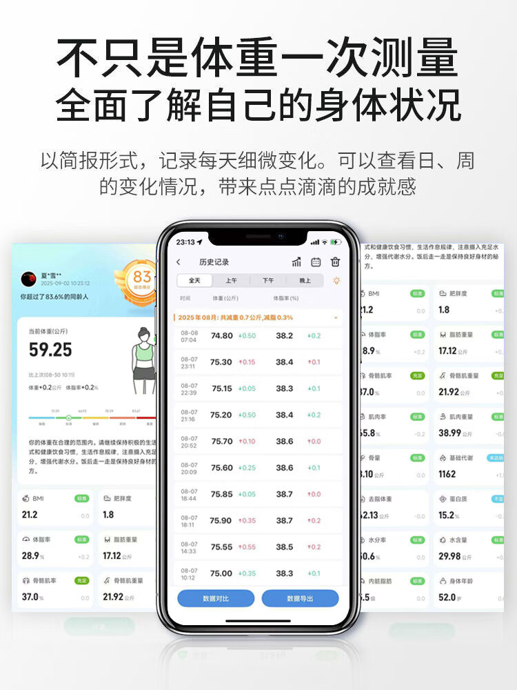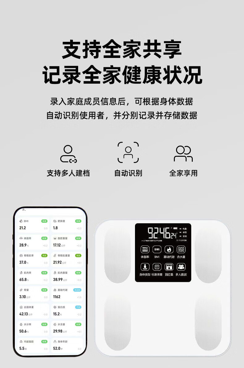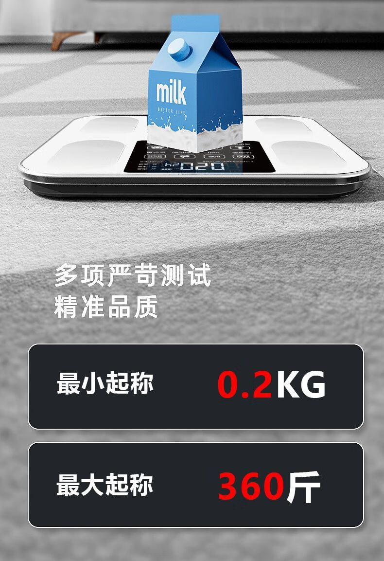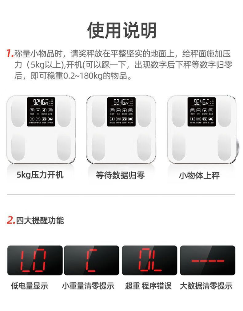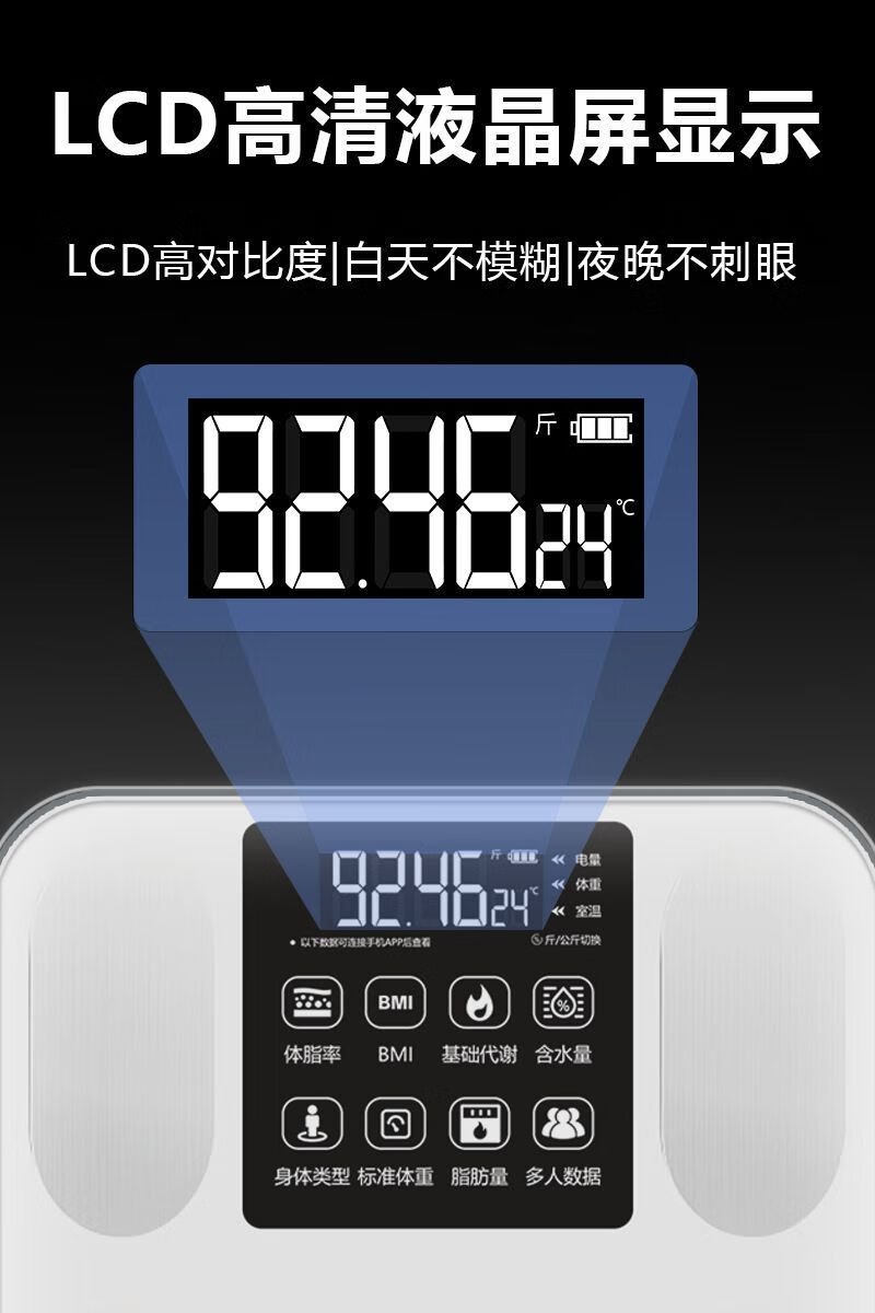 体脂秤智能电子秤体重秤智能称体重秤家用精准充电称体重体脂称减肥专用电子秤人体秤小米同款 白色【电池款】