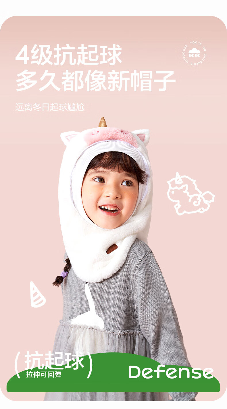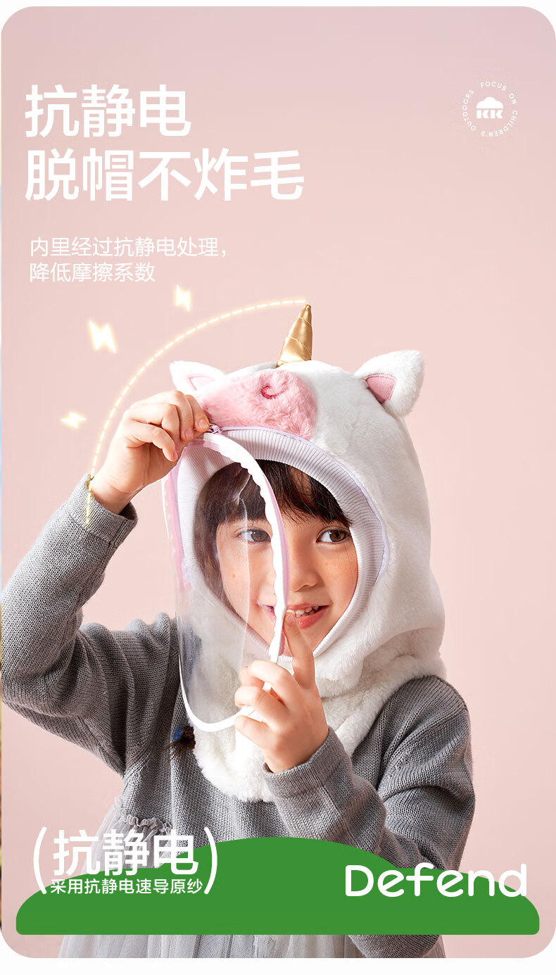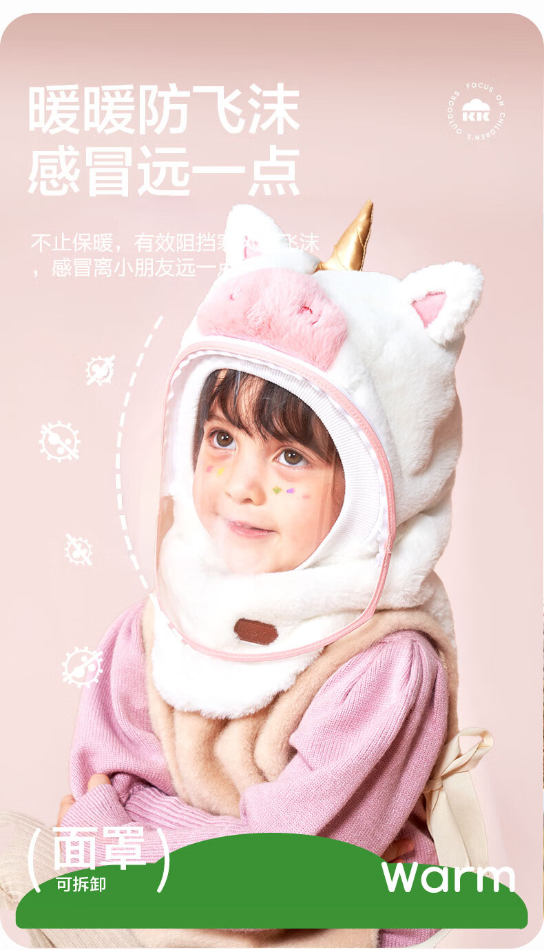 Kocotreekk树儿童帽子防风防护面罩秋冬加厚护耳帽 造梦独角兽 M码