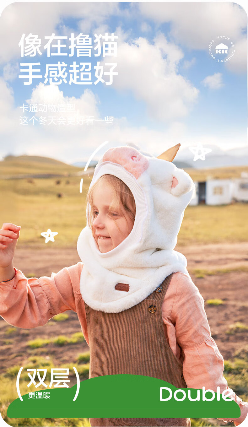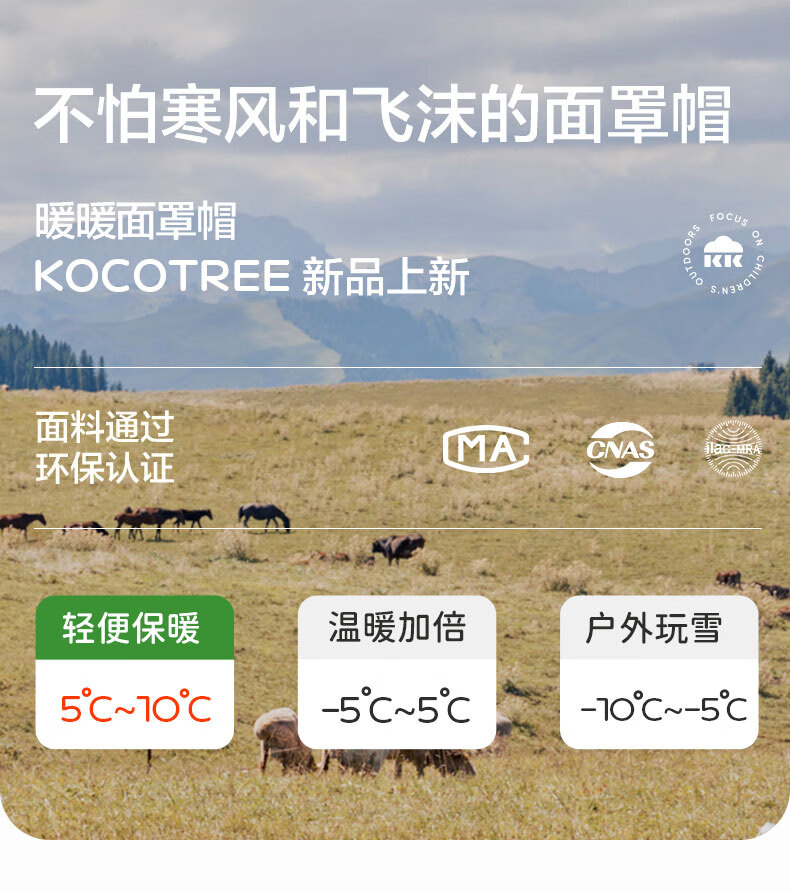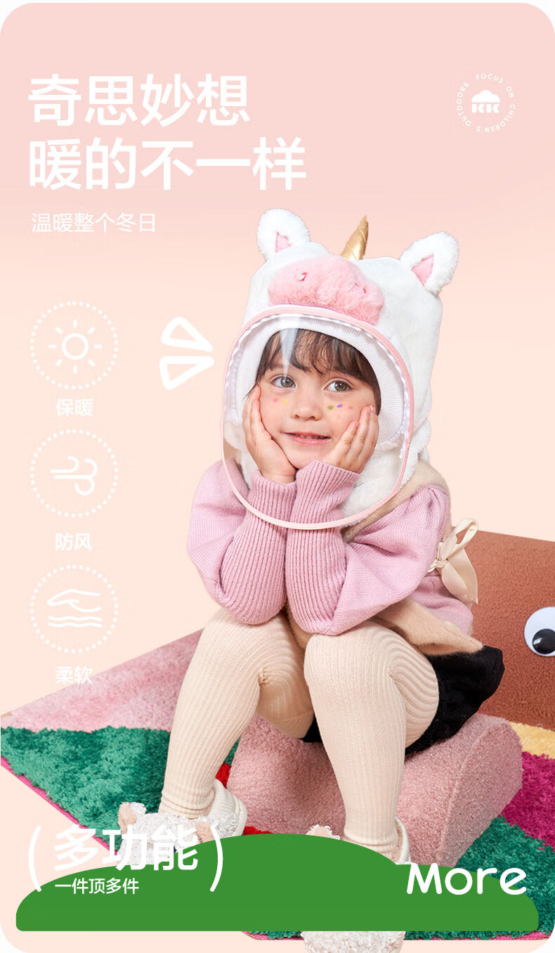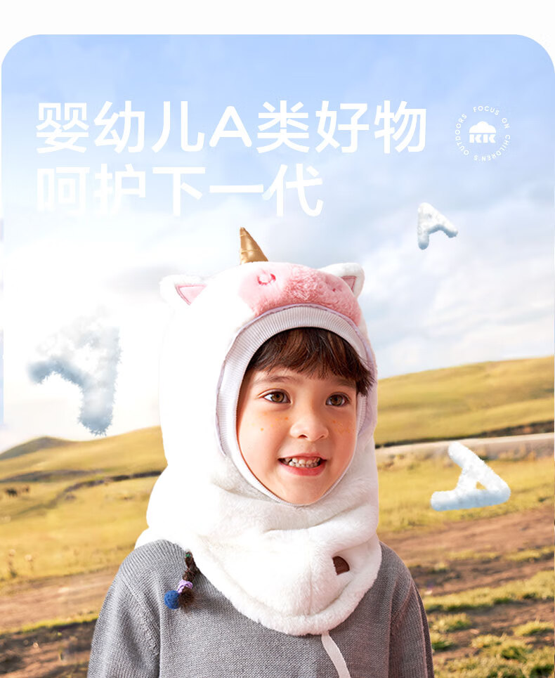 Kocotreekk树儿童帽子防风防护面罩秋冬加厚护耳帽 造梦独角兽 M码