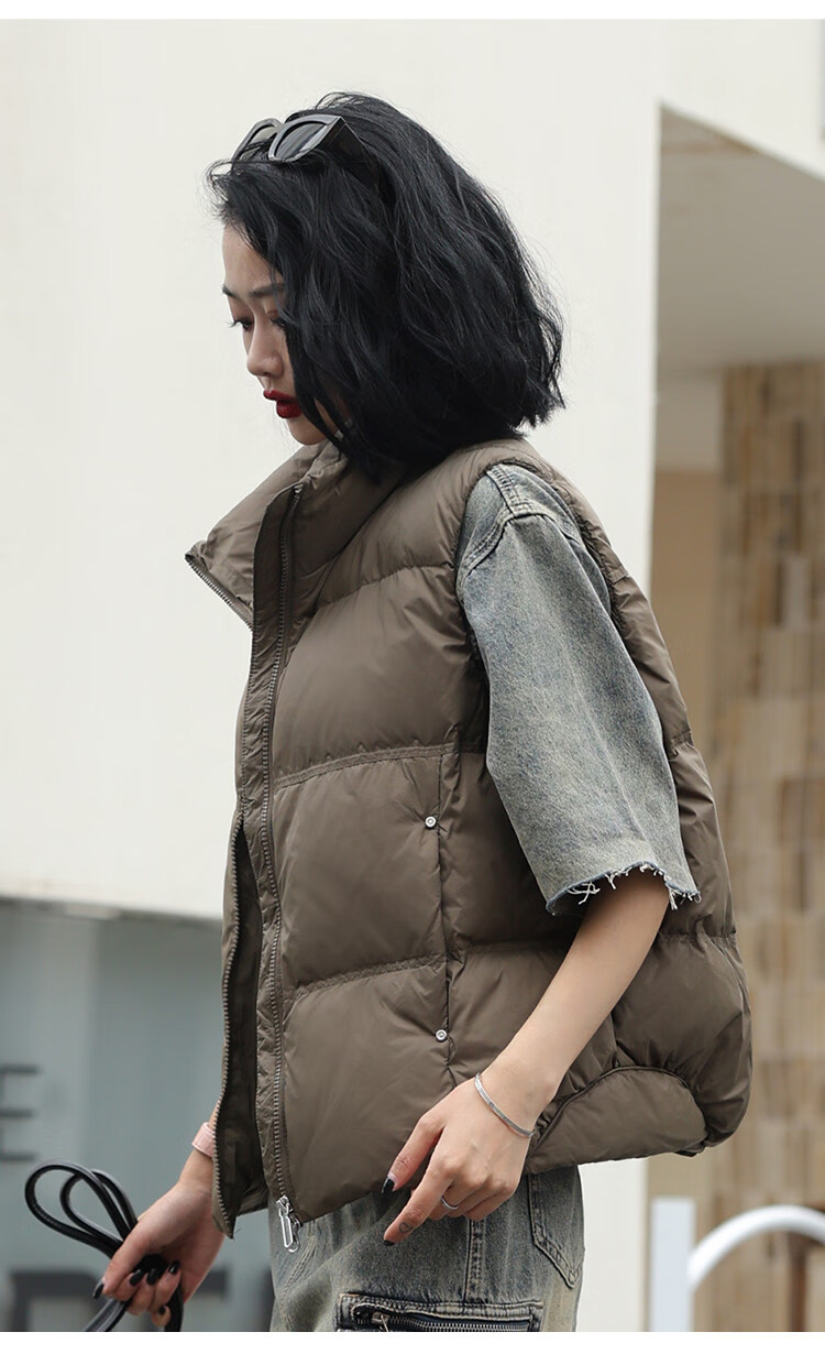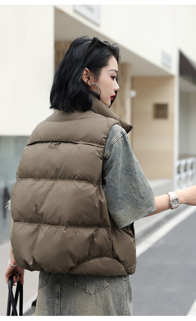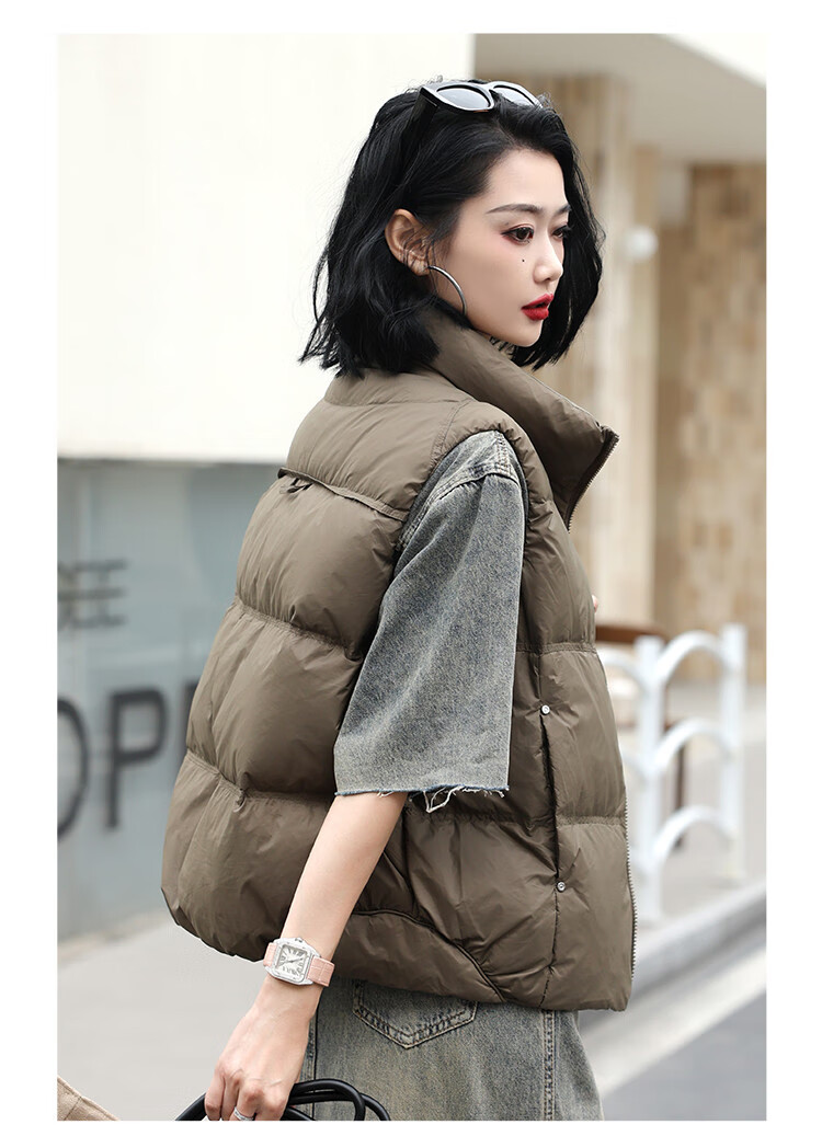 鸭鸭冬季短款立领羽绒马甲背心加厚宽松保暖休闲时尚外套马夹女