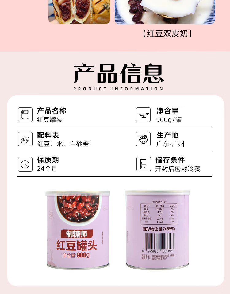 商用批发红豆罐头一箱12罐930克张大大的茶奶茶店烘焙原料 红豆罐头*12罐
