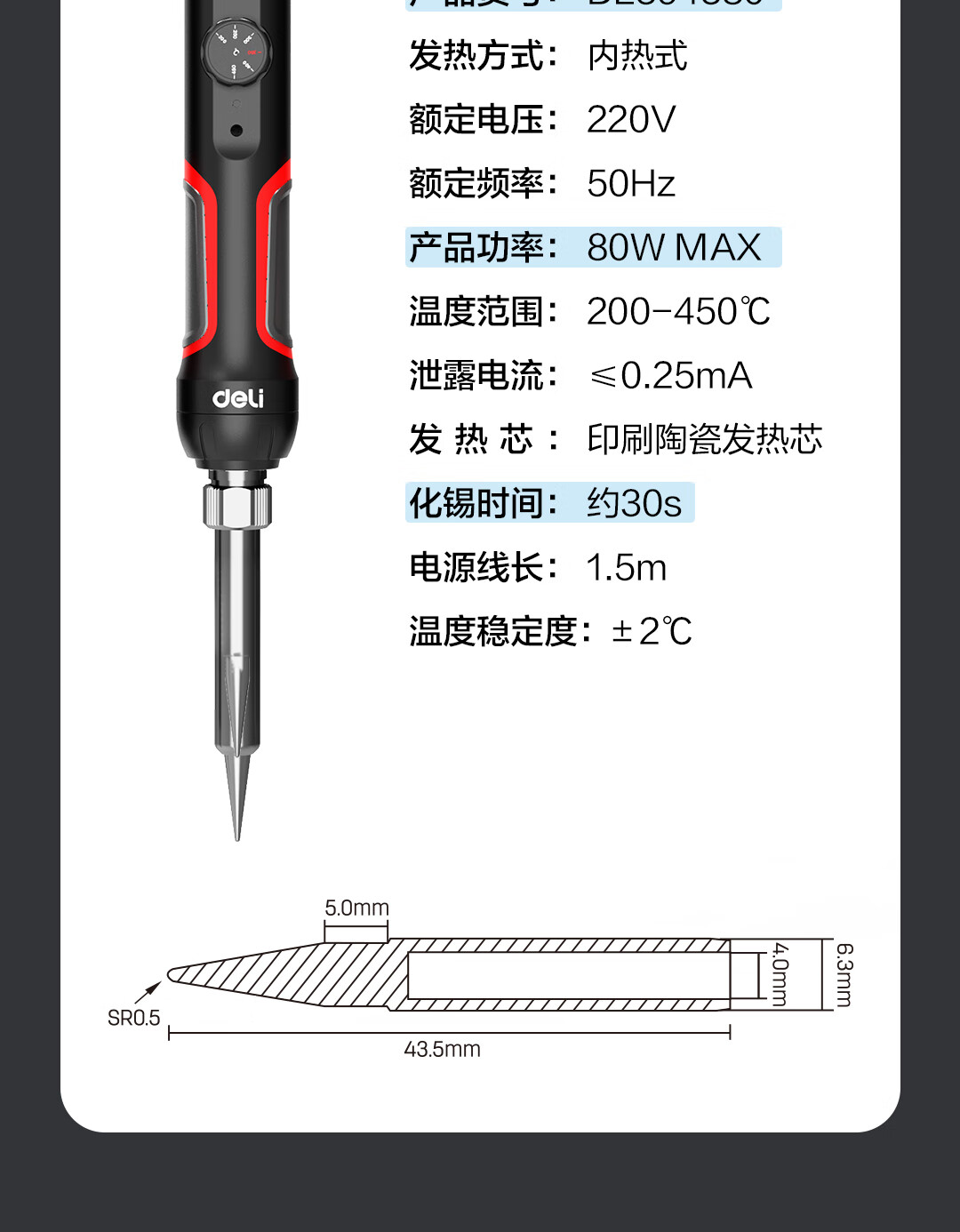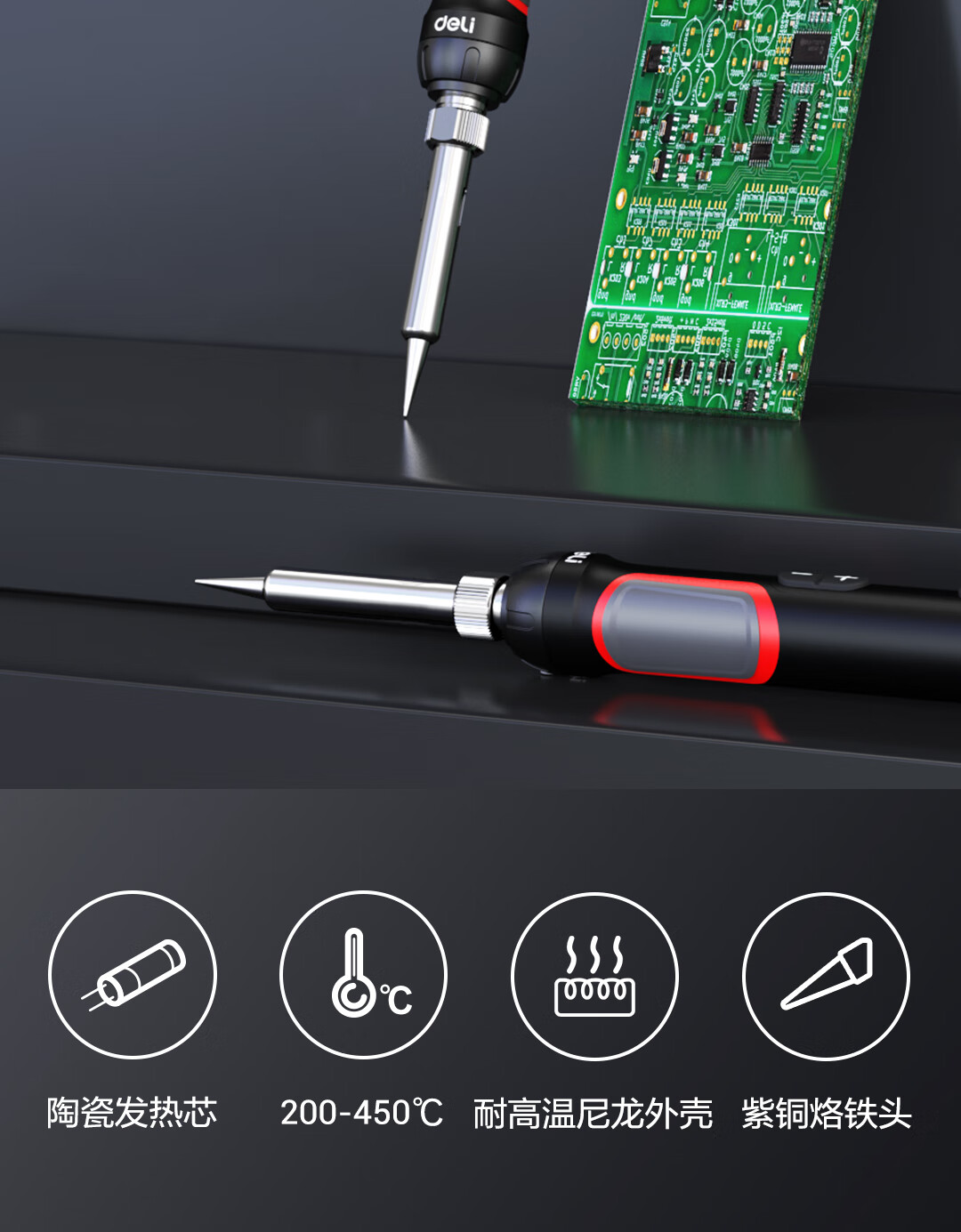 得力(deli)专业级80W内热式数显无极调温电烙铁电焊笔三层电镀防护家用