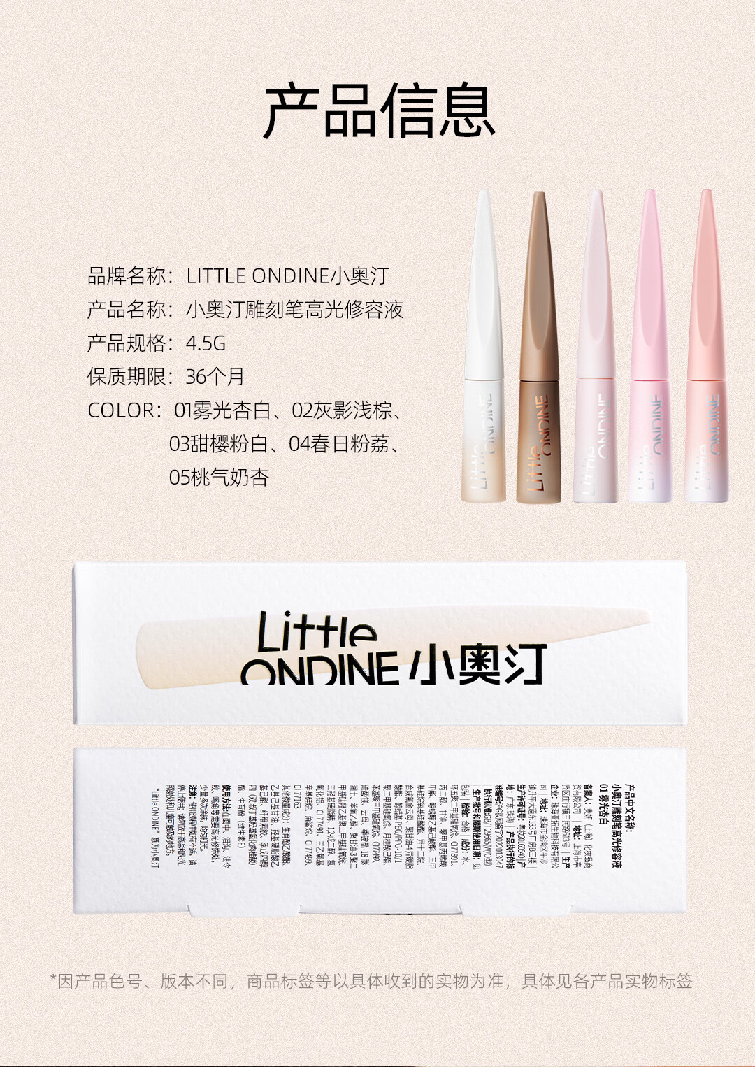 小奥汀(littleondine)液体高光修容液01雾光杏白4.5g遮瑕膏提亮修颜棒阴影新年礼物