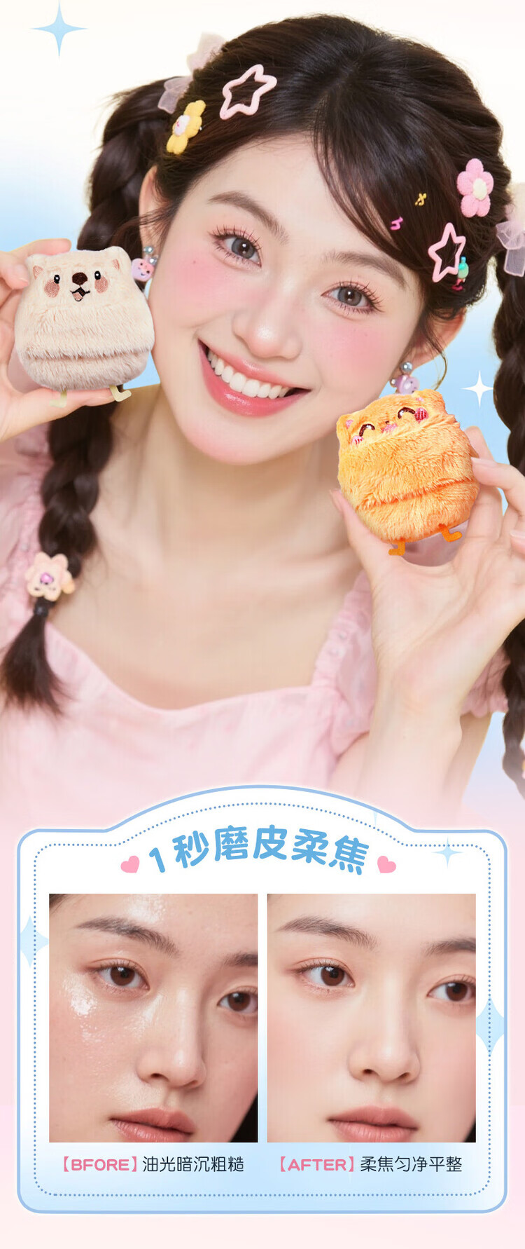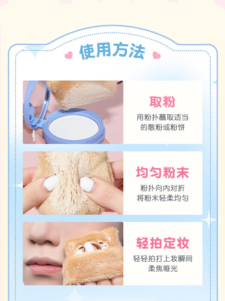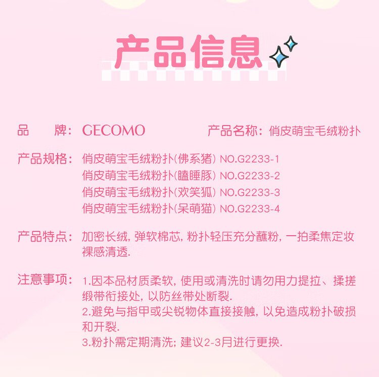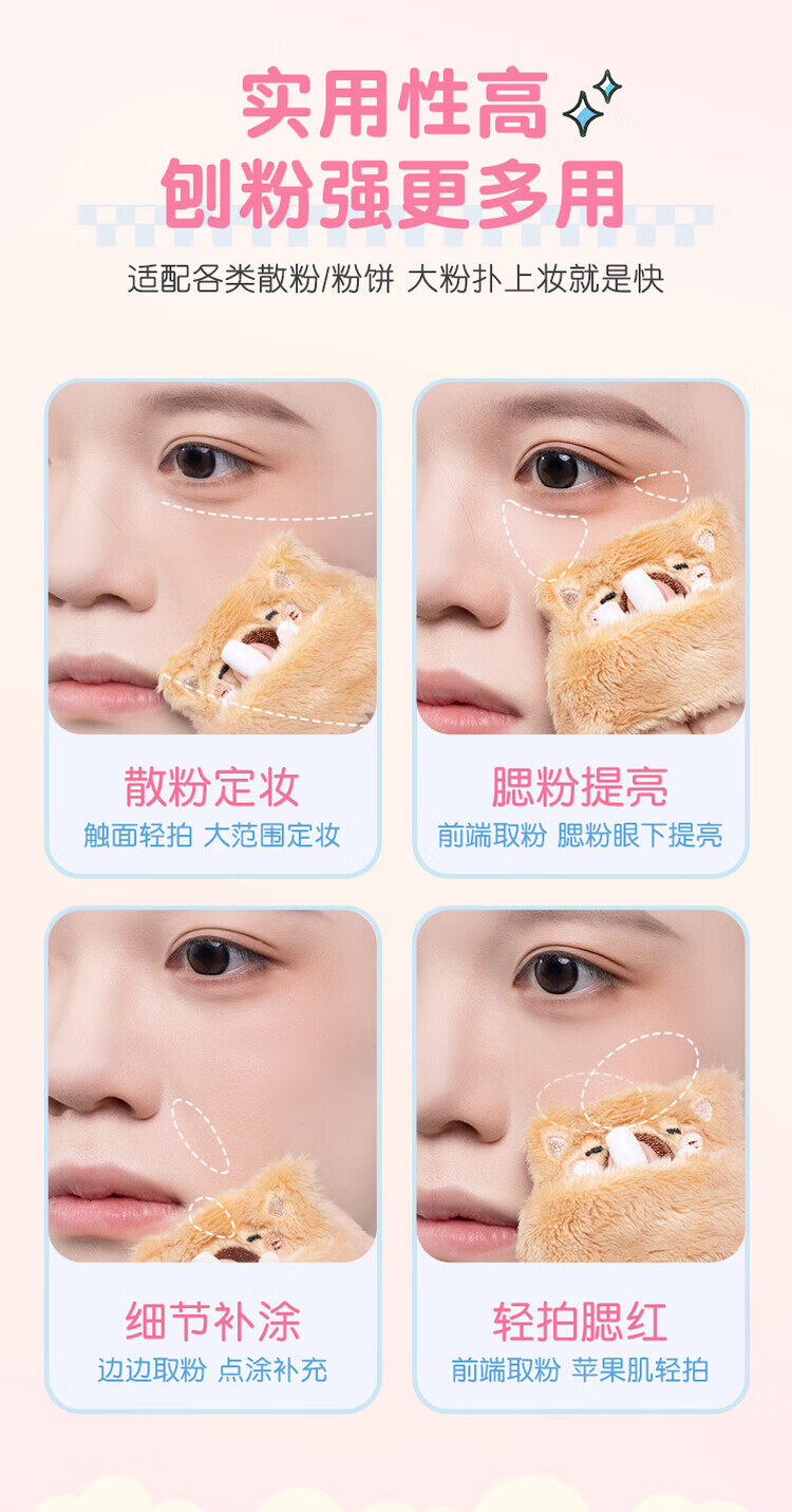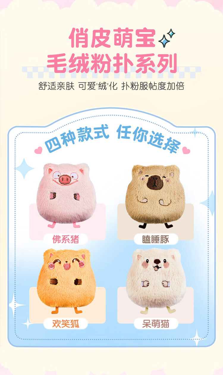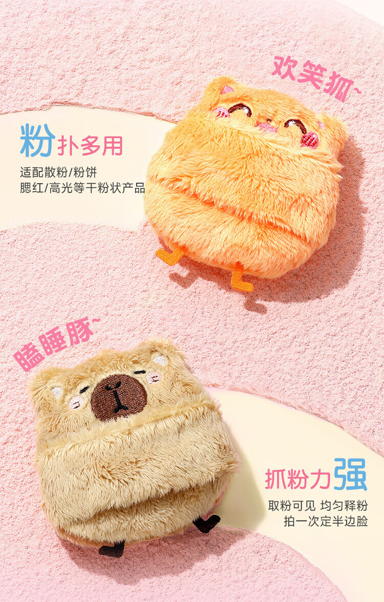 格蒙俏皮萌宝毛绒粉扑长绒植绒亲肤厚实散粉粉饼定妆美妆工具 毛绒粉扑(瞌睡豚) 1件