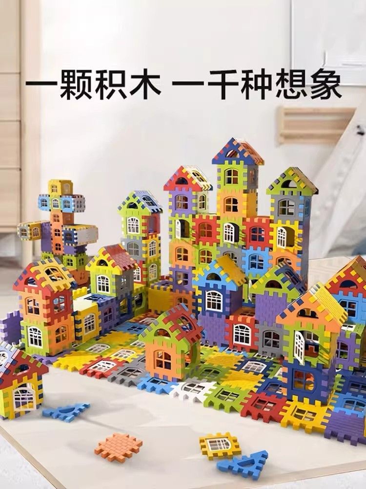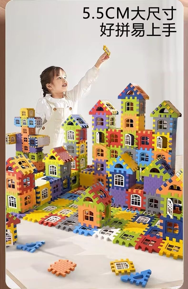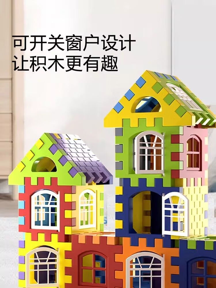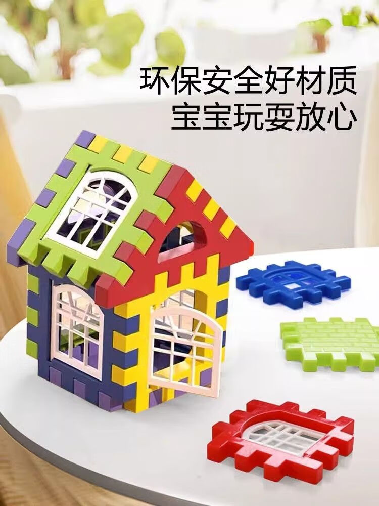 爱乐心新款大号diy房子积木超厚益智儿童玩具男女宝宝过家家礼物3 套装基础【袋装100片含窗20个】