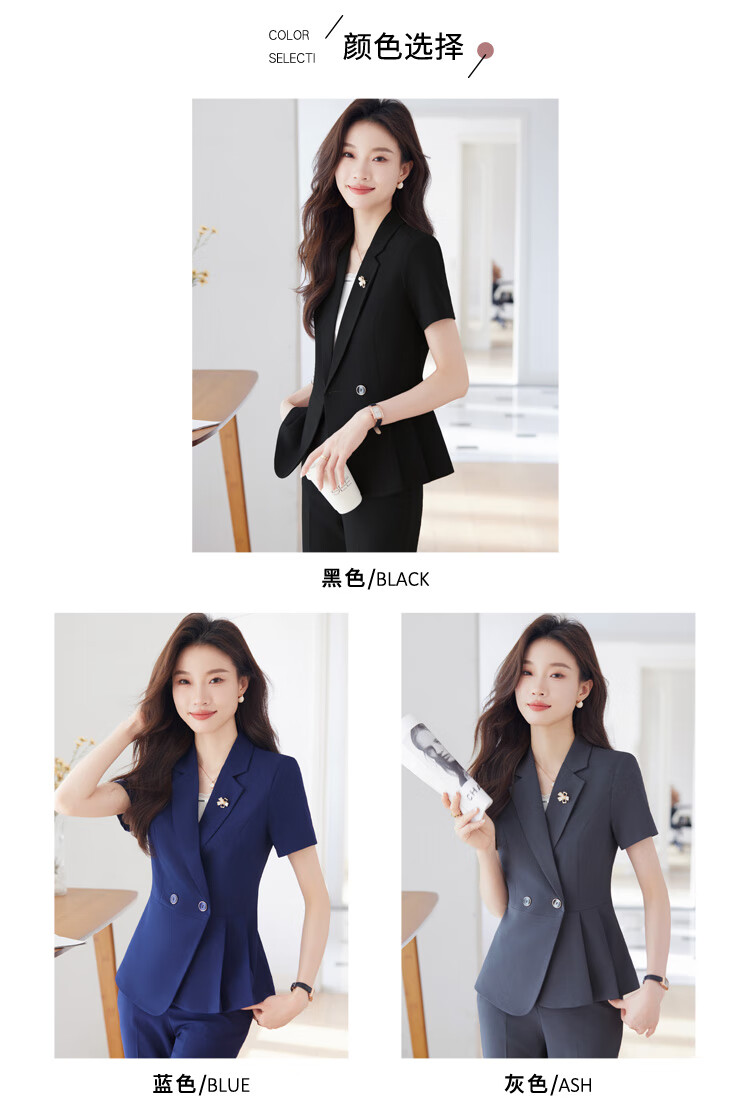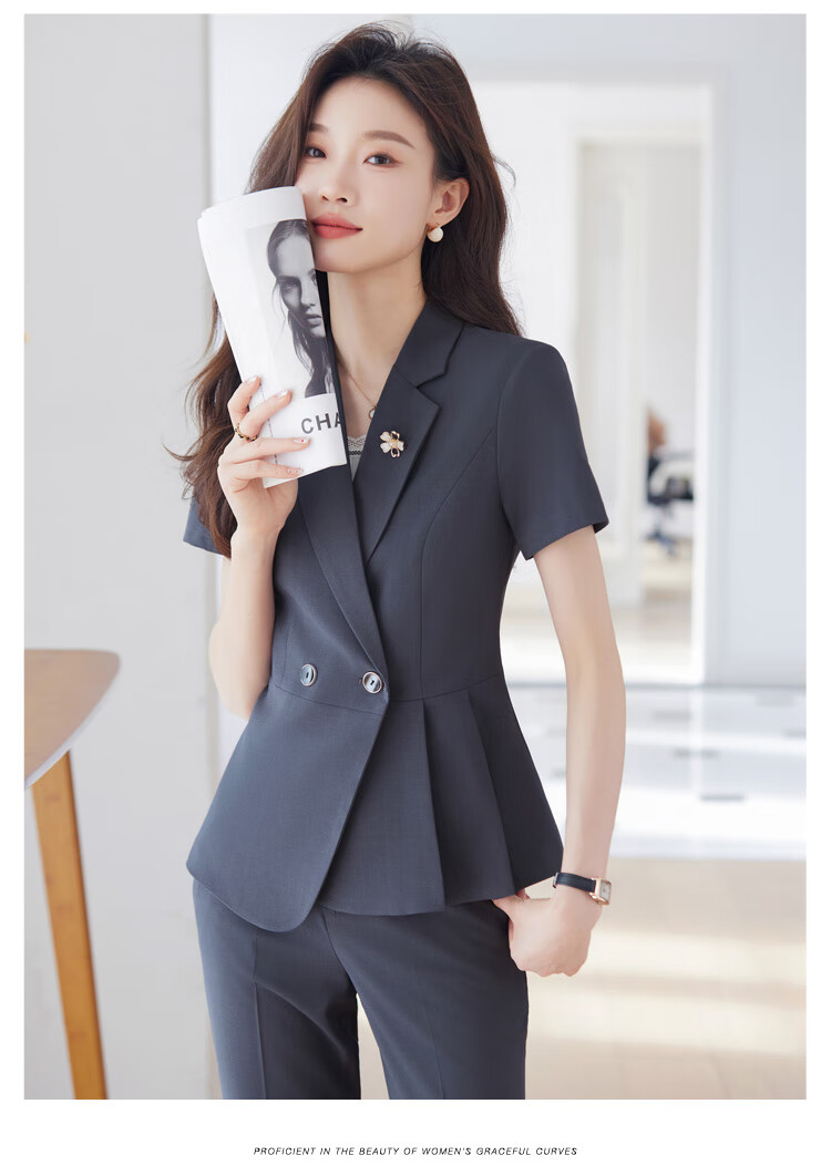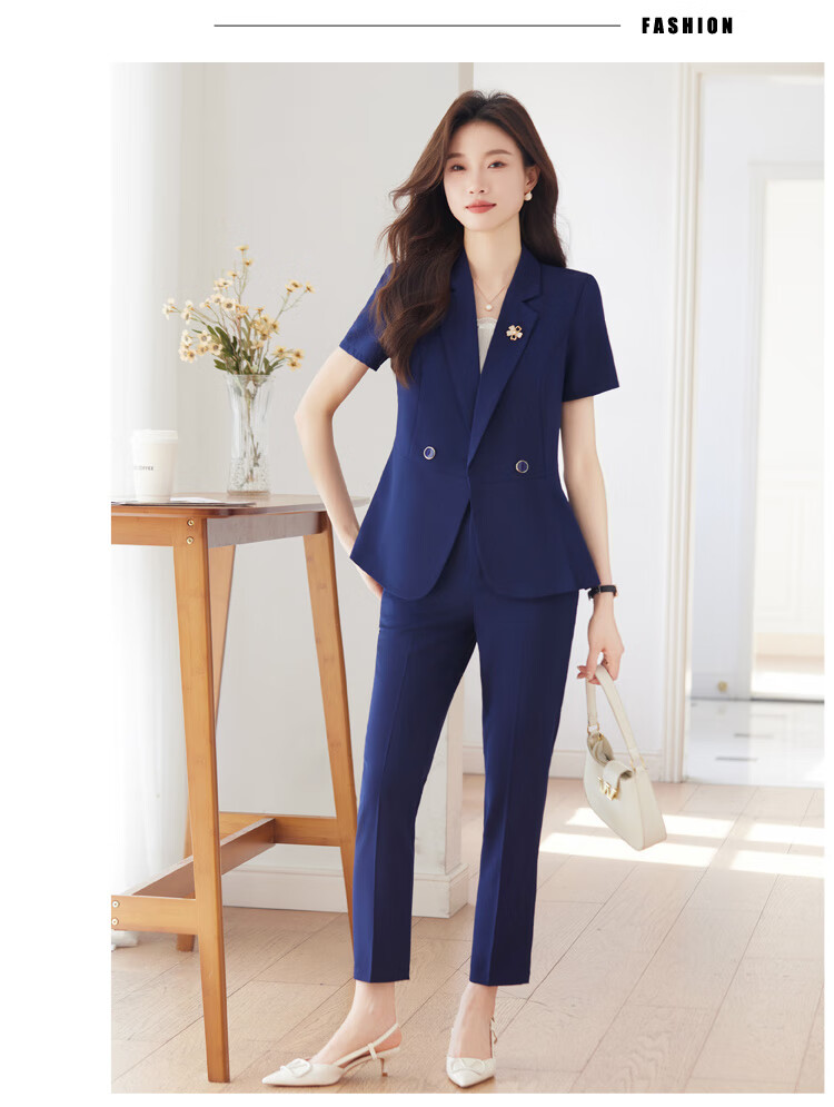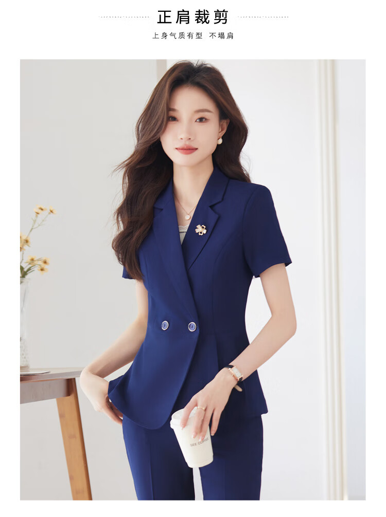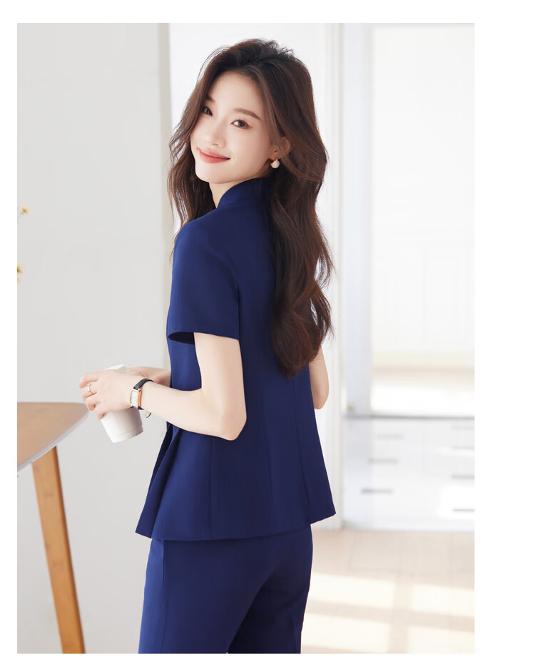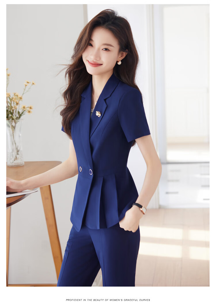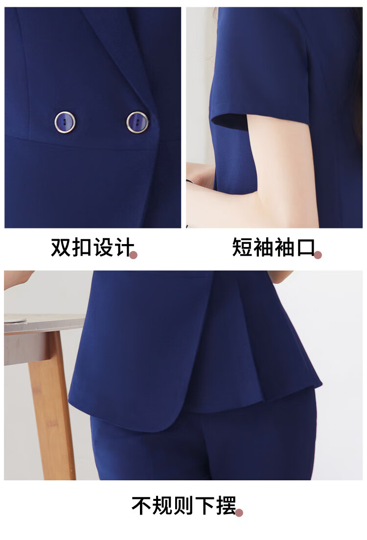 文秘职业装气质西装女套装时尚夏季售楼部接待珠宝店柜姐工作服春 蓝色 单件外套(Ki816) XL