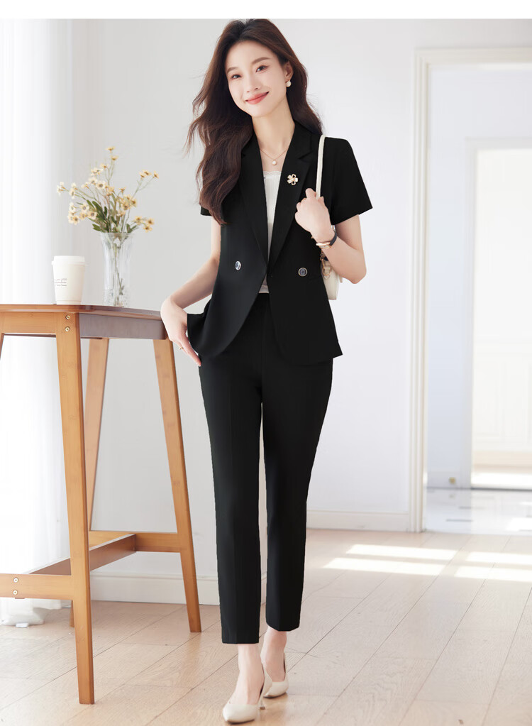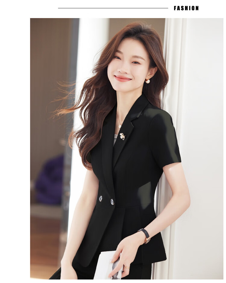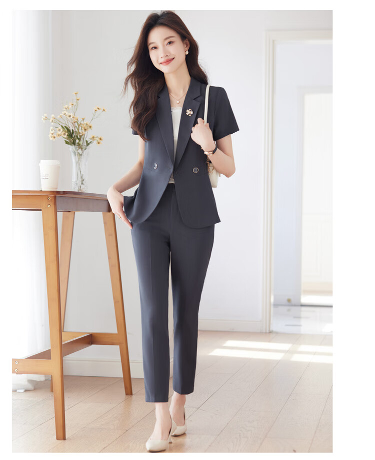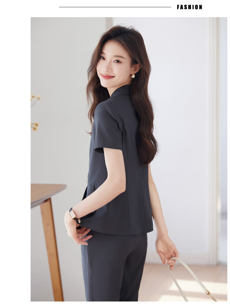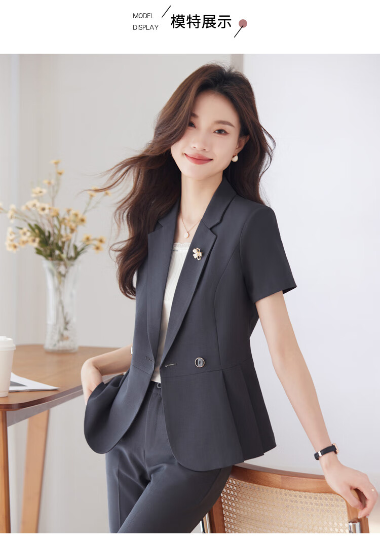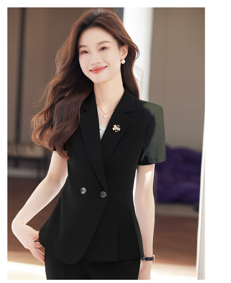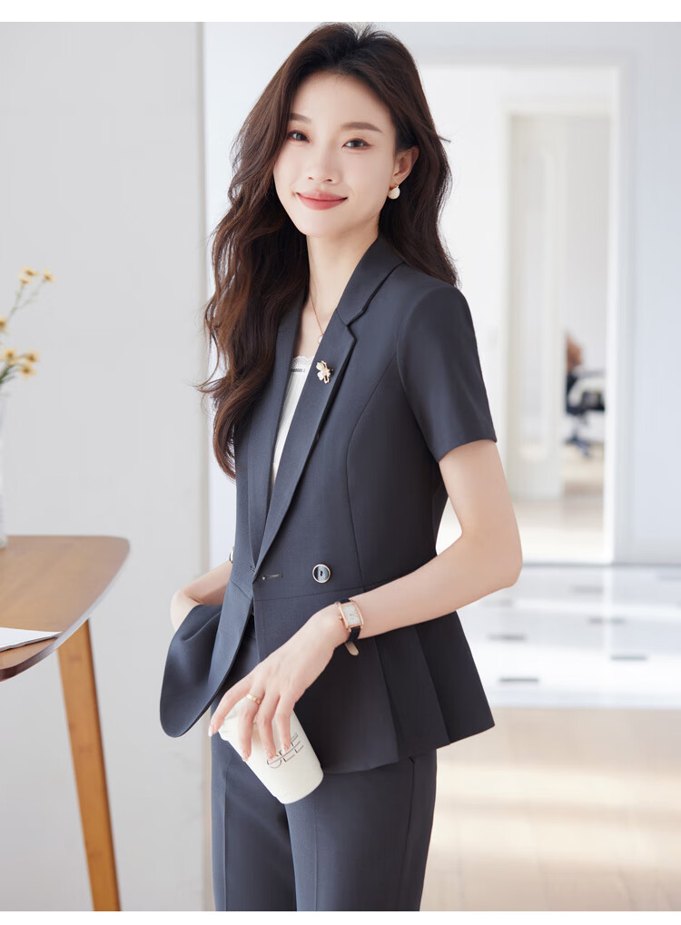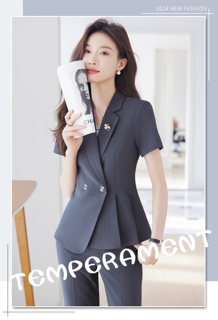文秘职业装气质西装女套装时尚夏季售楼部接待珠宝店柜姐工作服春 蓝色 单件外套(Ki816) XL