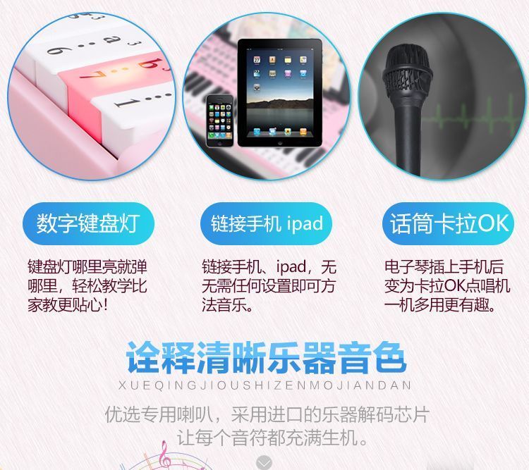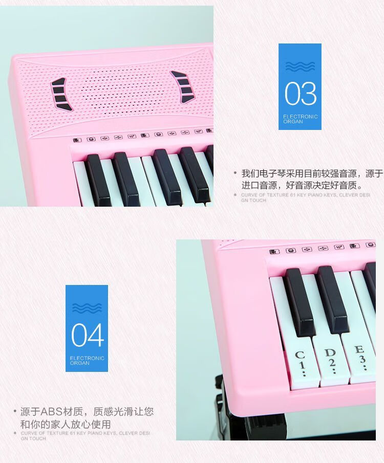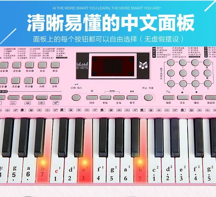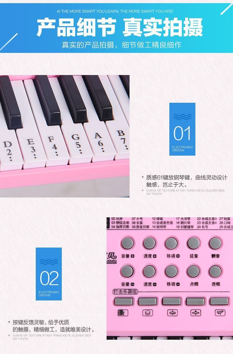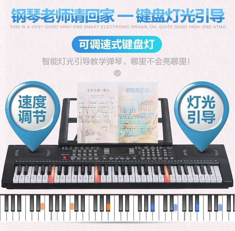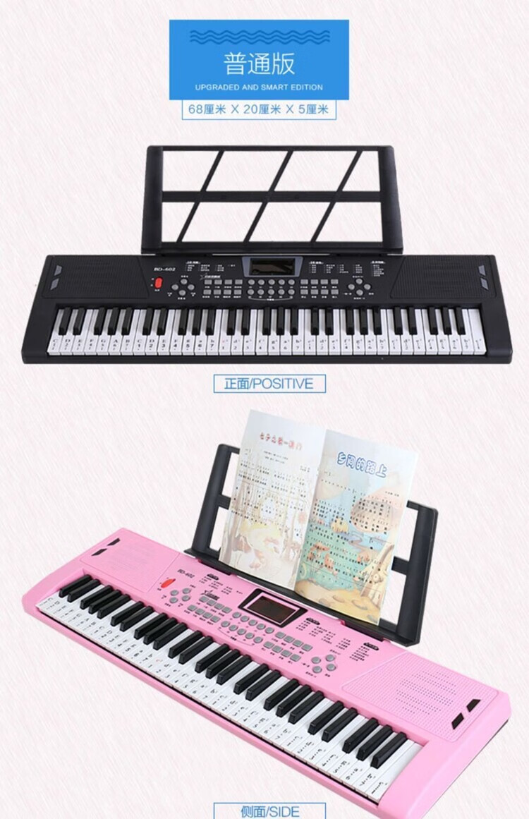 立始智能多功能61键儿童电子琴男女孩初学者宝宝入门弹钢琴玩具儿童琴 升级款+数字键盘 黑色+豪华大礼包