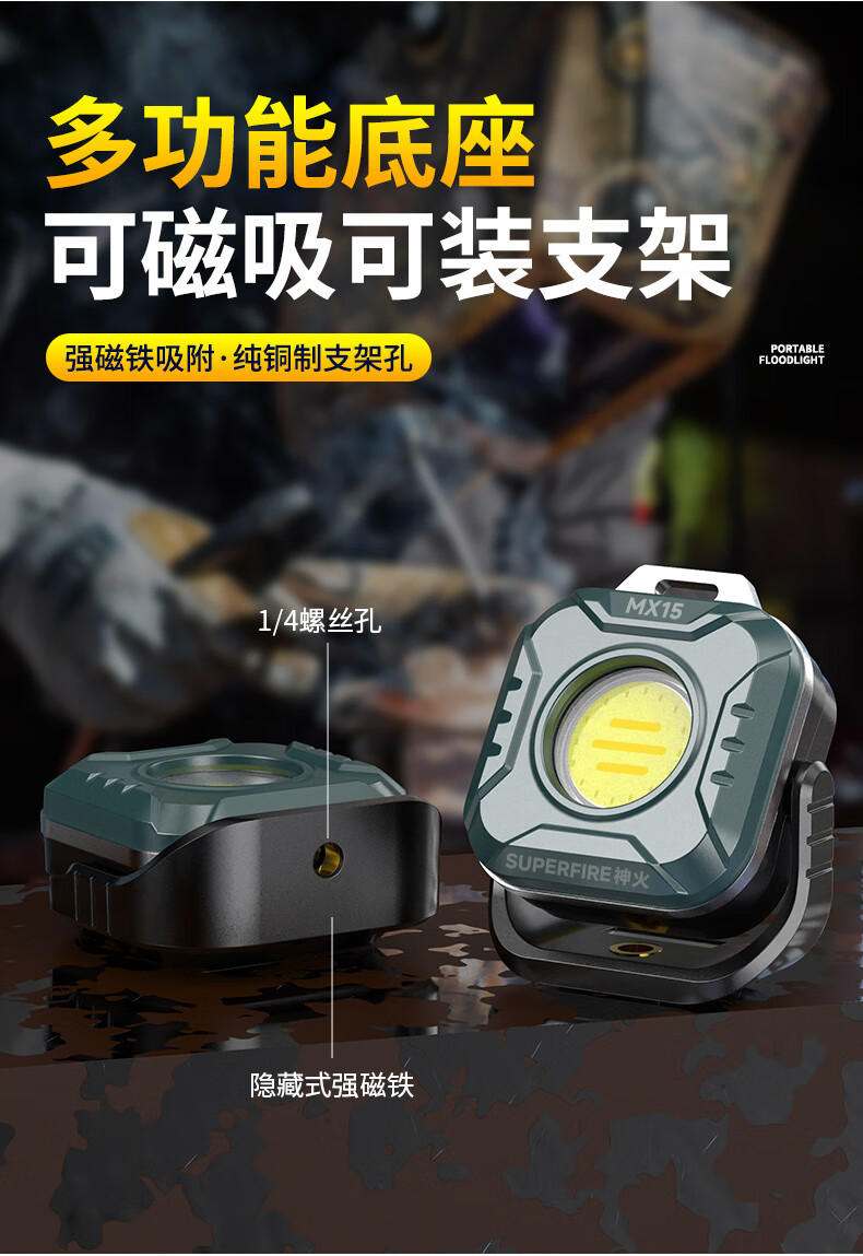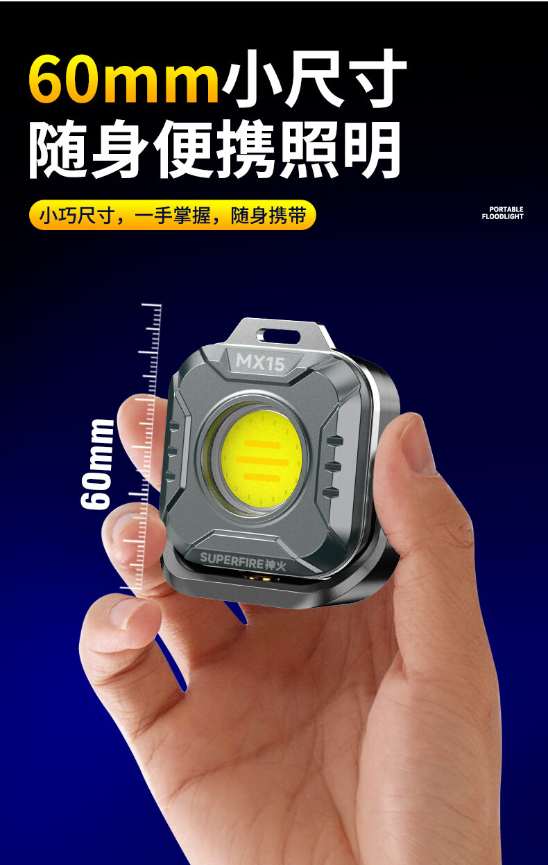 神火(SupFire)MX15 强光手电筒 磁铁应急灯钥匙扣便携充电工作灯汽修迷你投光灯