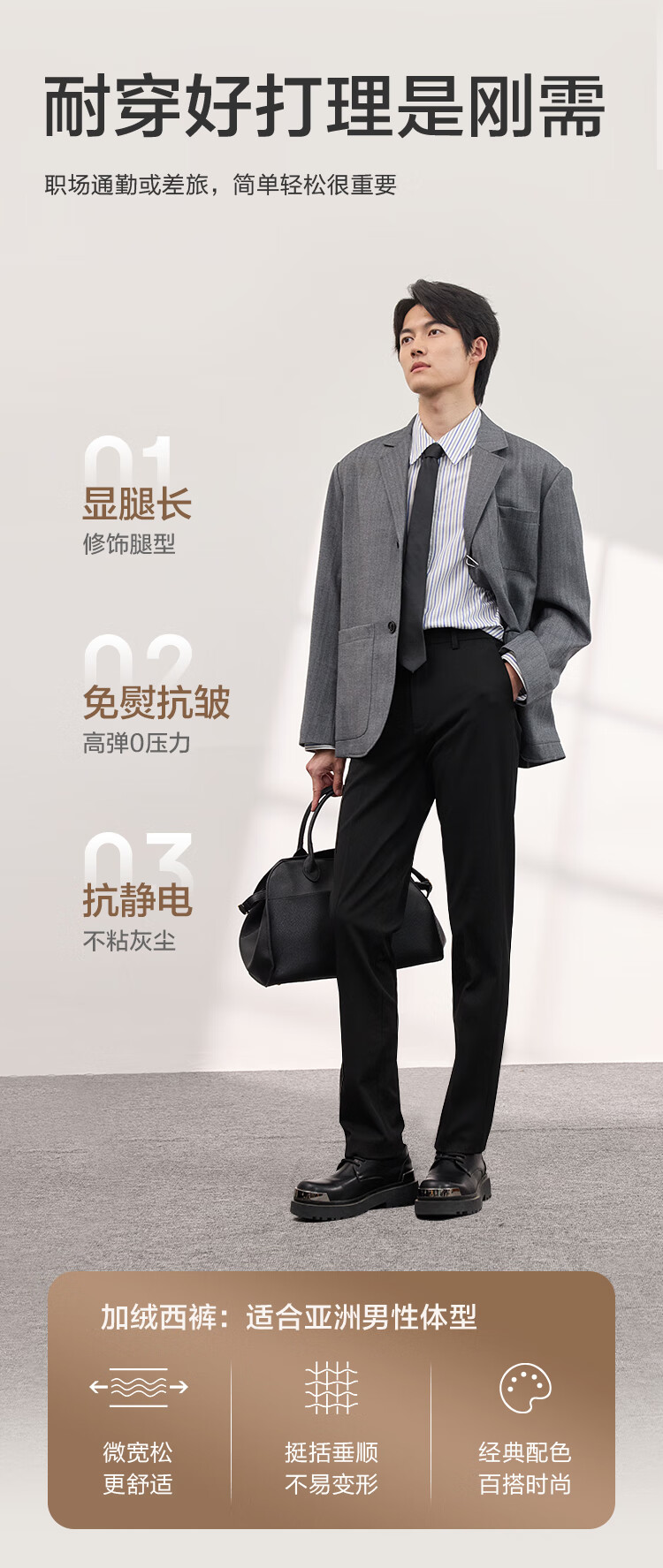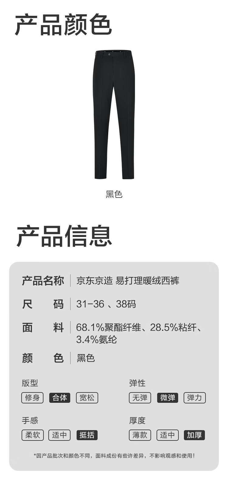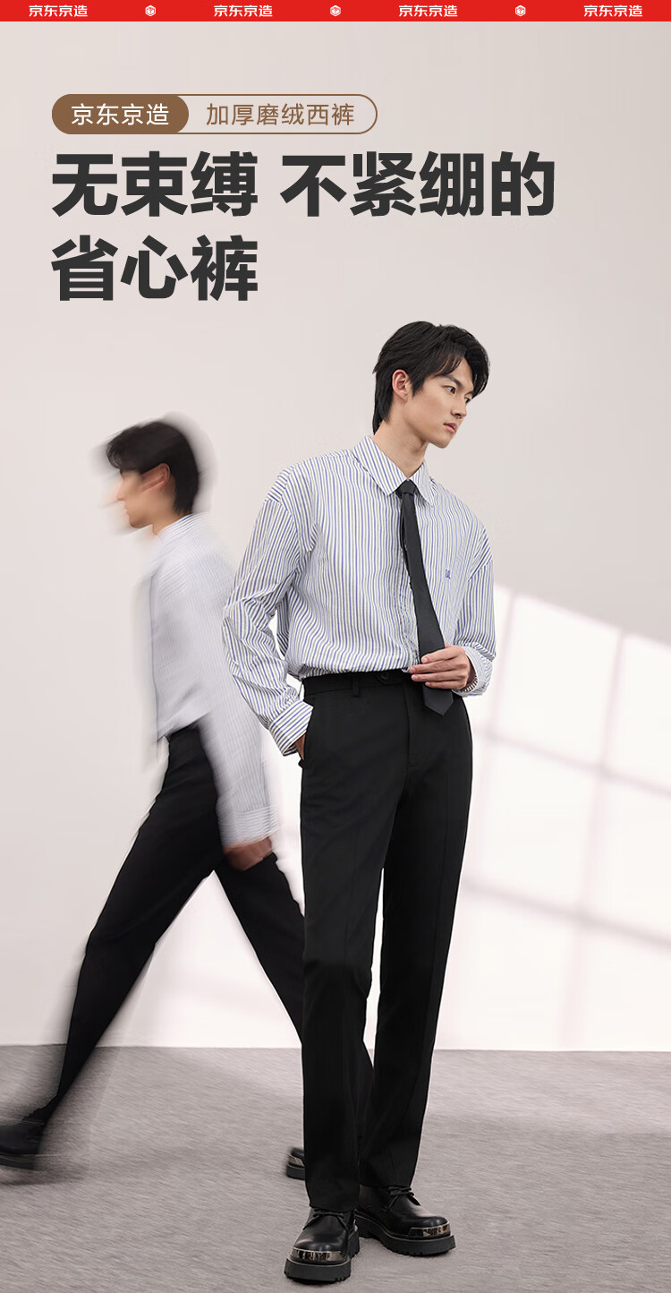 京东京造西裤男休闲裤直筒抗皱加绒西装装男士裤子礼物 黑36