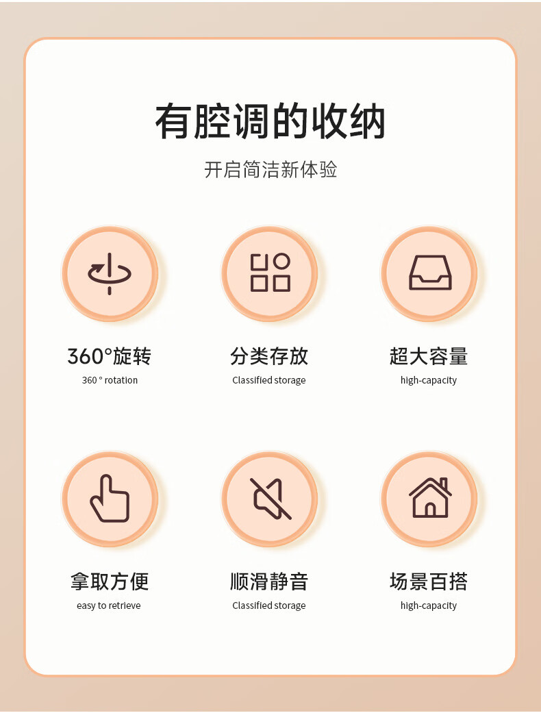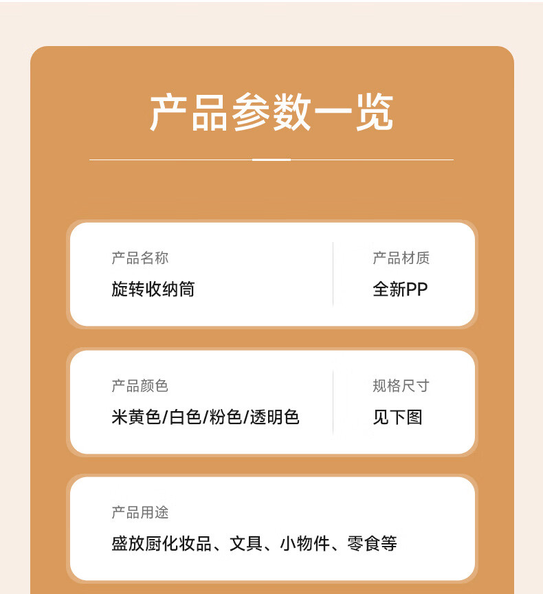 【宿舍必备】旋转笔盒化妆品收纳盒桌面高级感口红整理盒梳妆台 米黄色电镀升级款
