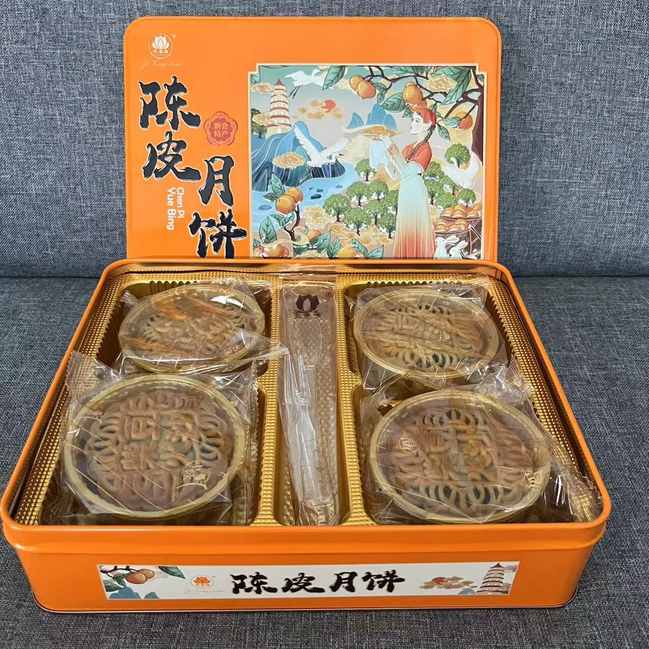 正宗新会特产睦州陈皮豆沙月饼传统非东园红豆饼五仁冬蓉广东江门 【筒装】陈皮豆沙月饼1筒125g*4