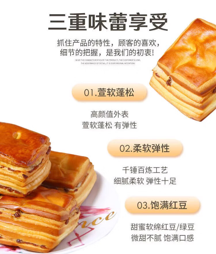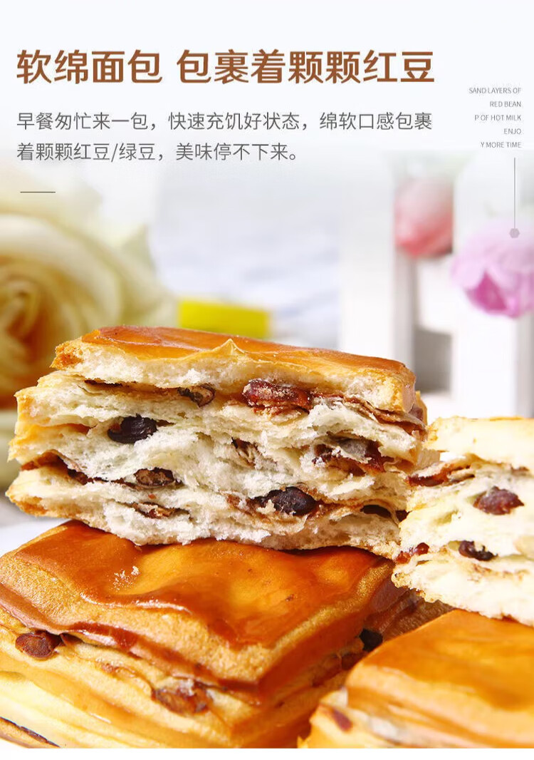 胖东来同款红豆手撕面包干丹麦面包夹心面包整箱营养健康早餐千层 丹麦红豆面包整箱【半斤】营养代餐