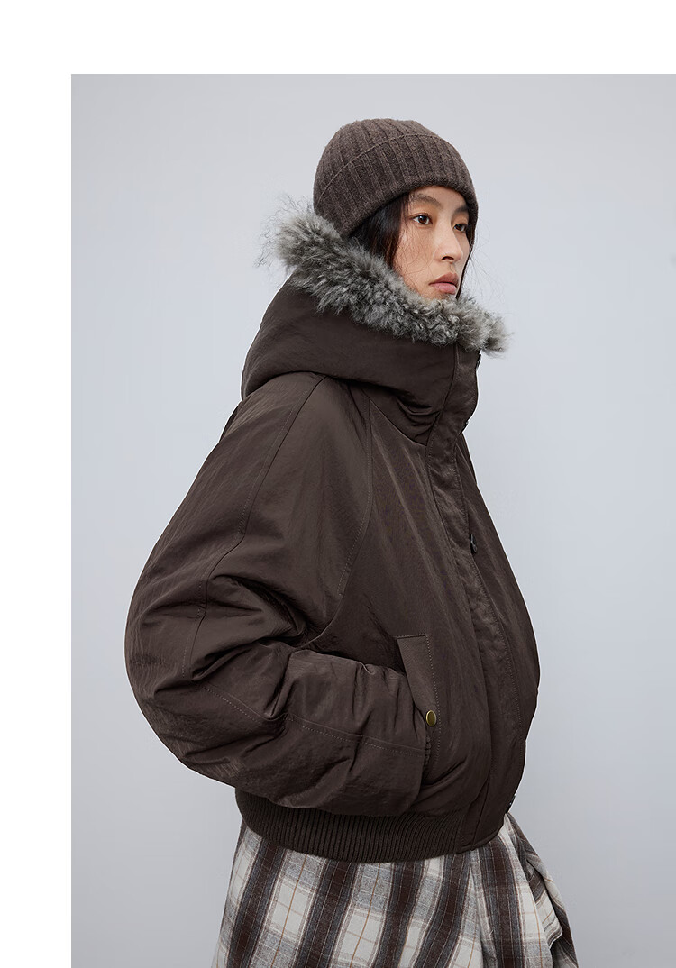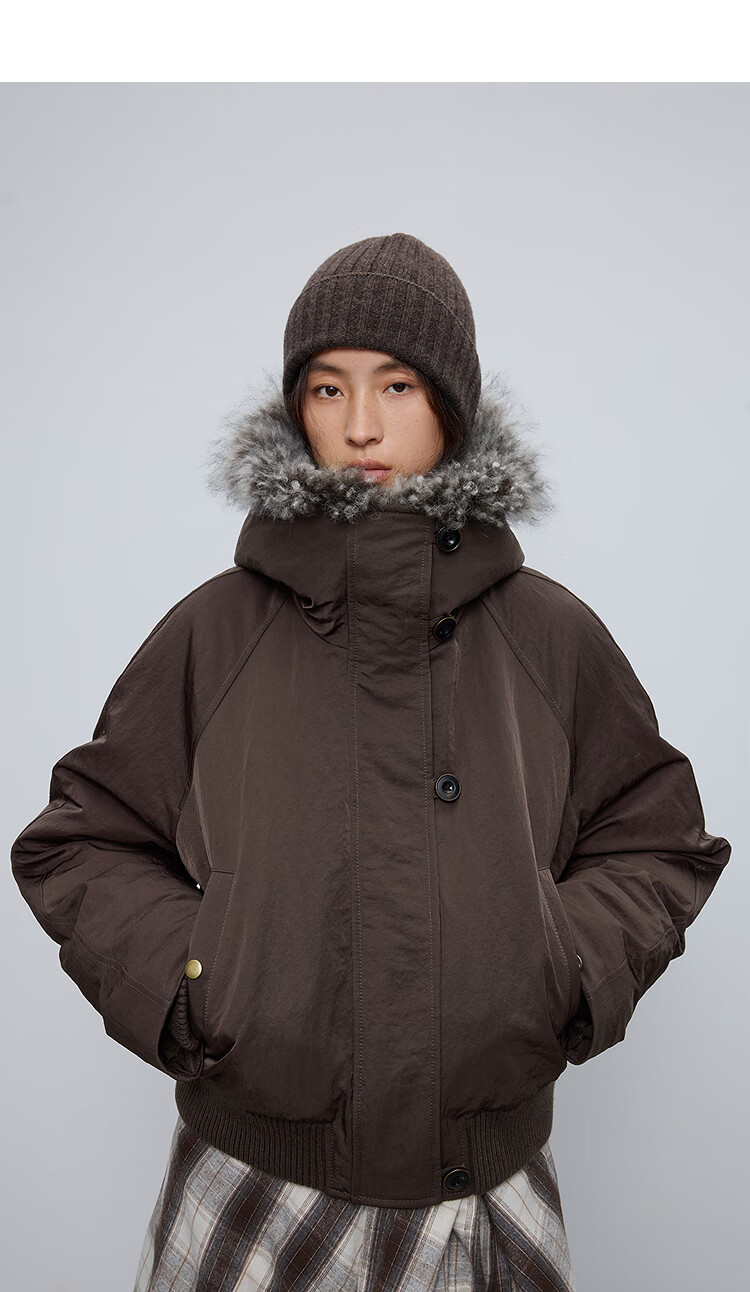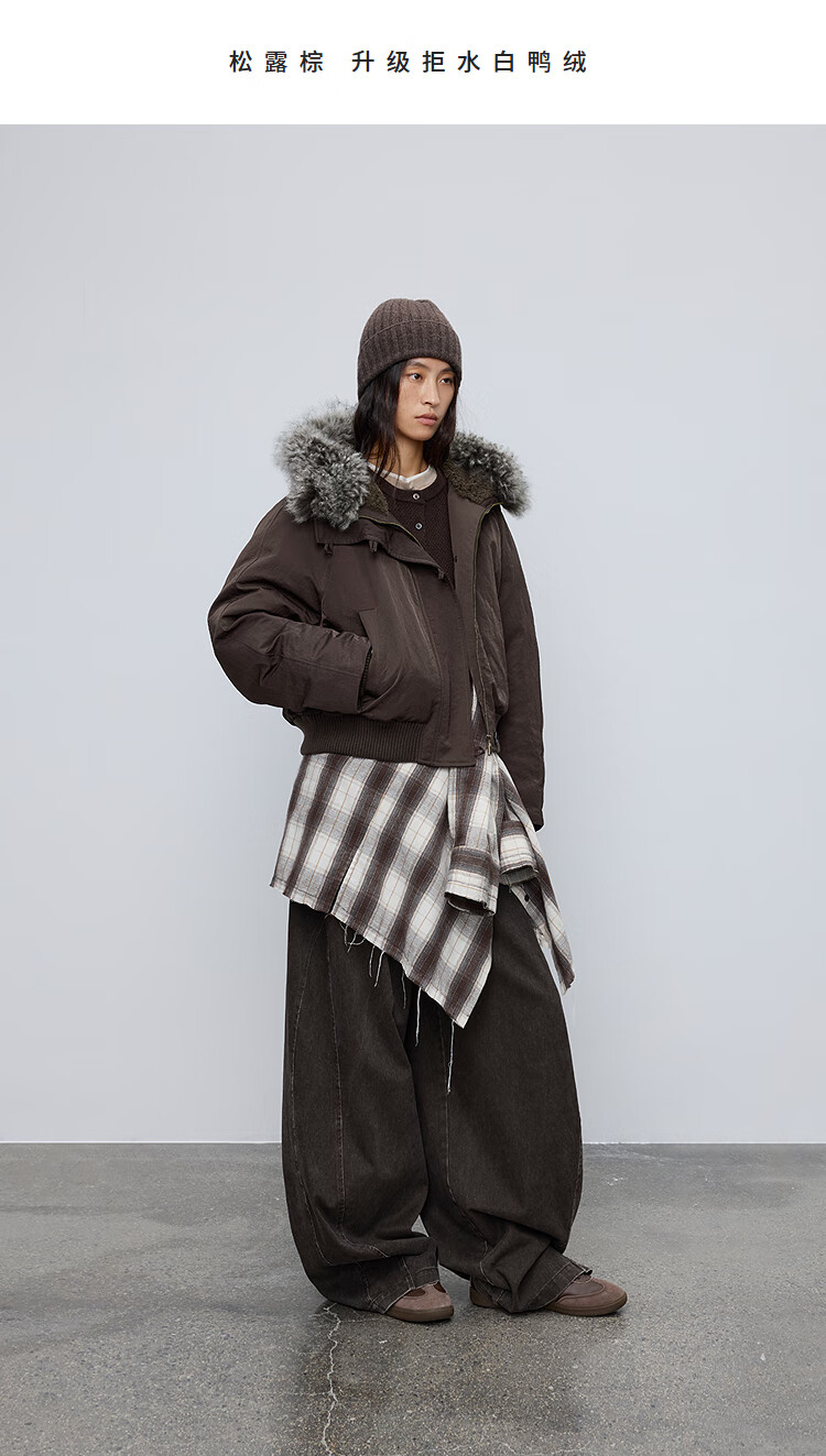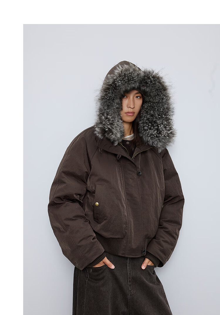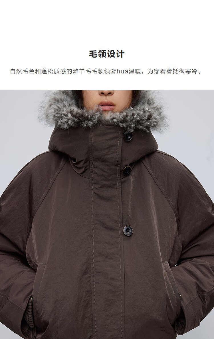 半圆女装[运动]2025秋冬休闲拼接松露棕滩羊毛领宽松短款羽绒服女 松露棕 升级拒水白鸭绒 S