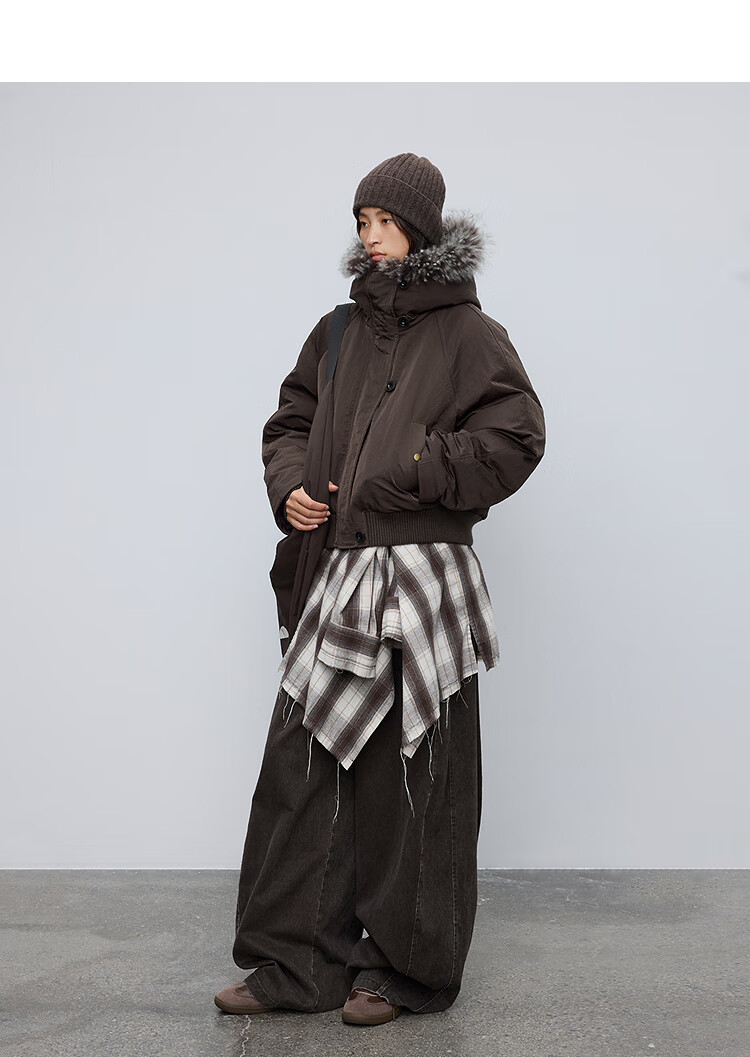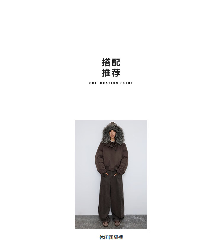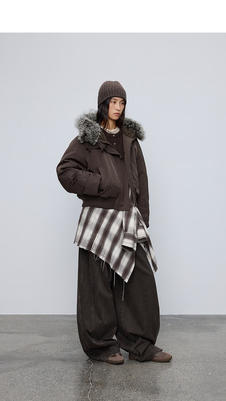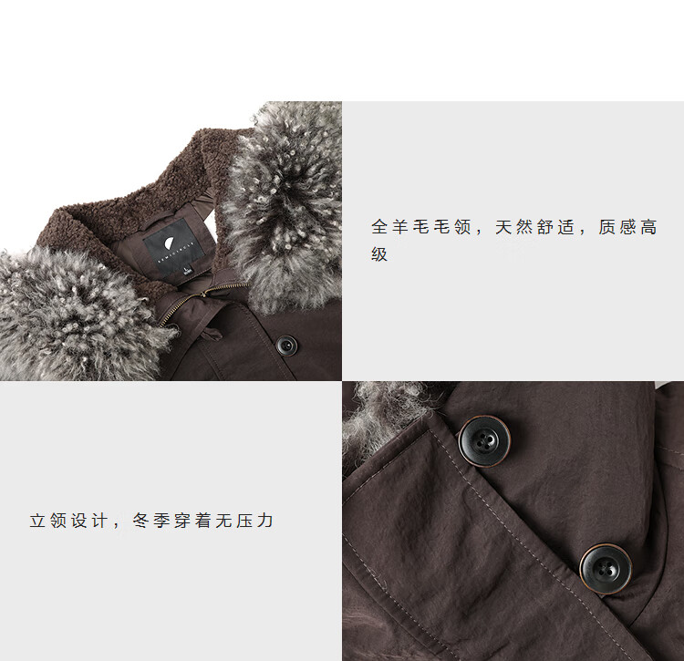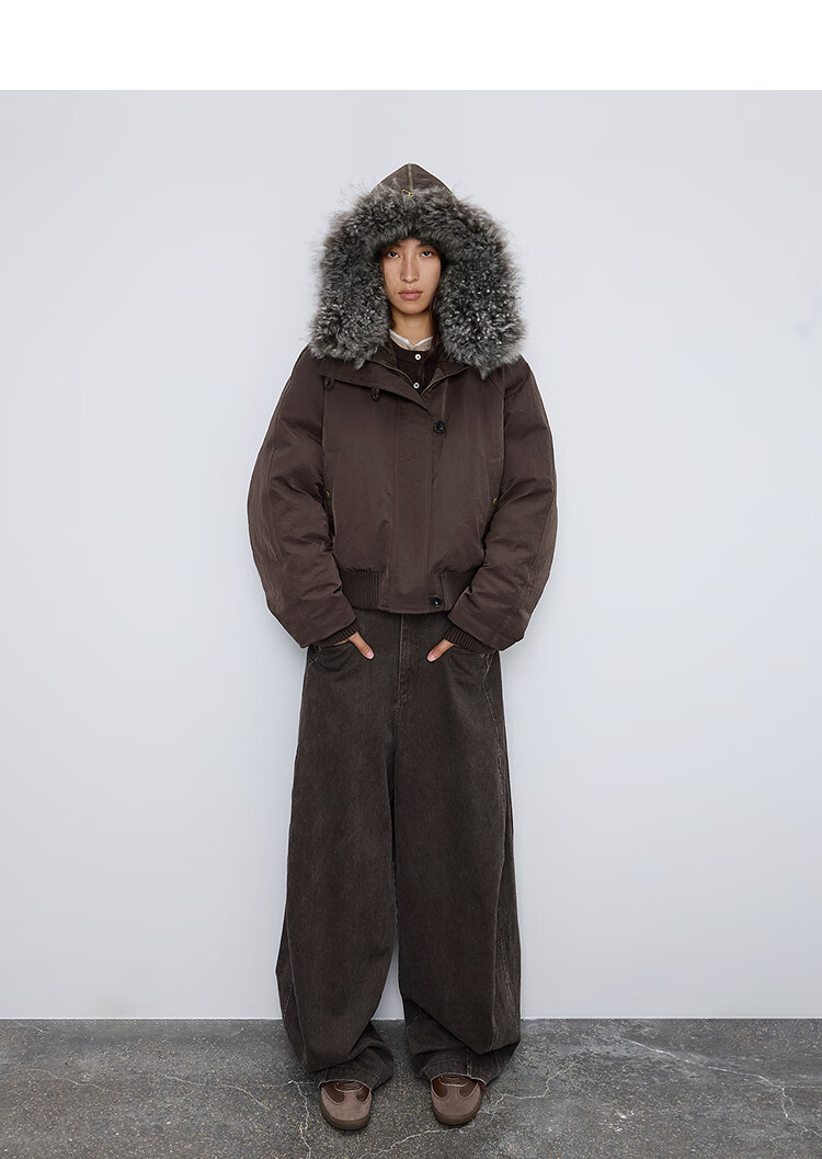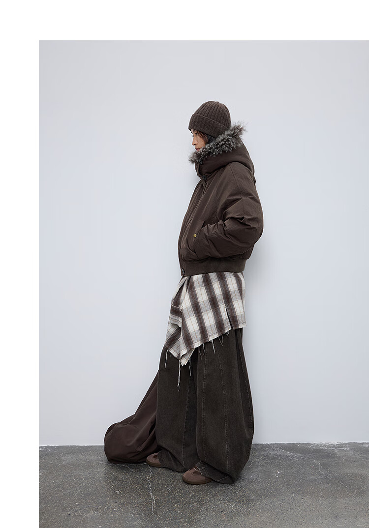 半圆女装[运动]2025秋冬休闲拼接松露棕滩羊毛领宽松短款羽绒服女 松露棕 升级拒水白鸭绒 S