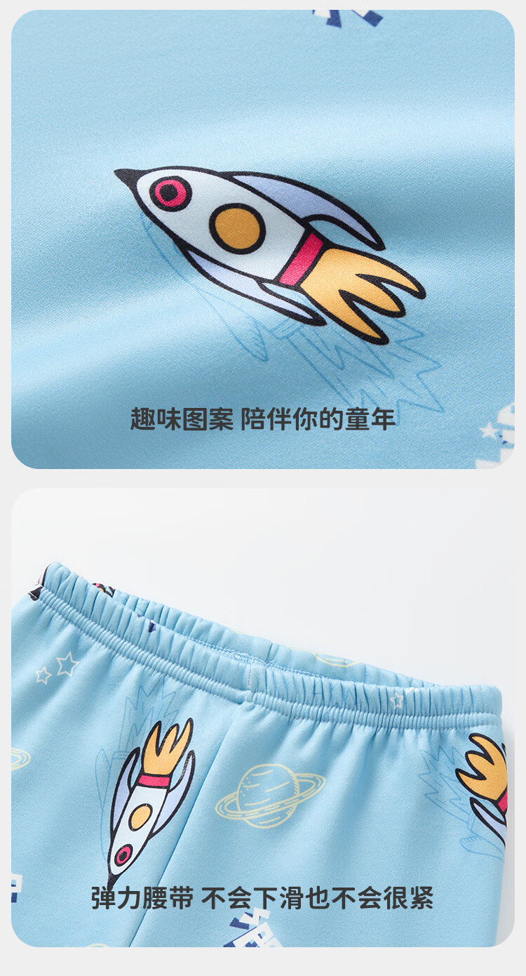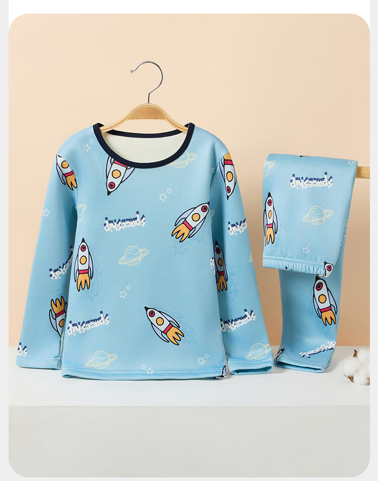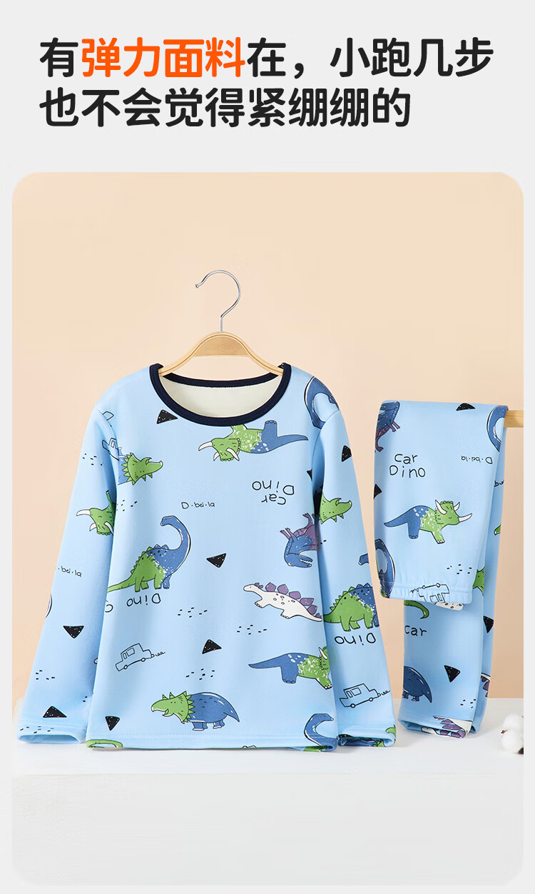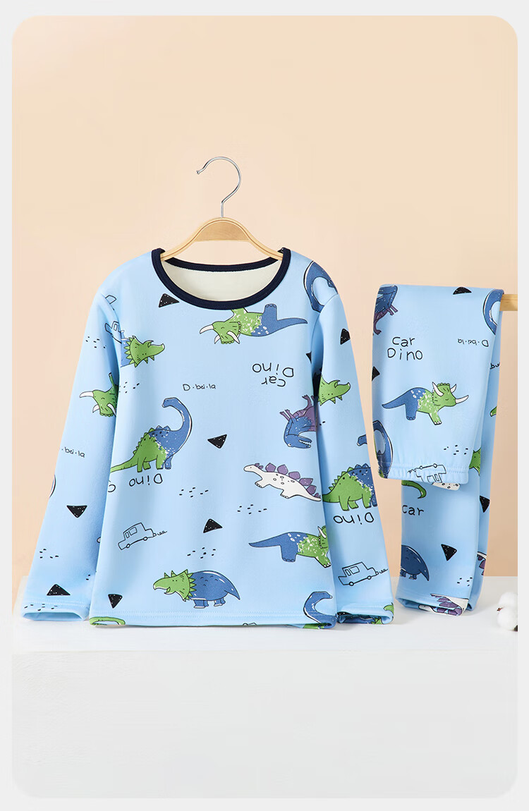 俞兆林(YUZHAOLIN)儿童保暖内衣套装冬季男童秋衣秋裤加绒加厚睡衣 蓝色恐龙