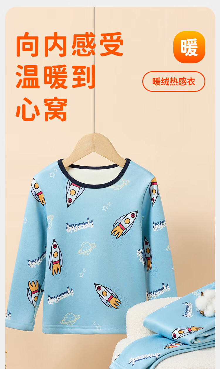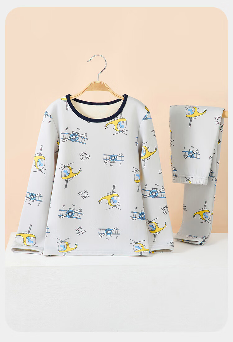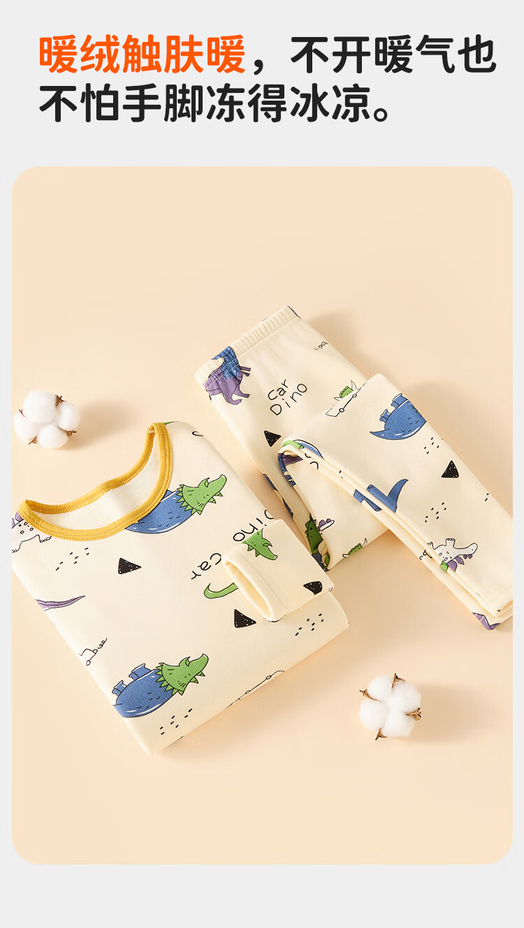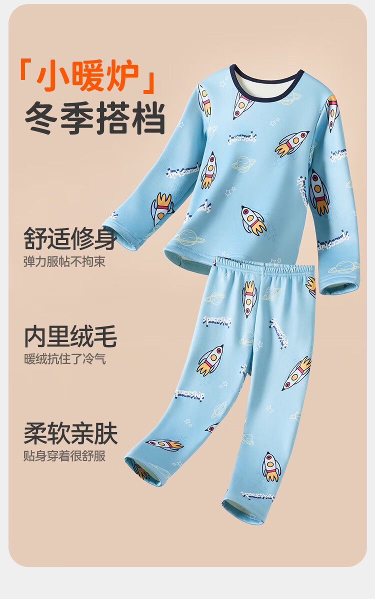 俞兆林(YUZHAOLIN)儿童保暖内衣套装冬季男童秋衣秋裤加绒加厚睡衣 蓝色恐龙
