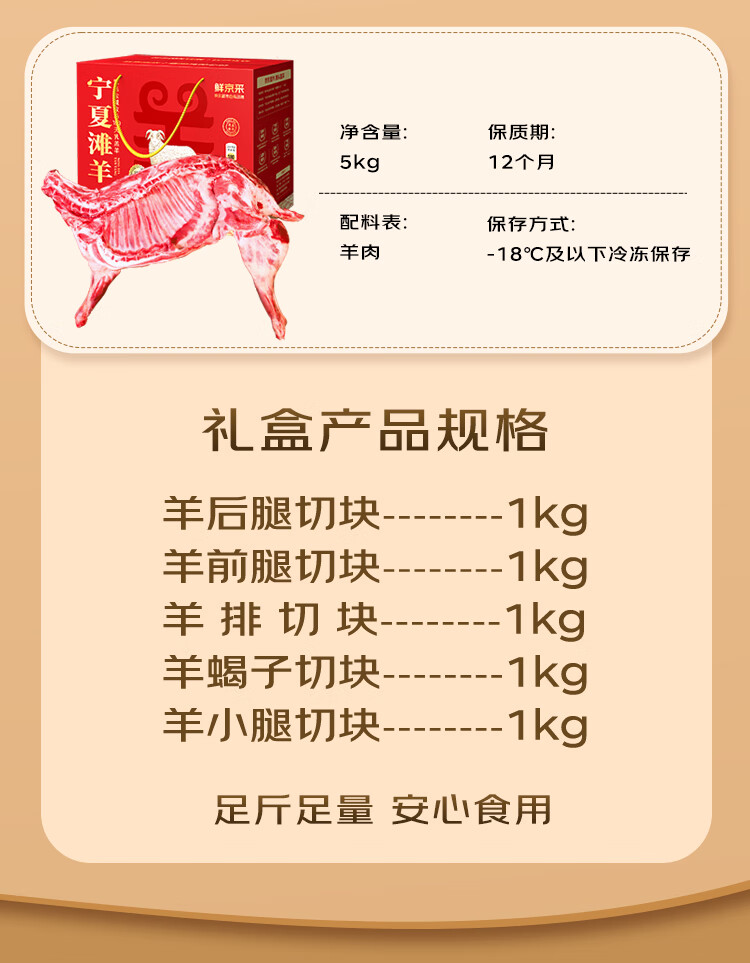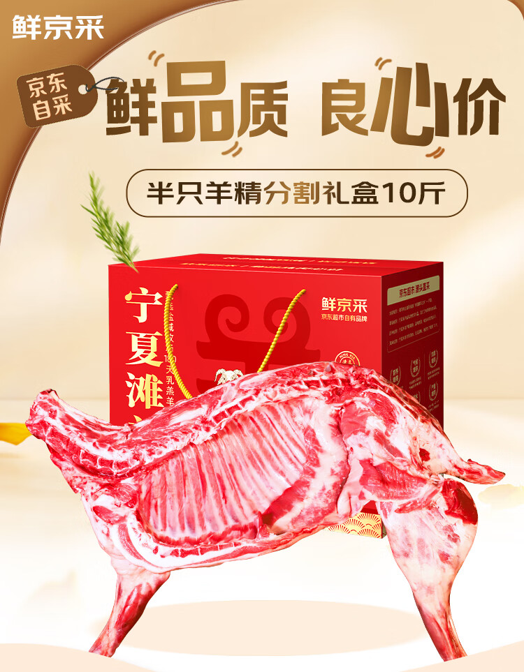 鲜京采【年货礼盒】宁夏滩羊肉生鲜半只羊精分割净重10斤清真 源头直发