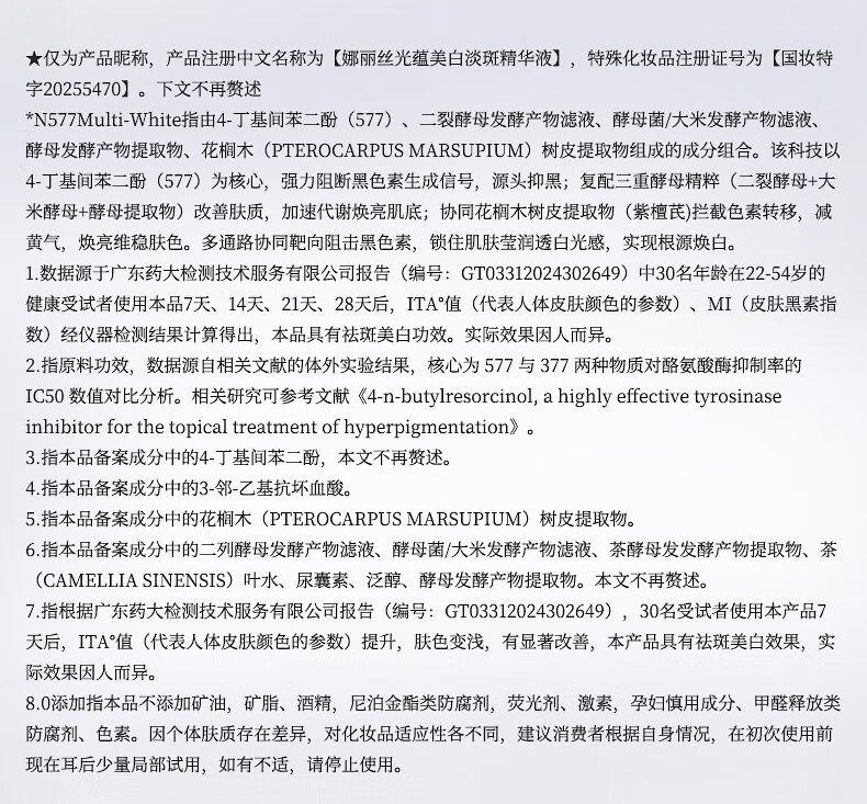 娜丽丝(Naris up)577美白淡斑精华液1.5ml提亮去黄精华水便携旅行装熬夜敏感肌适用
