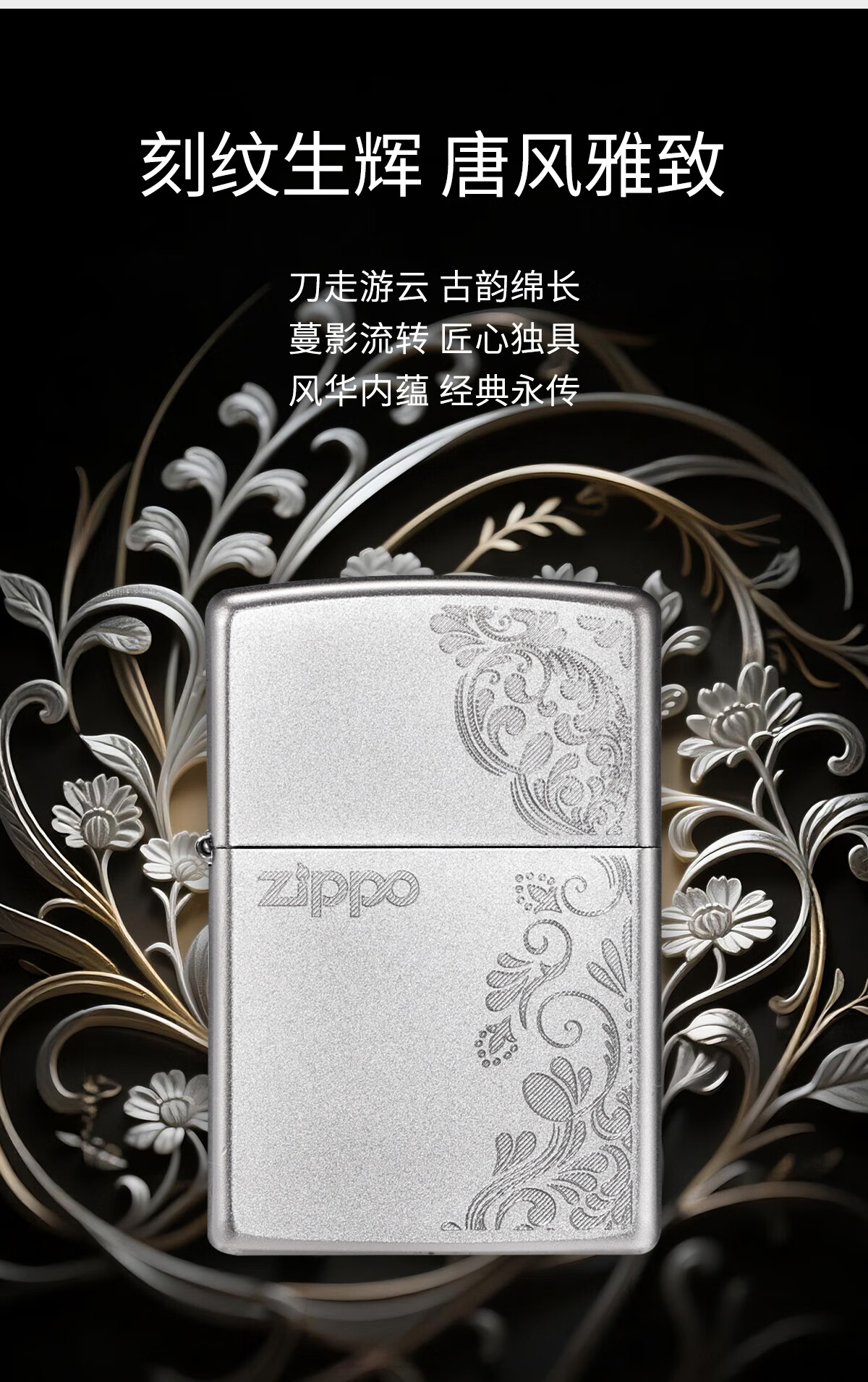 ZIPPO打火机古韵唐草繁花zippo正品芝宝煤油防风火机 男士生日礼物男生 礼盒套装【含油+礼盒+礼袋】