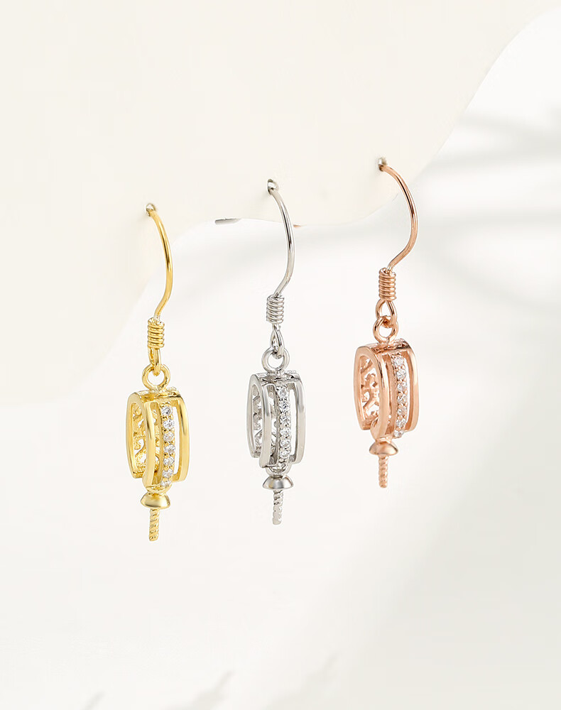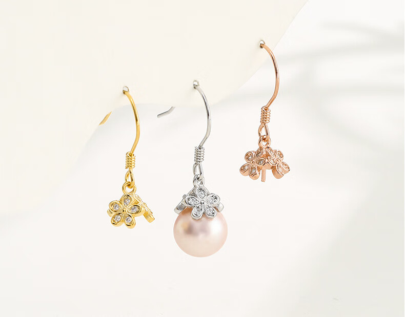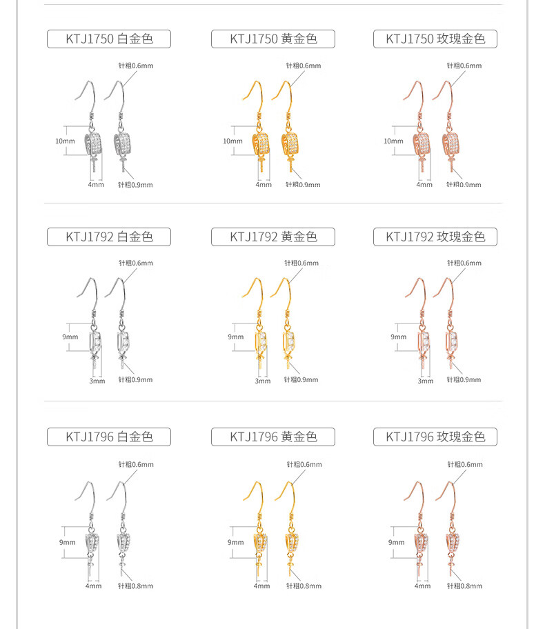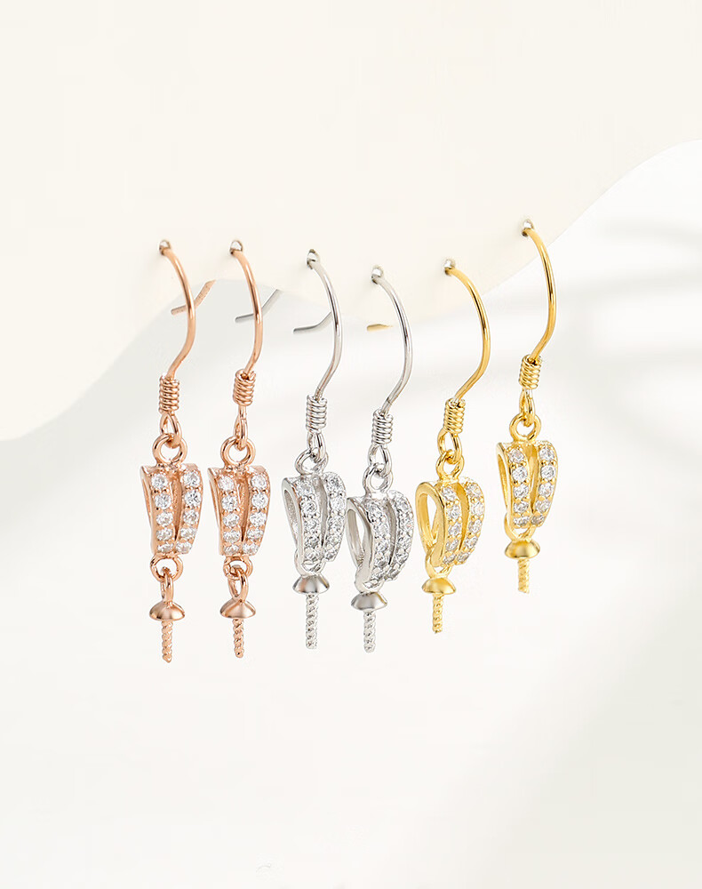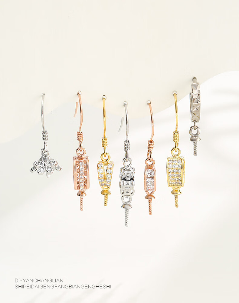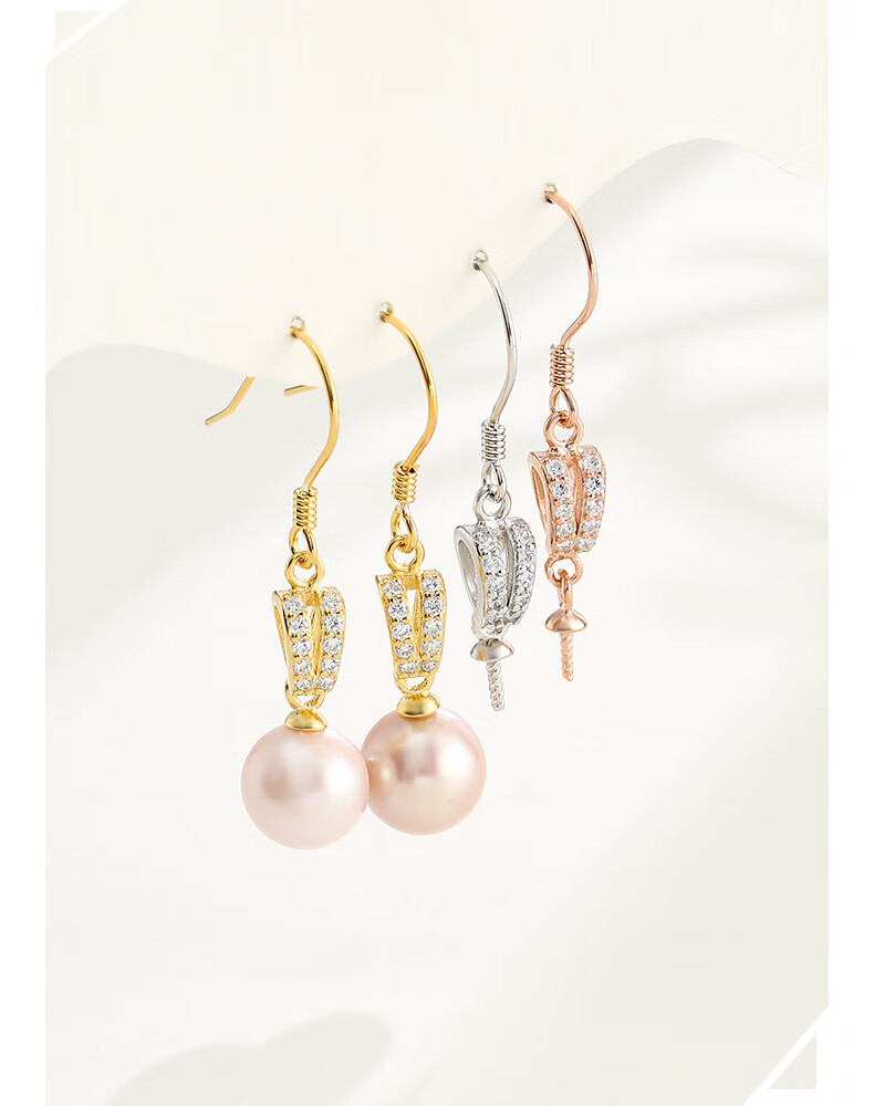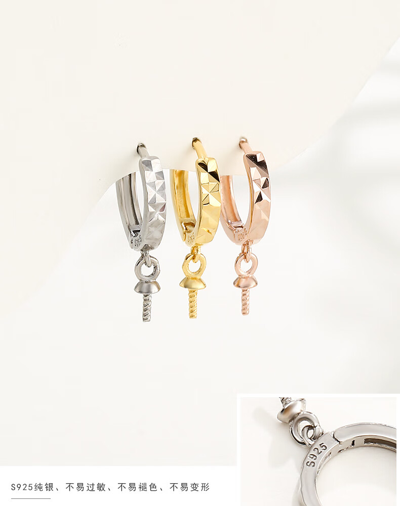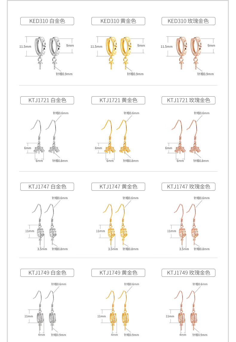 京佳胖东来同款耳钩珍珠diy耳环空托日韩銀18K耳坠空托镶嵌蜜蜡翡翠耳 KED310-白金色{石位圆珠5-10mm}