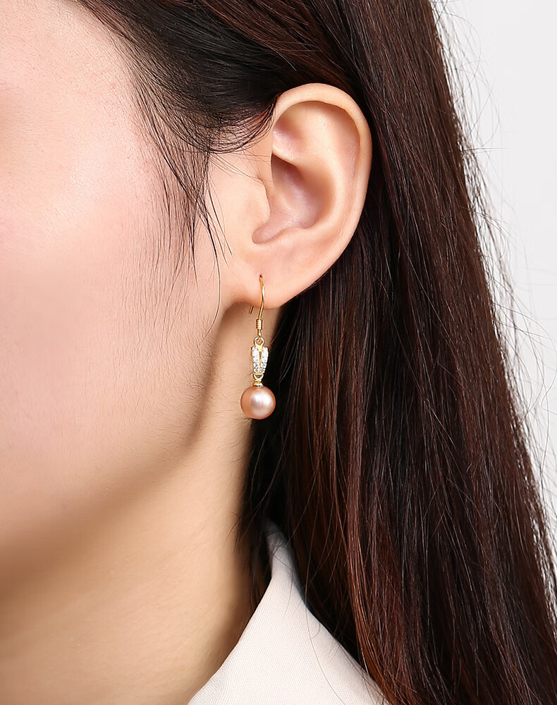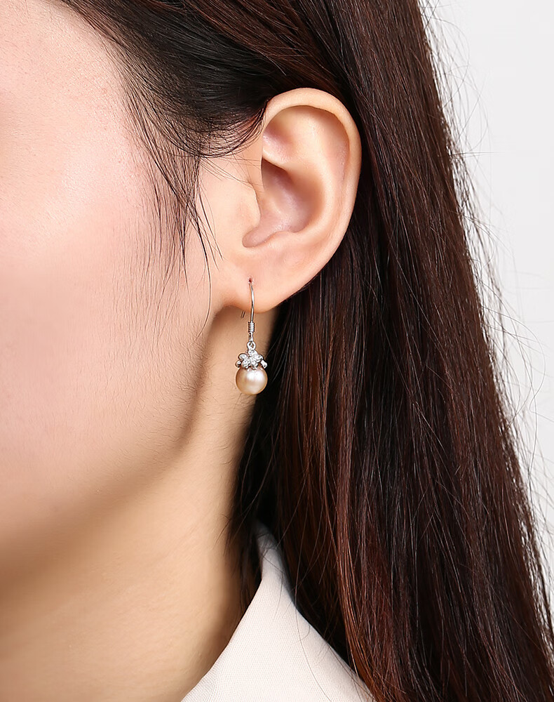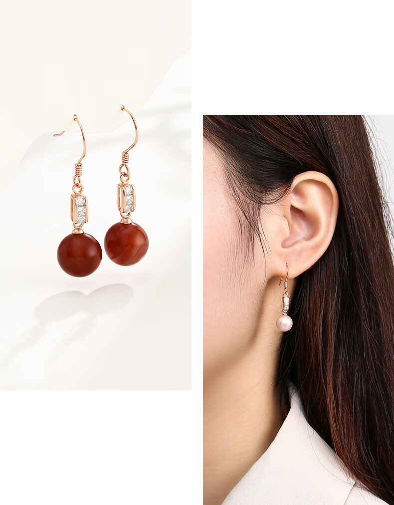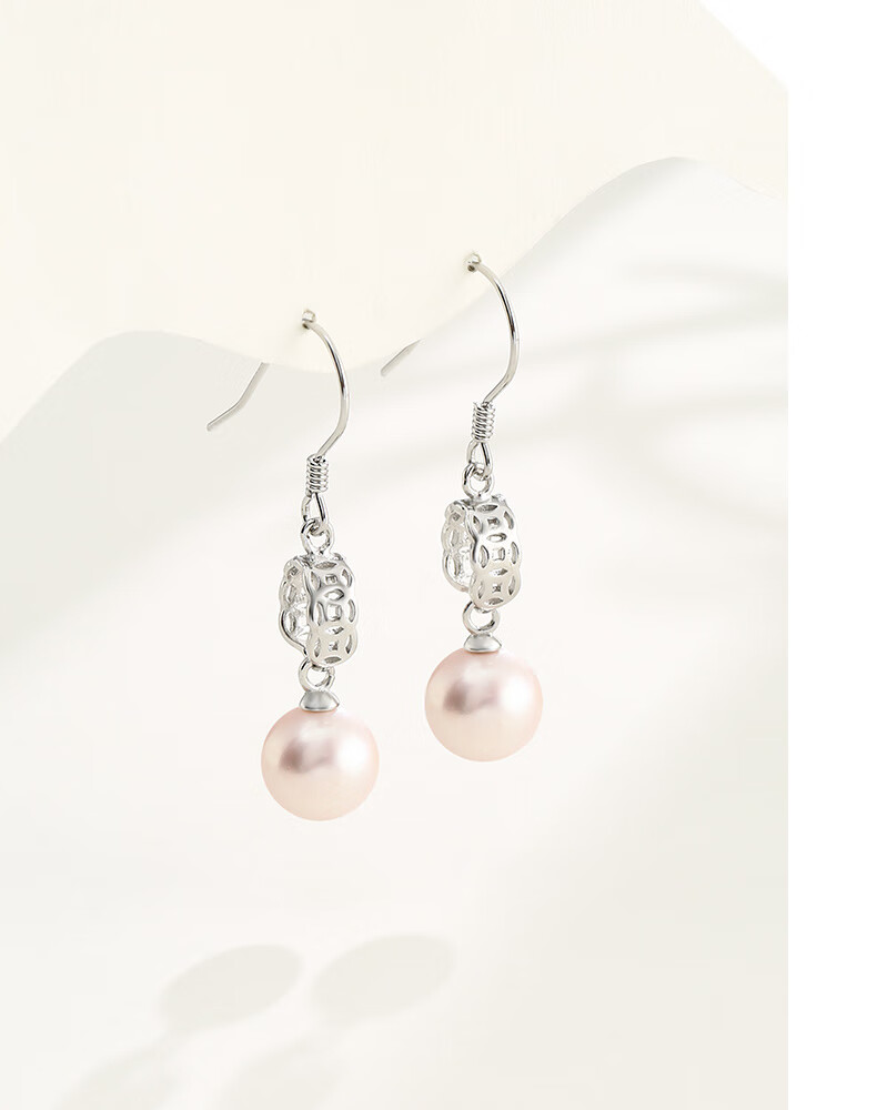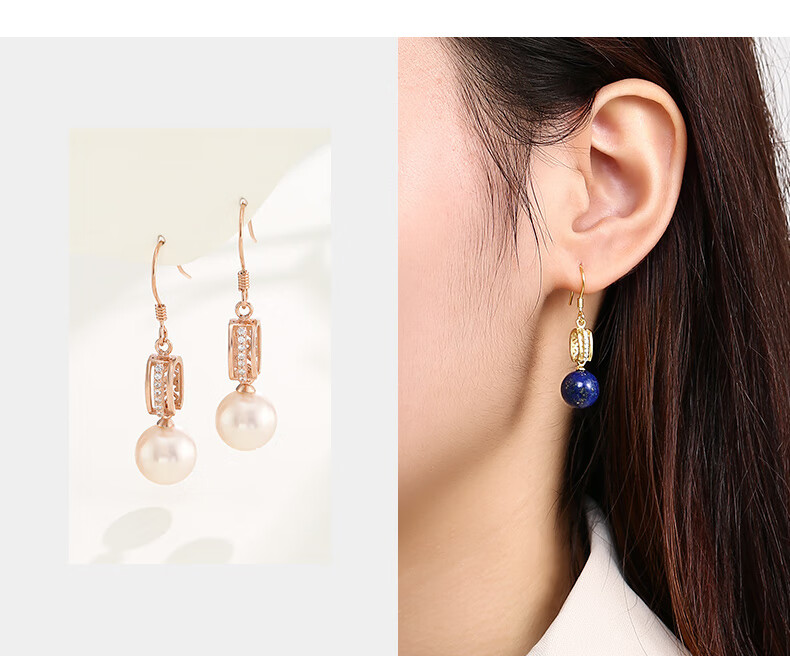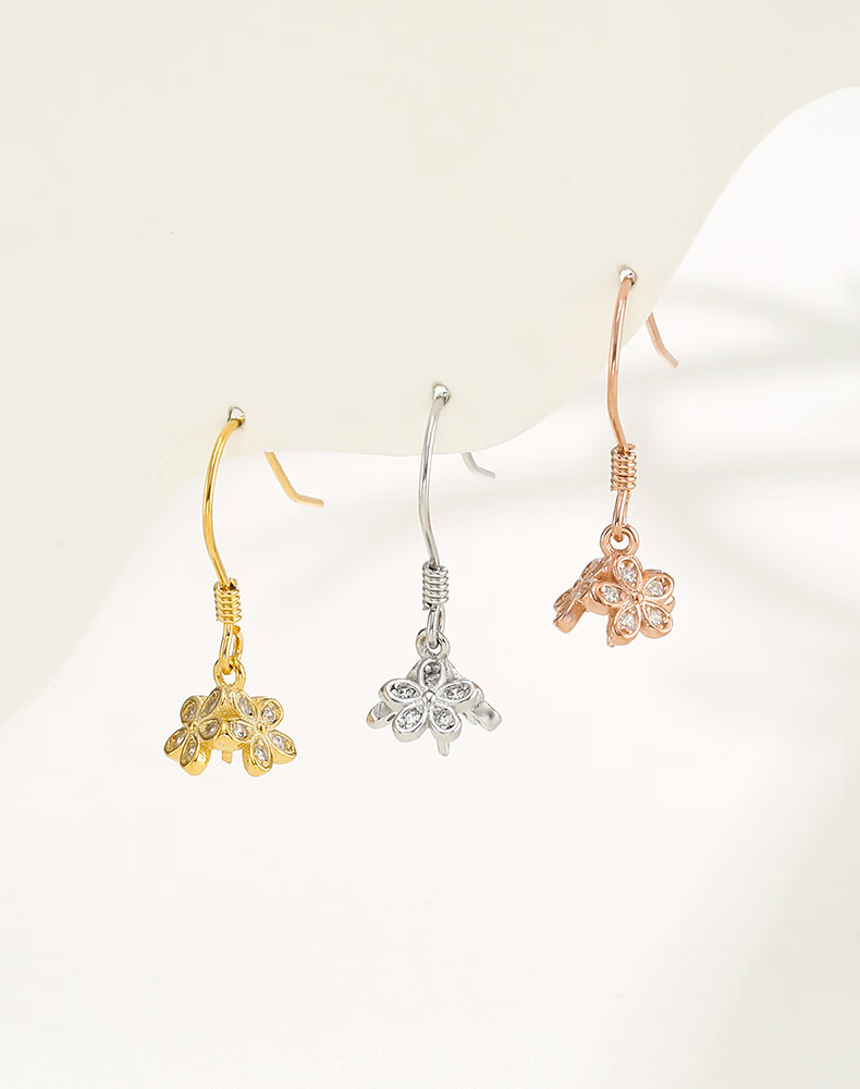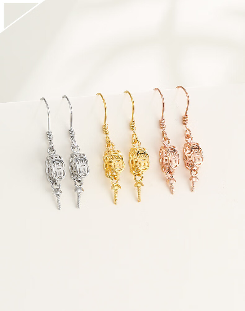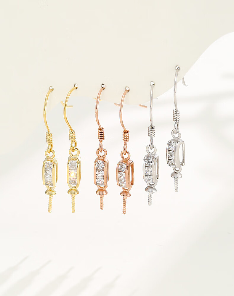 京佳胖东来同款耳钩珍珠diy耳环空托日韩銀18K耳坠空托镶嵌蜜蜡翡翠耳 KED310-白金色{石位圆珠5-10mm}