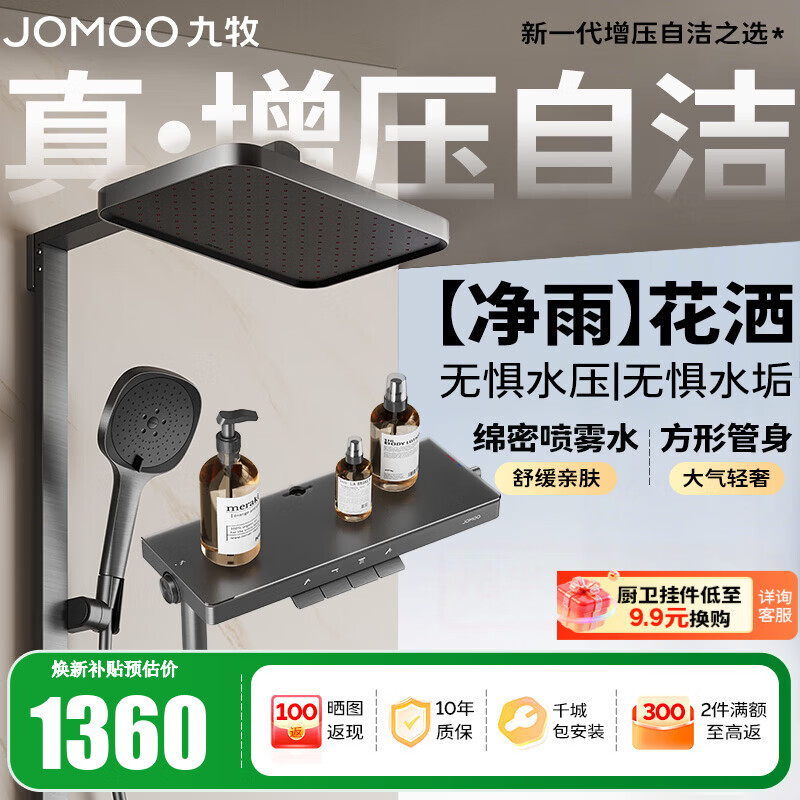 九牧(JOMOO)花洒全套淋浴套装琴键置物增压自清洁净雨淋浴器36694 枪灰