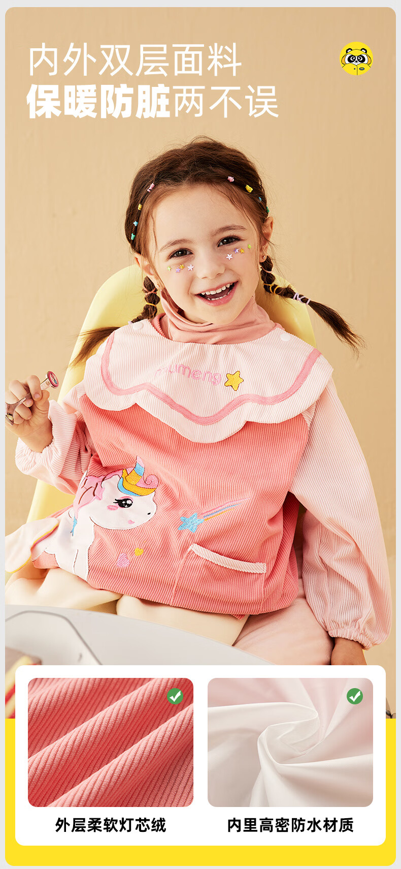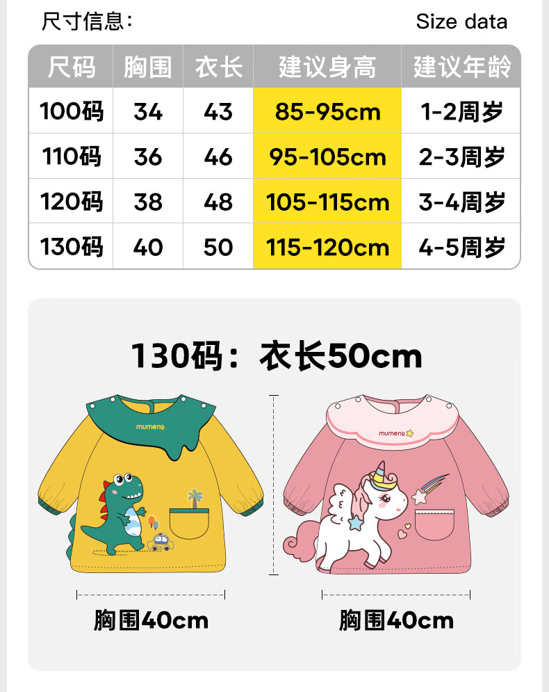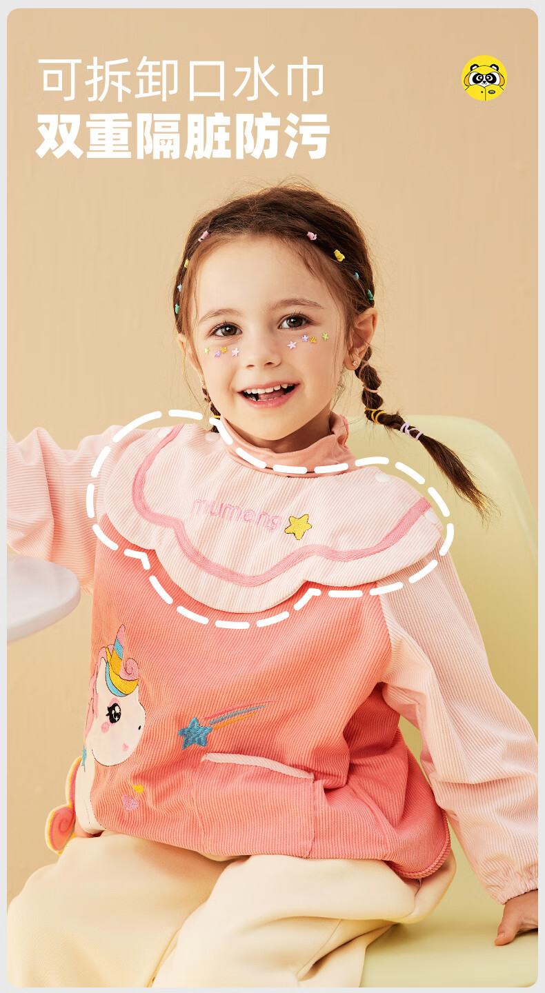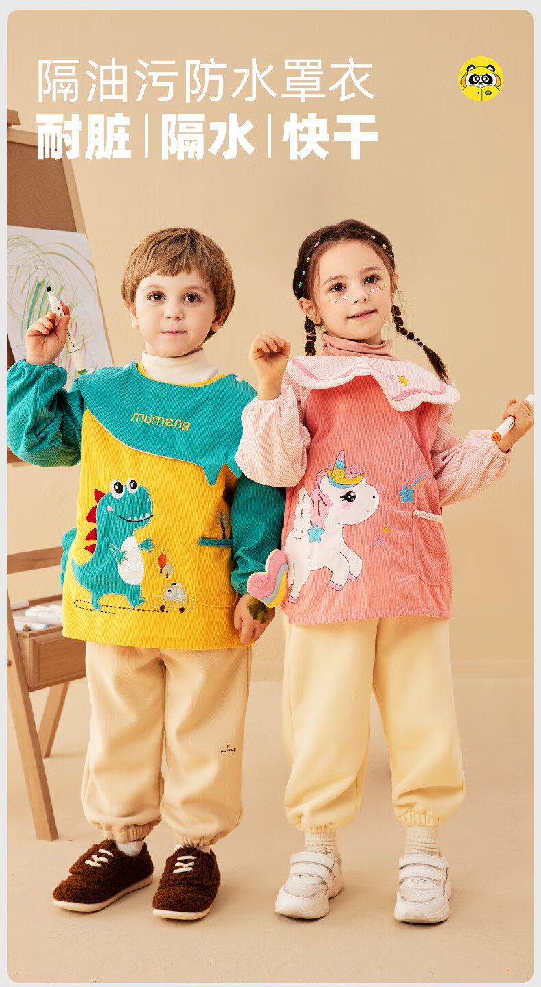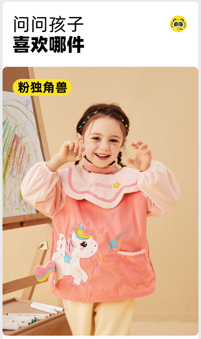 牧萌儿童罩衣婴儿吃饭围兜防溅衣防水防脏秋冬婴儿反穿衣 独角兽 M码