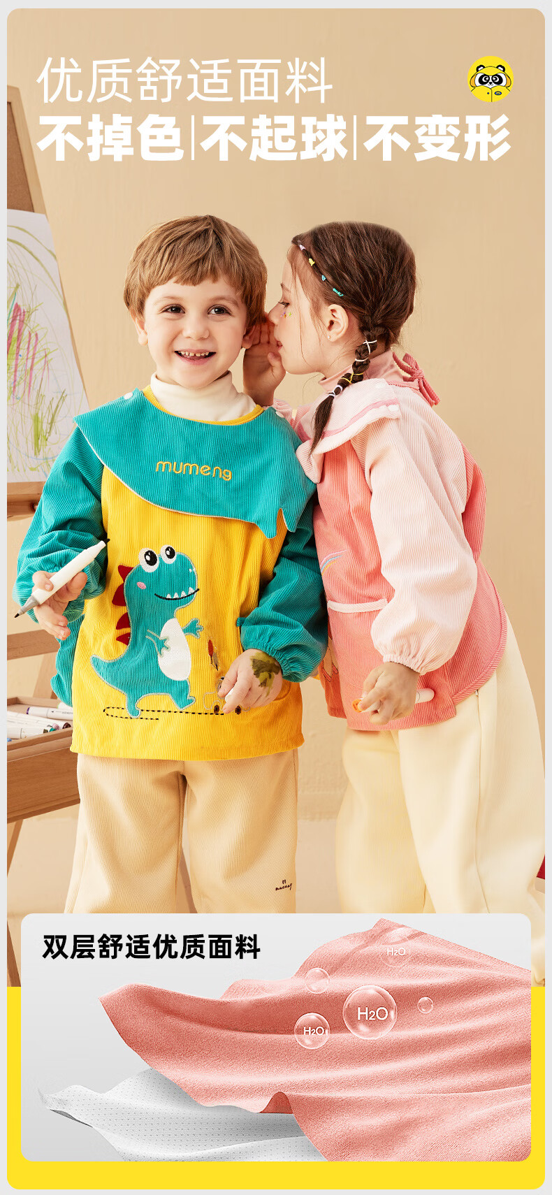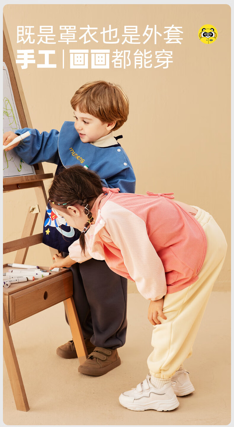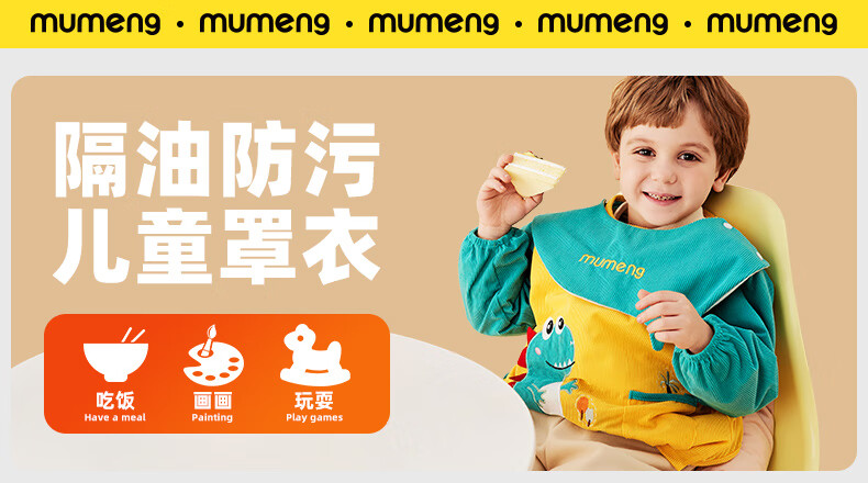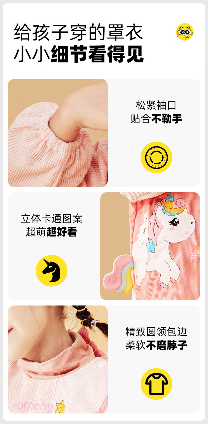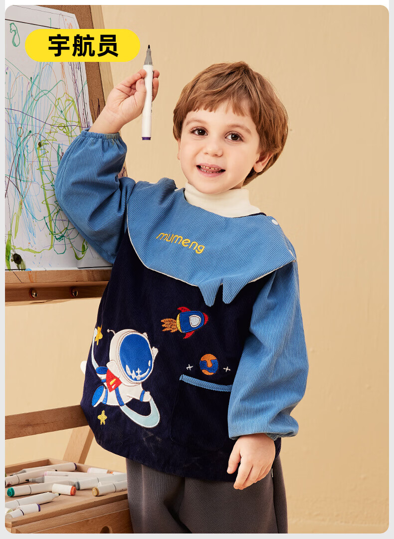 牧萌儿童罩衣婴儿吃饭围兜防溅衣防水防脏秋冬婴儿反穿衣 独角兽 M码