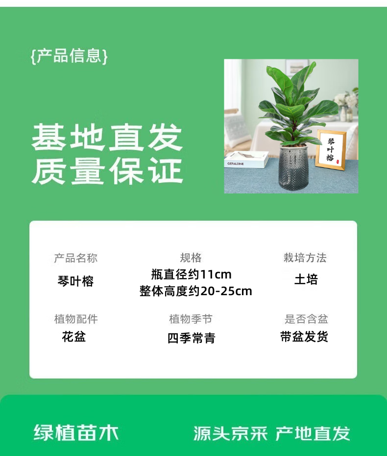 沭之美琴叶榕绿植盆栽办公室绿植花卉 琴叶榕+星点塑料吸水盆 源头直发