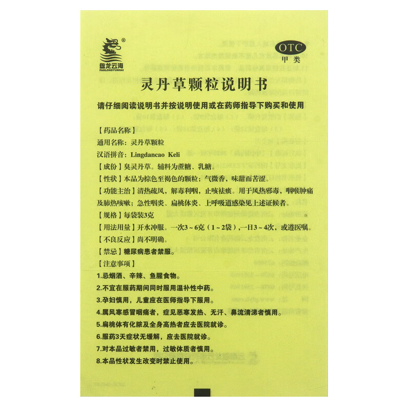 [盘龙云海] 灵丹草颗粒 3g*12袋/盒 1盒装