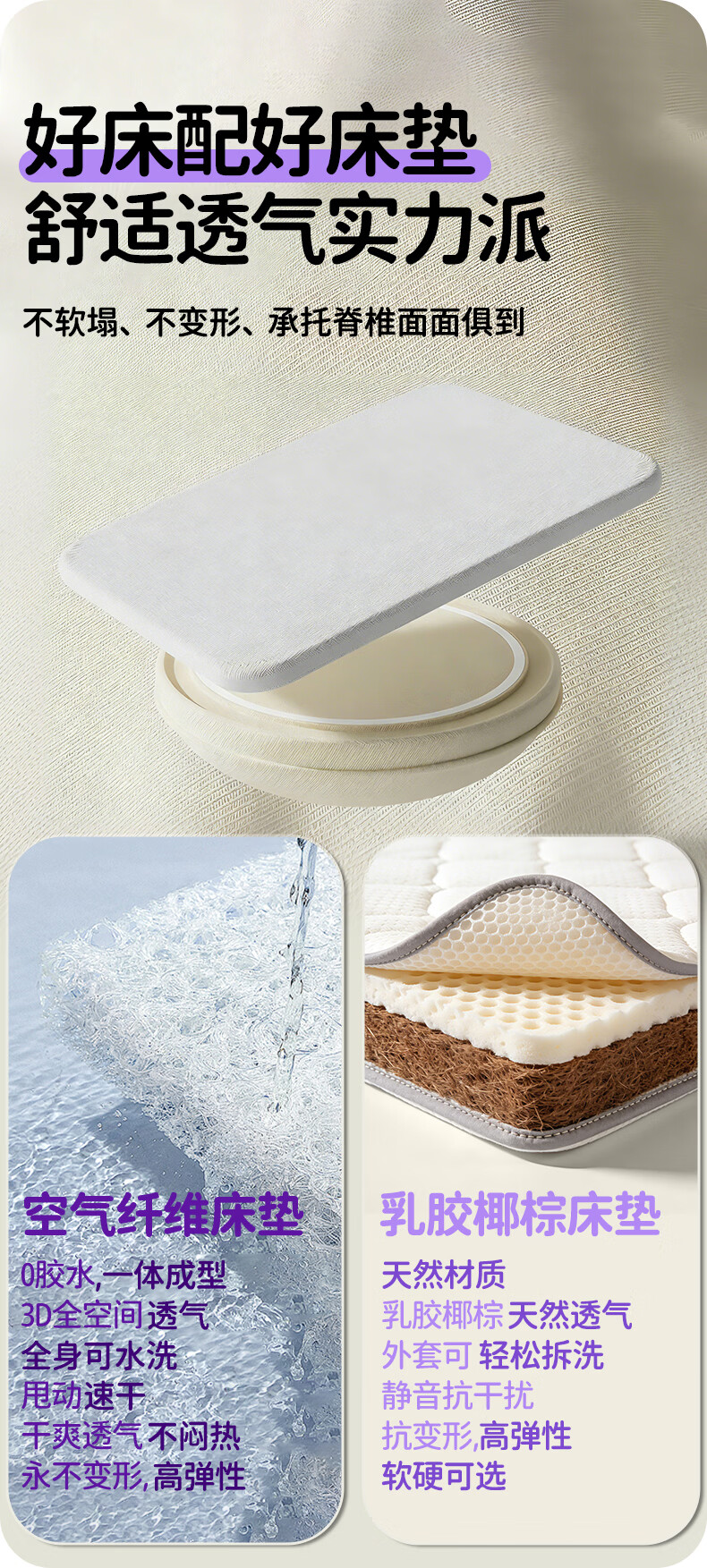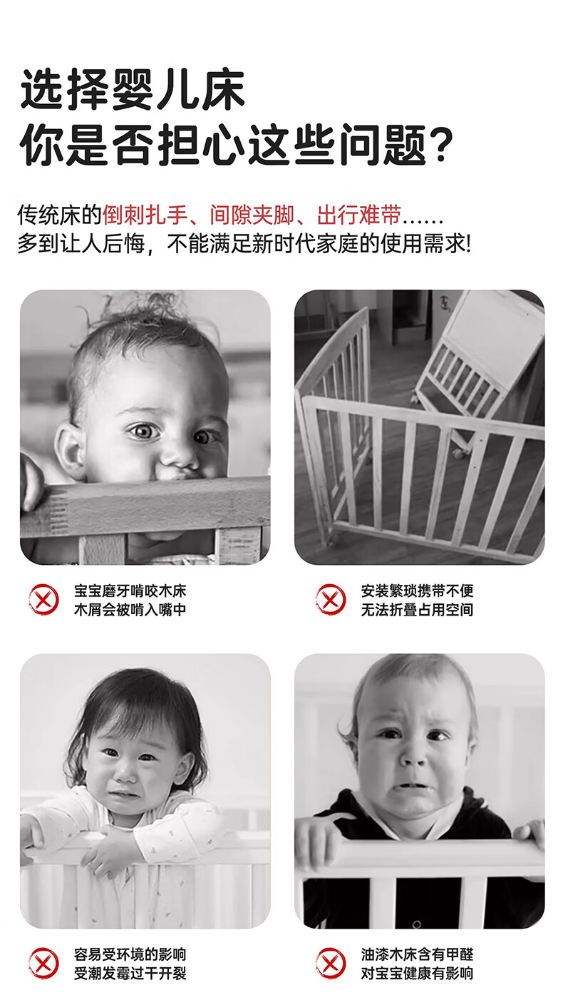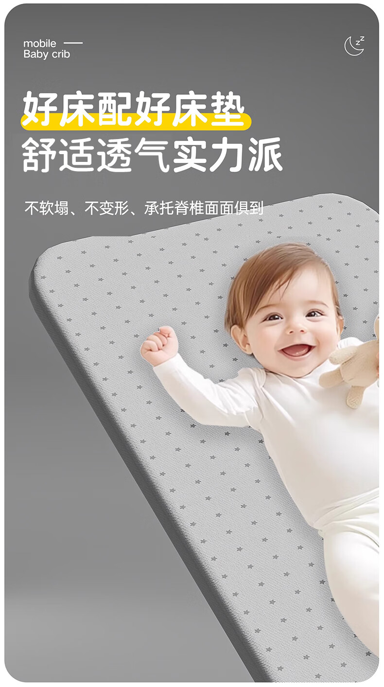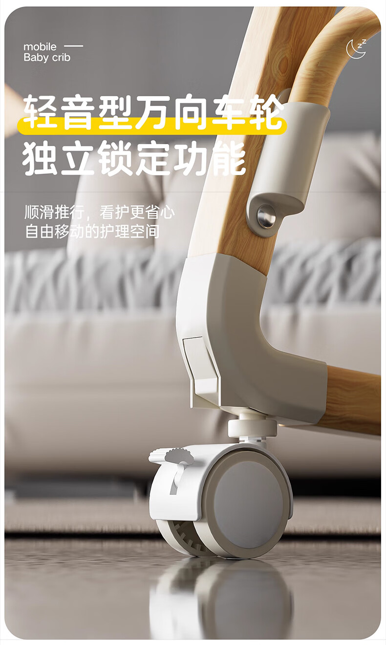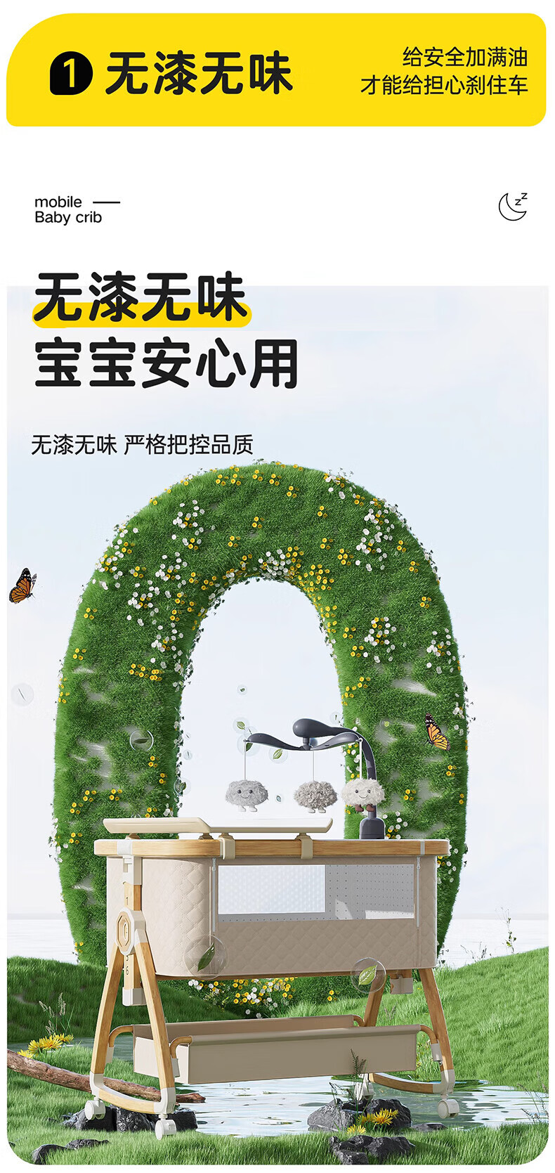 ANGI BABY新生儿婴儿床可移动0-3岁多功能带尿布台可拼接大床宝宝摇摇床 木纹铝合金【4cm椰棕乳胶垫+尿布台+床头铃+蚊帐】 ANGIBABY婴儿床可折叠可移动带尿布台拼接床