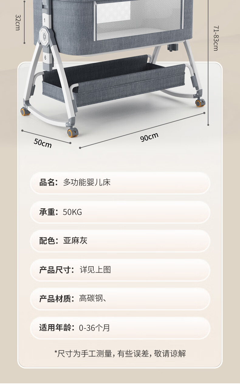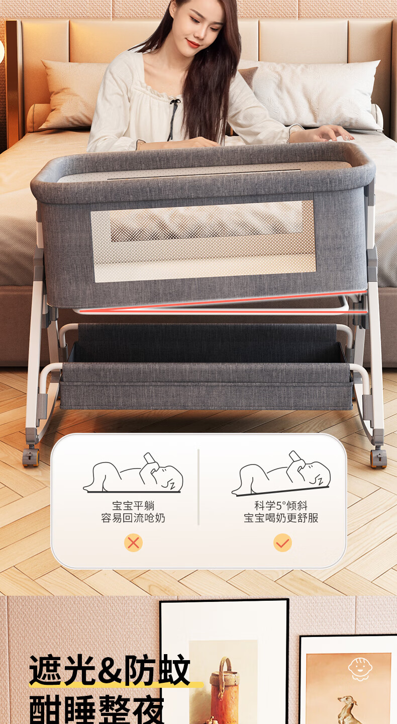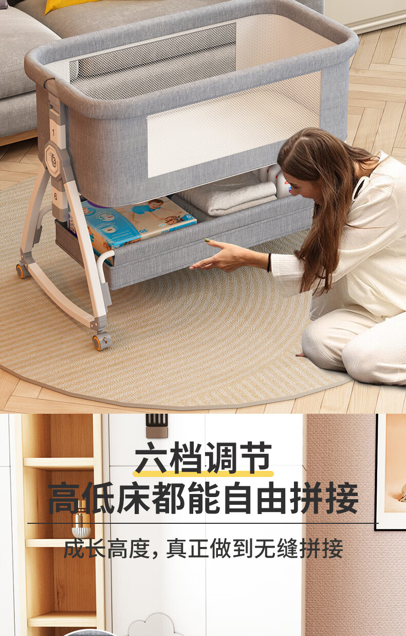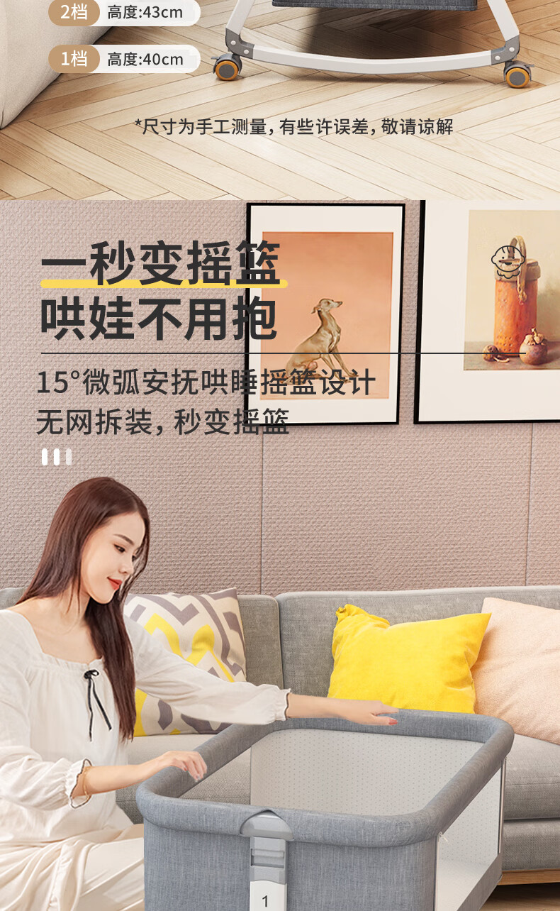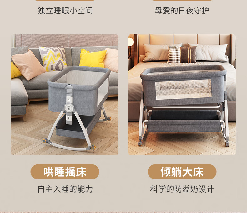 ANGI BABY婴儿床拼接床可移动新生儿宝宝可折叠摇摇床多功能哄睡神器