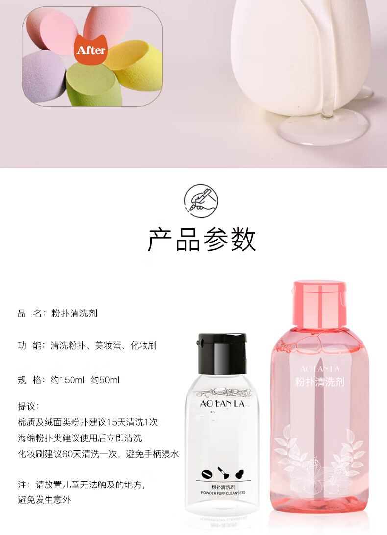 AOLANLA粉扑美妆蛋清洗剂粉底刷化妆刷清洗液彩妆化妆工具清洁剂 50ml